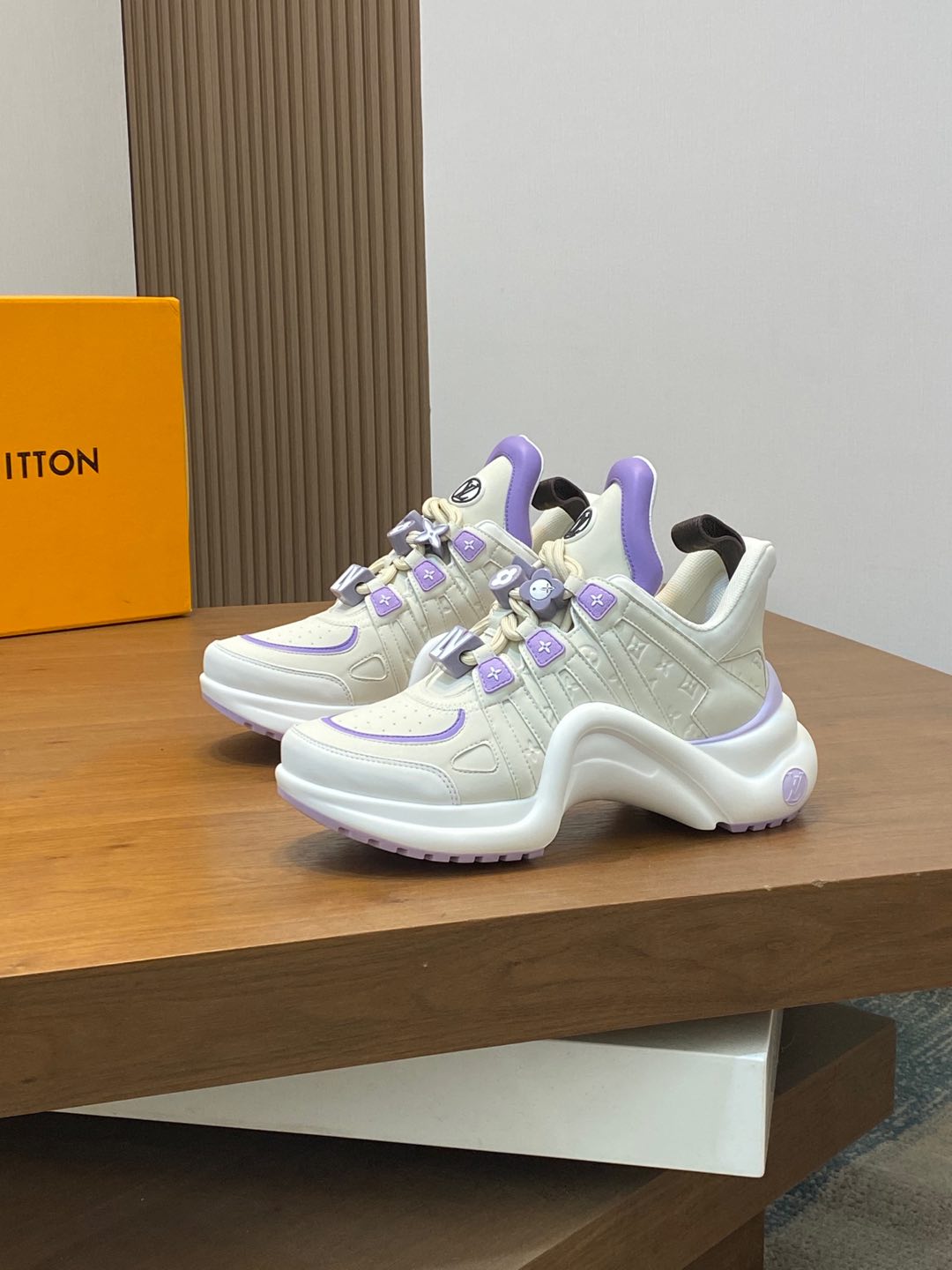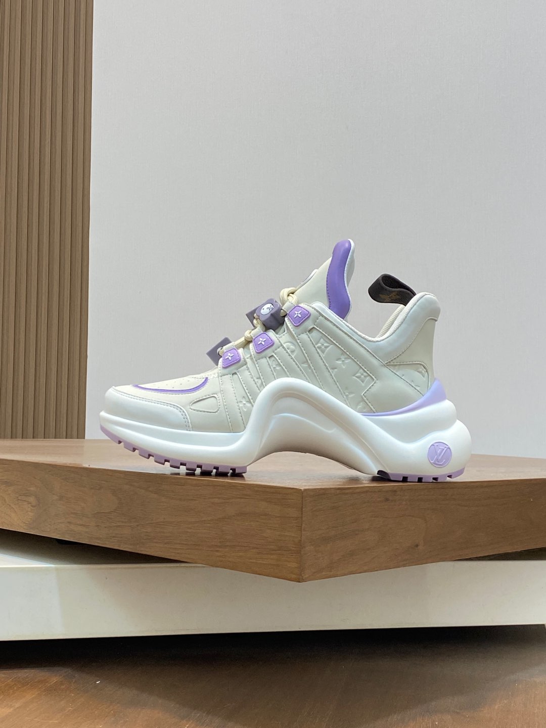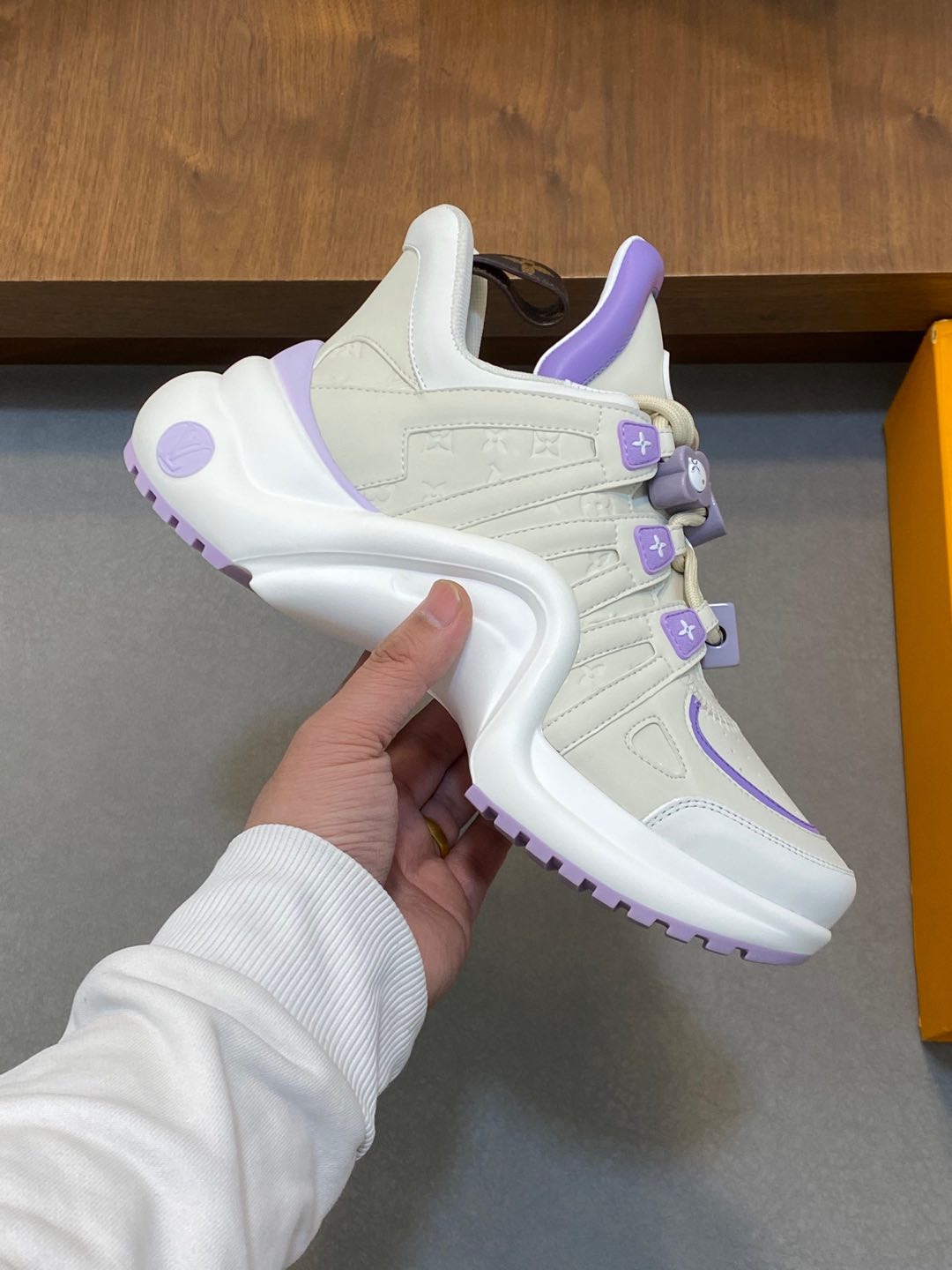 这款鞋子是AAAAA 1:1 质量 (非常棒). 使用了和原版一模一样的材料. 商标部分也保持了和路易威登/Louis Vuitton一样. 图片拍摄是实物鞋子拍摄, 您所收到的实物保证和我们图片一模一样.