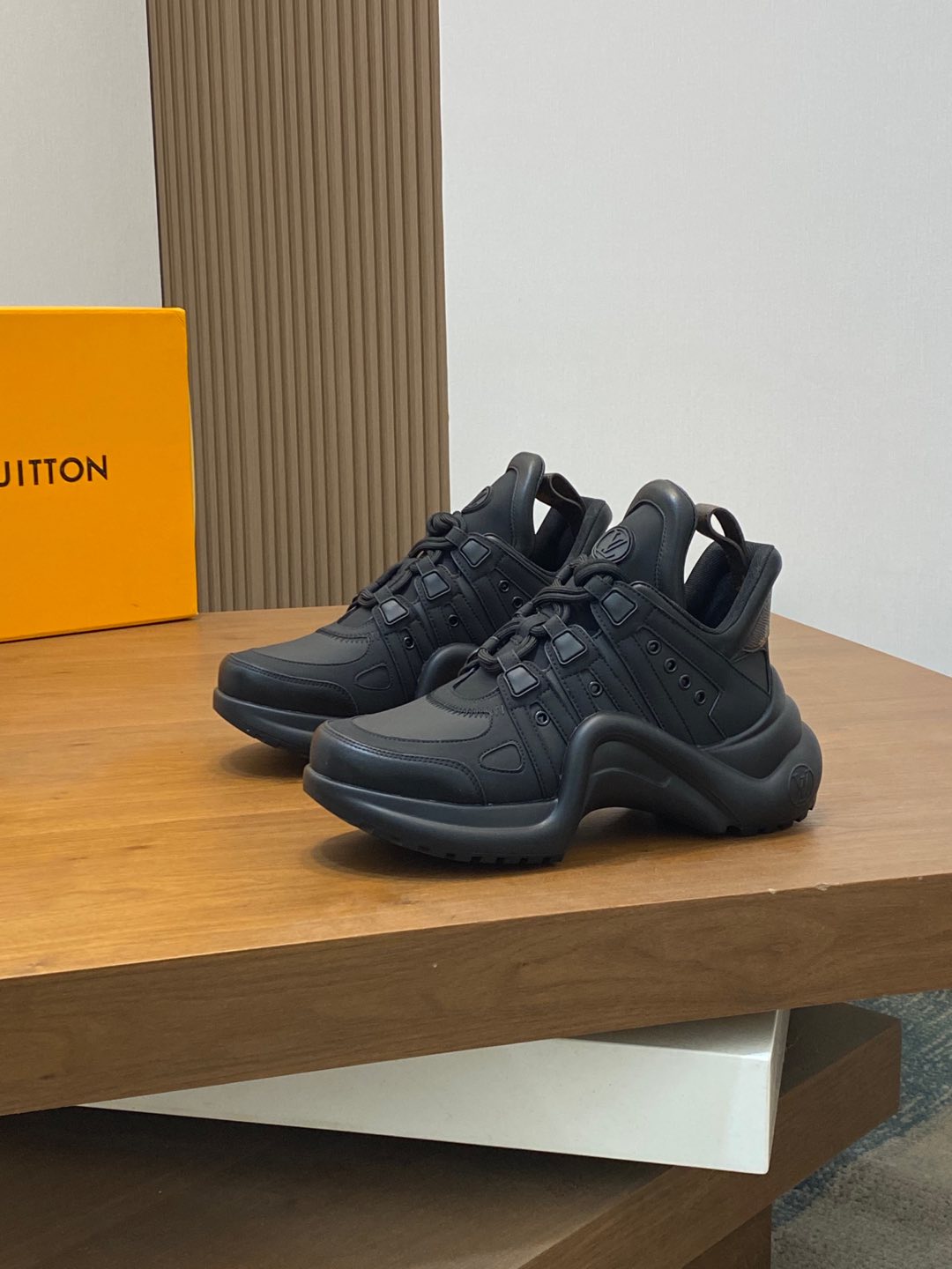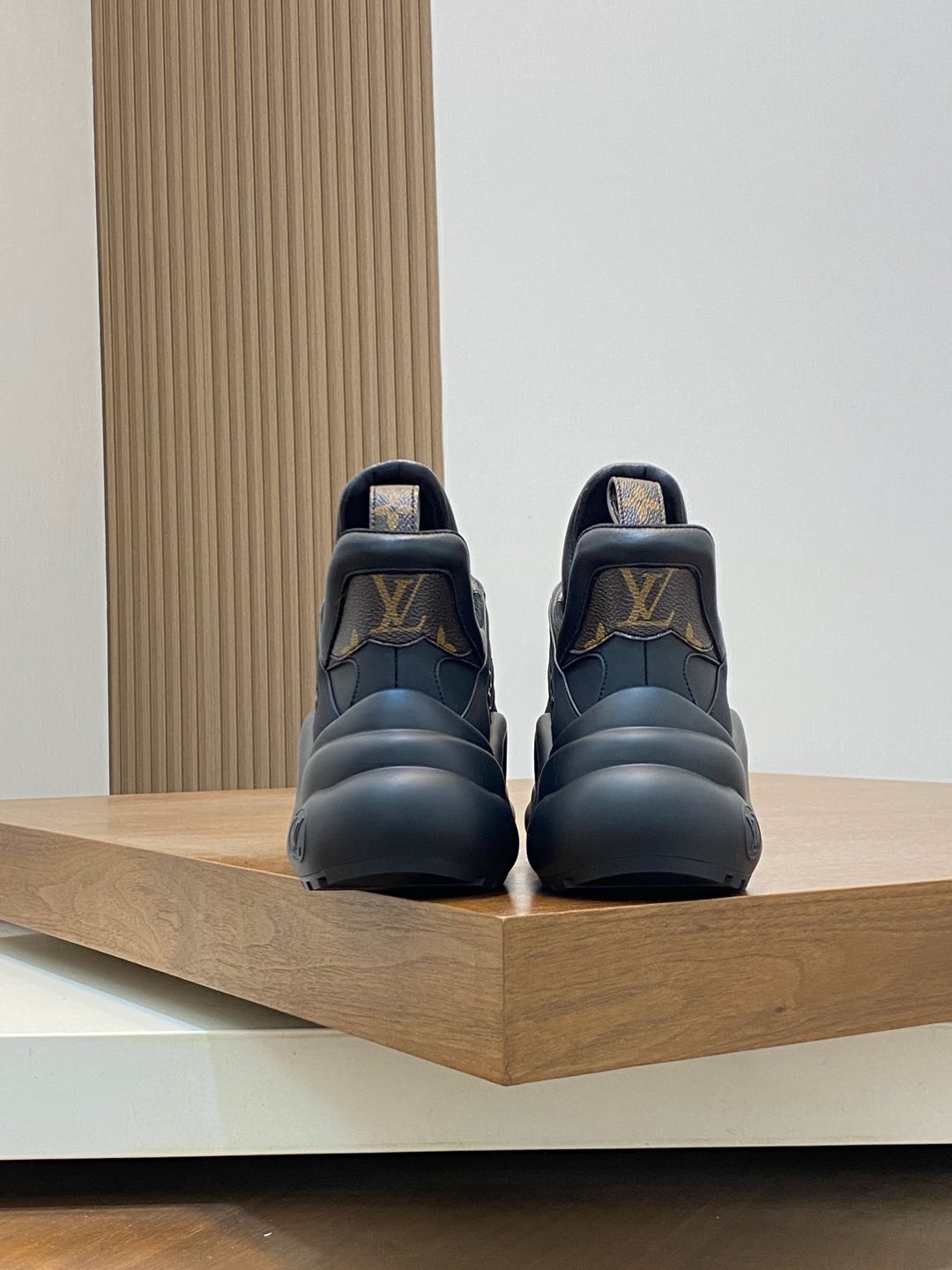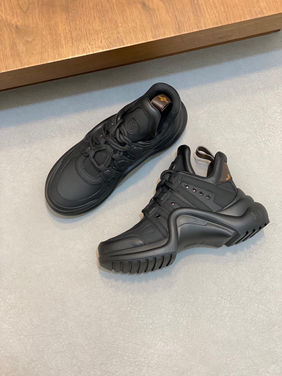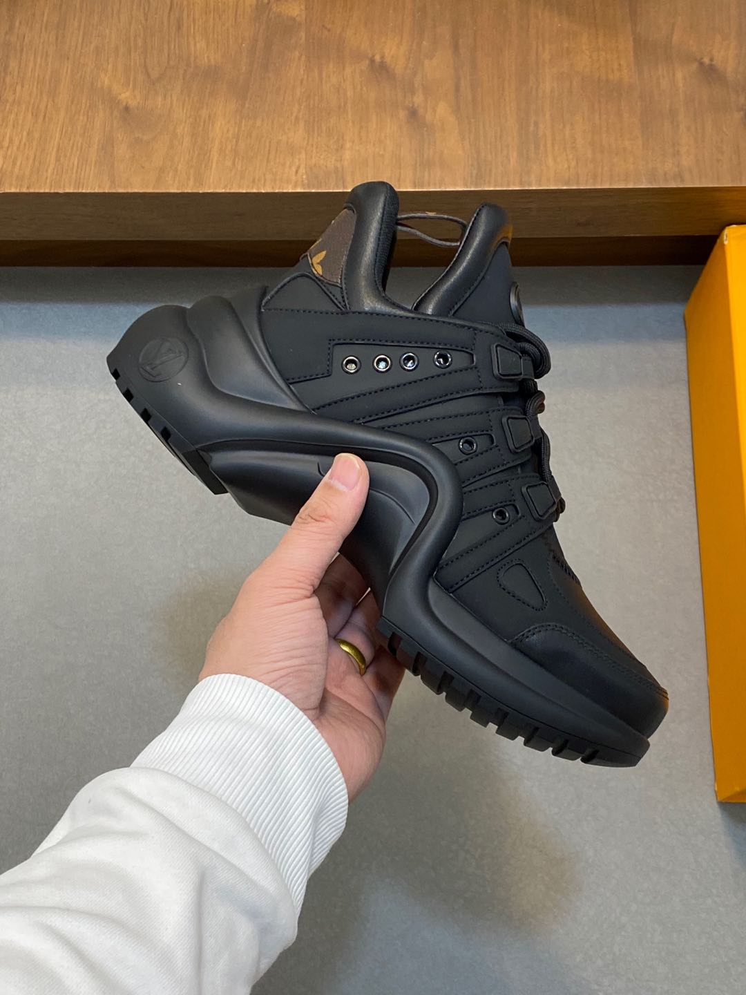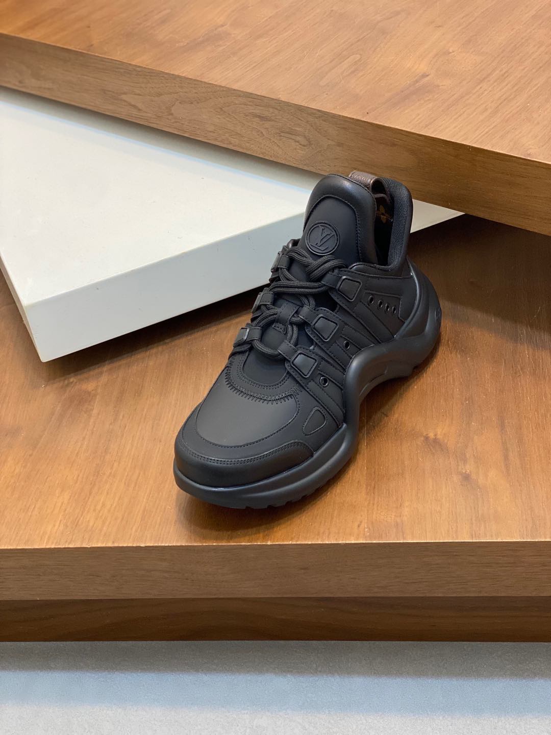 这款鞋子是AAAAA 1:1 质量 (非常棒). 使用了和原版一模一样的材料. 商标部分也保持了和路易威登/Louis Vuitton一样. 图片拍摄是实物鞋子拍摄, 您所收到的实物保证和我们图片一模一样.