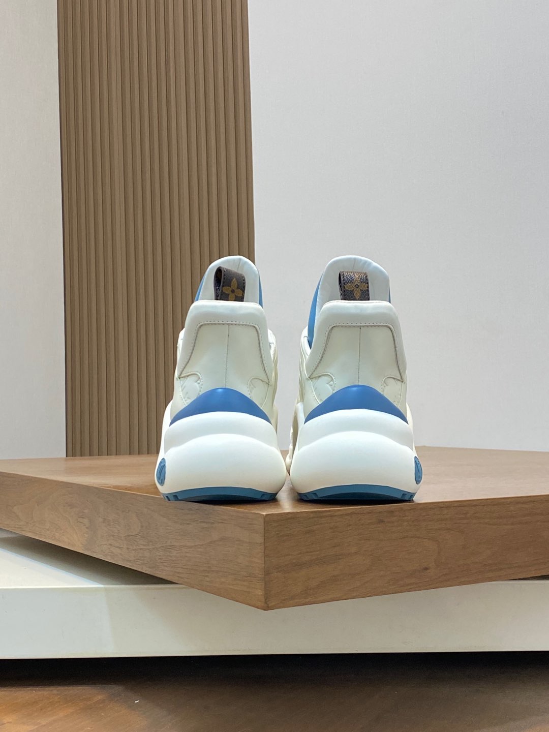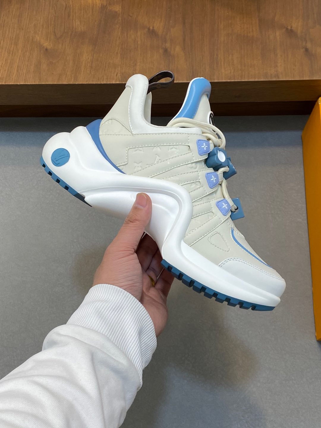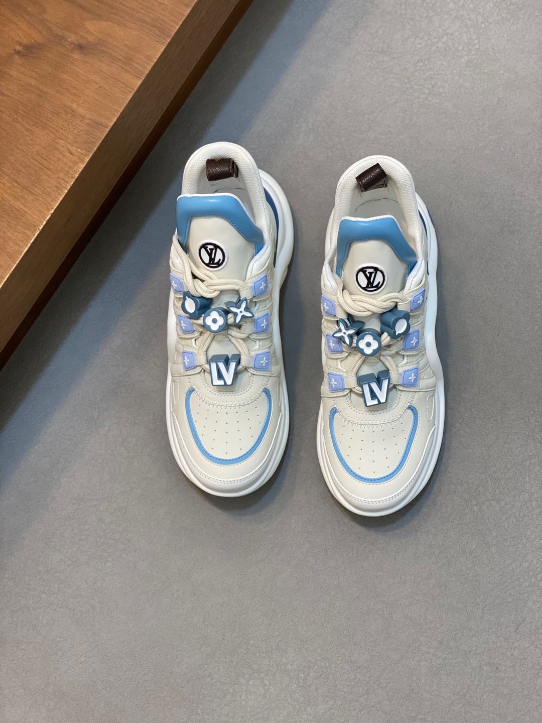 这款鞋子是AAAAA 1:1 质量 (非常棒). 使用了和原版一模一样的材料. 商标部分也保持了和路易威登/Louis Vuitton一样. 图片拍摄是实物鞋子拍摄, 您所收到的实物保证和我们图片一模一样.