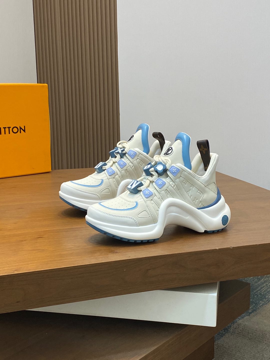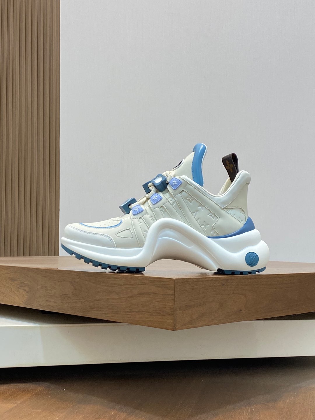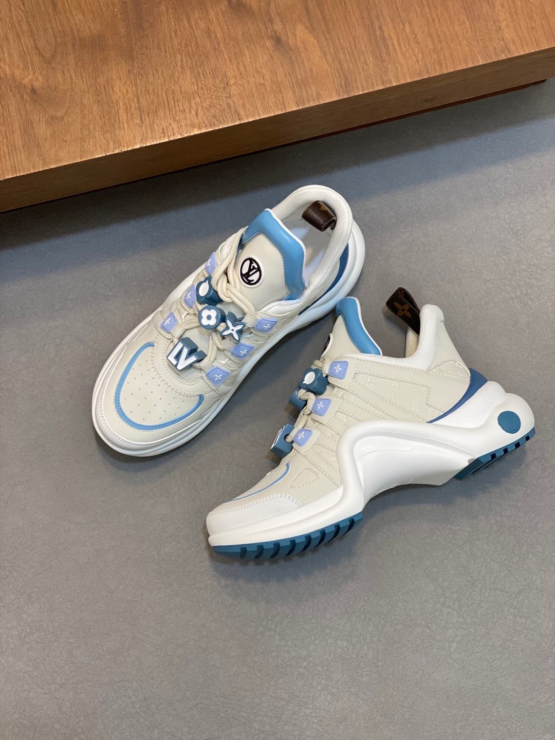 这款鞋子是AAAAA 1:1 质量 (非常棒). 使用了和原版一模一样的材料. 商标部分也保持了和路易威登/Louis Vuitton一样. 图片拍摄是实物鞋子拍摄, 您所收到的实物保证和我们图片一模一样.