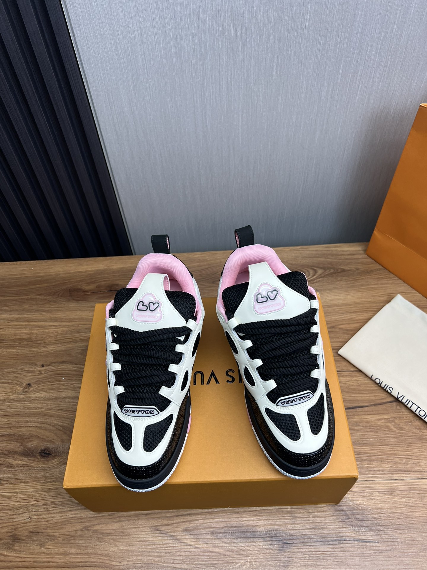 这款鞋子是AAAAA 1:1 质量 (非常棒). 使用了和原版一模一样的材料. 商标部分也保持了和路易威登/Louis Vuitton一样. 图片拍摄是实物鞋子拍摄, 您所收到的实物保证和我们图片一模一样.