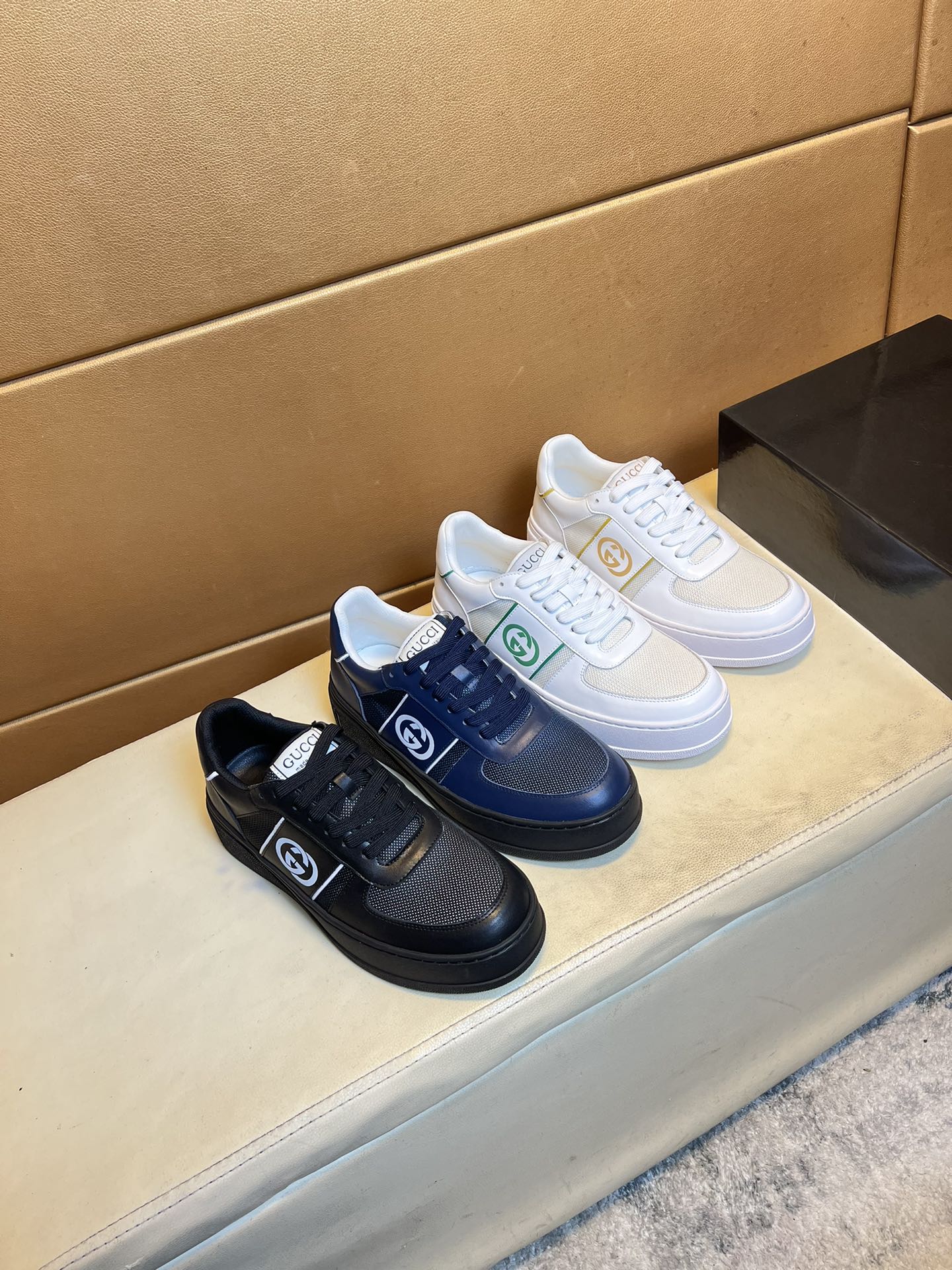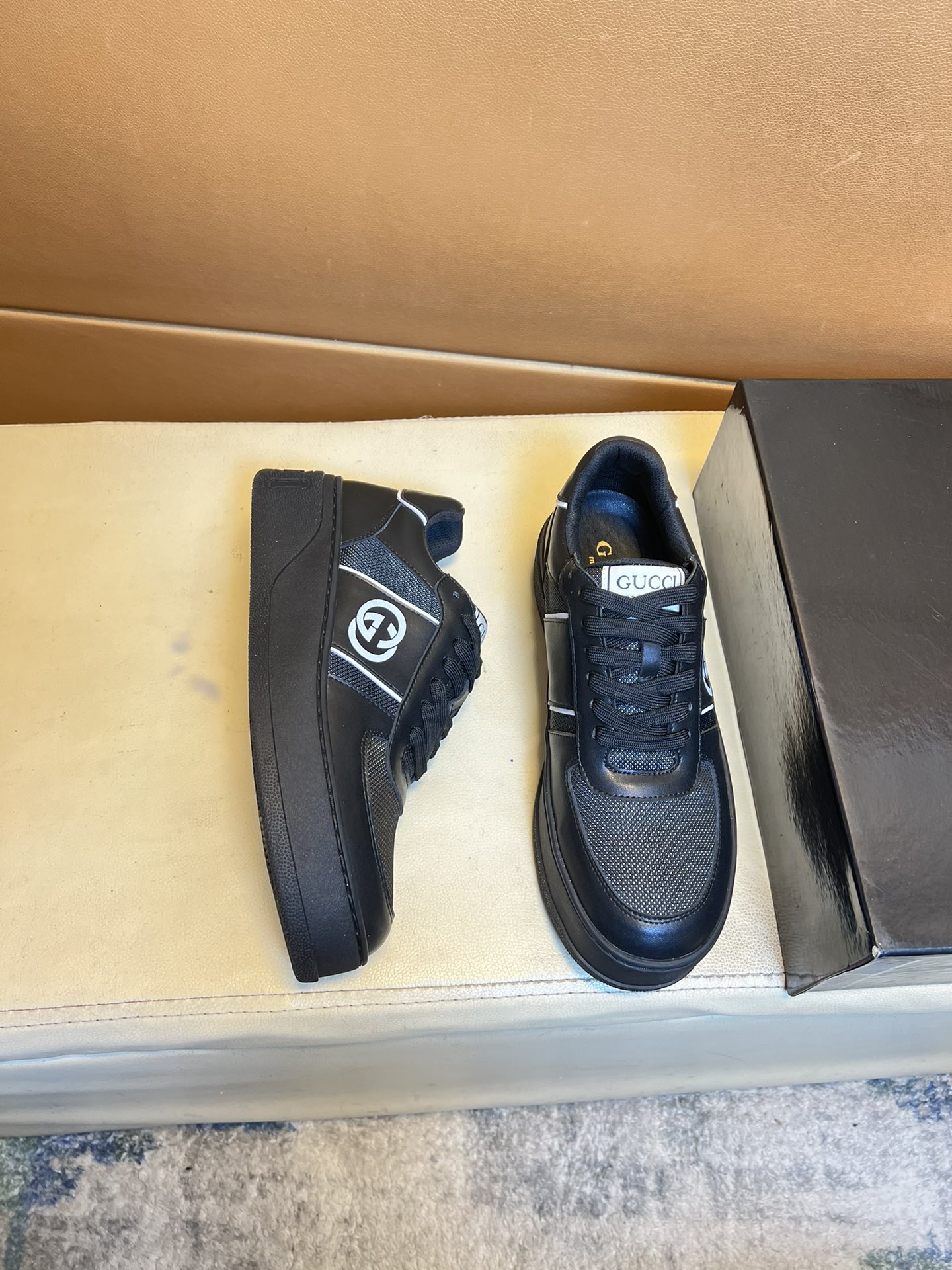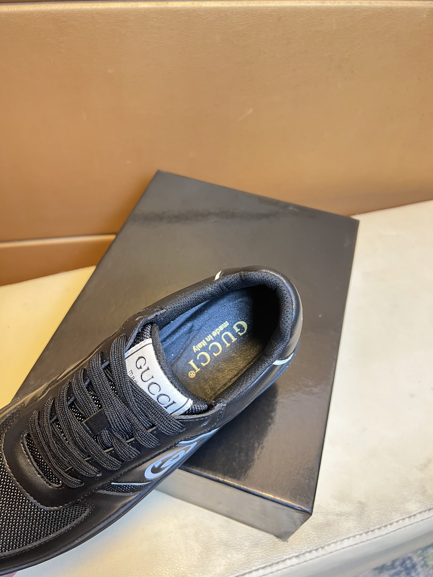这款鞋子是AAAAA 1:1 质量 (非常棒). 使用了和原版一模一样的材料. 商标部分也保持了和古奇/Gucci一样. 图片拍摄是实物鞋子拍摄, 您所收到的实物保证和我们图片一模一样.