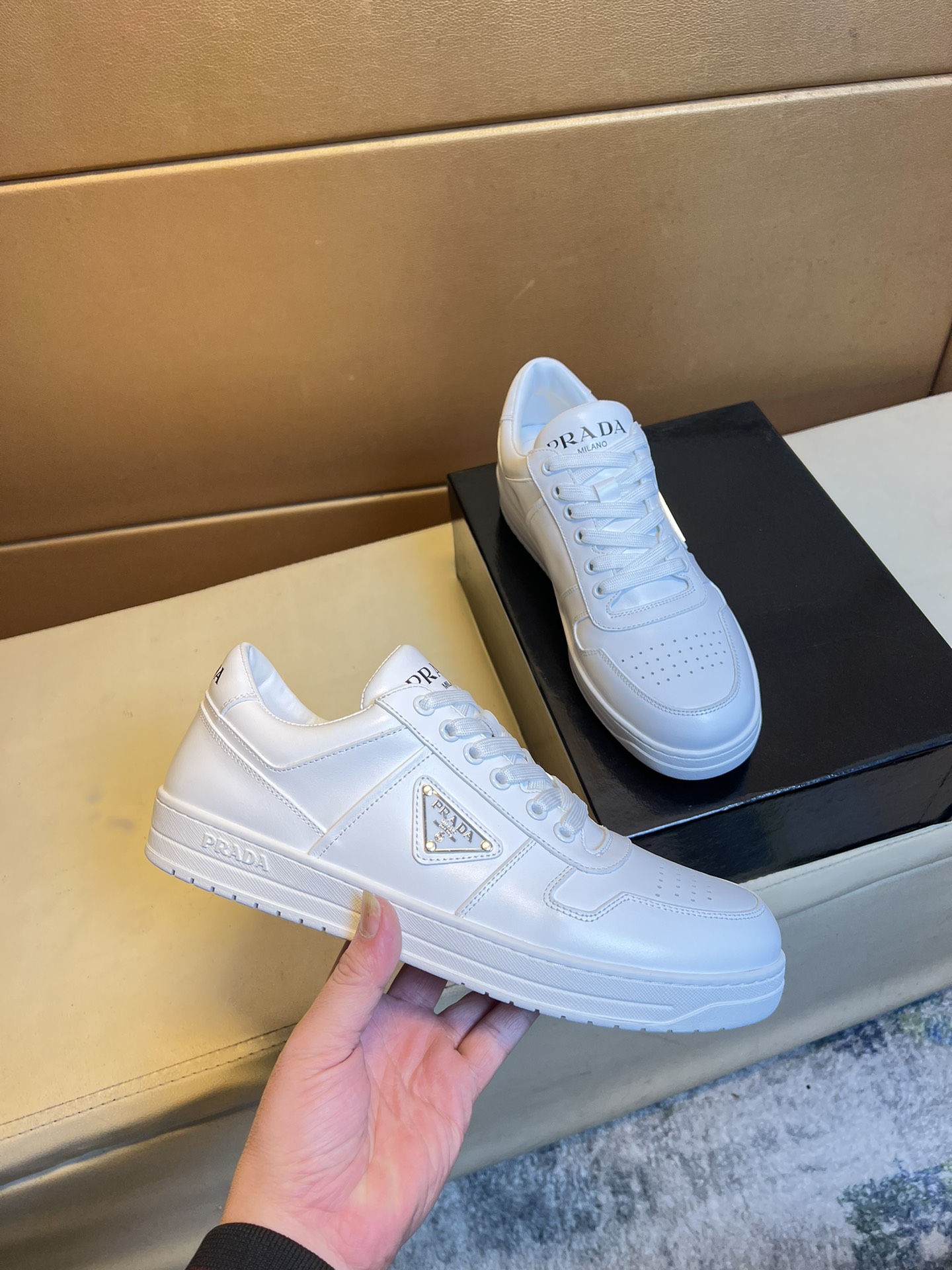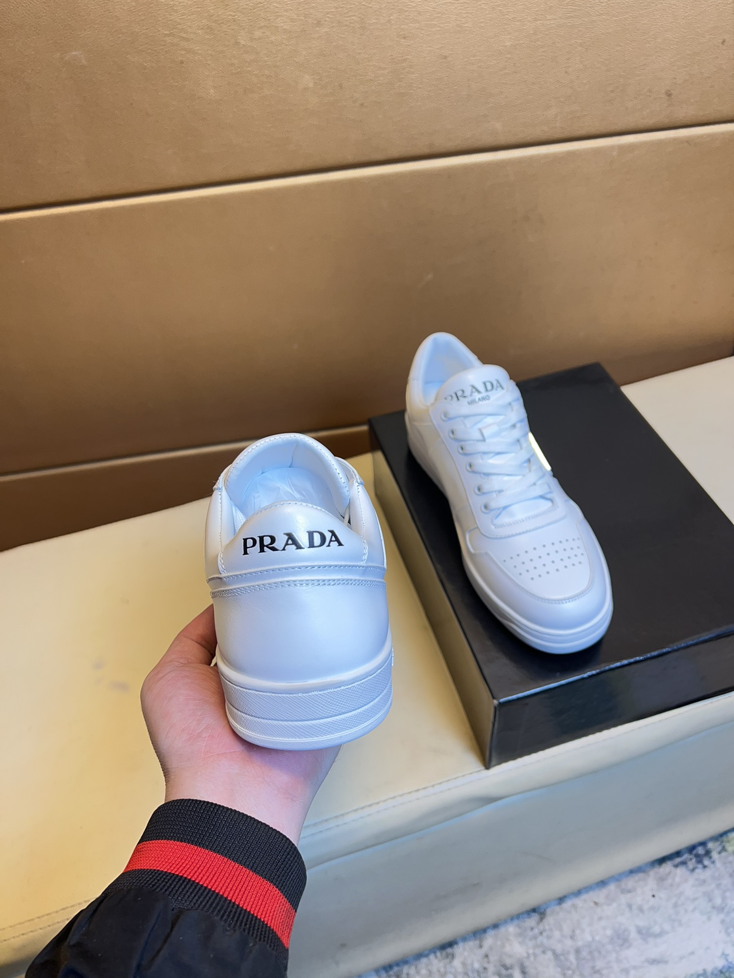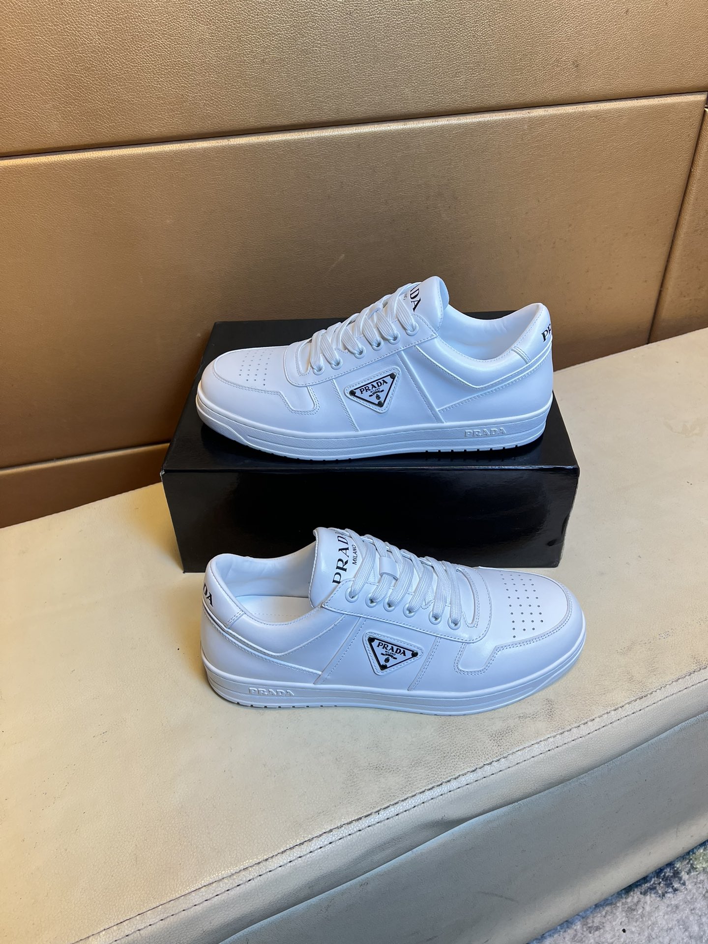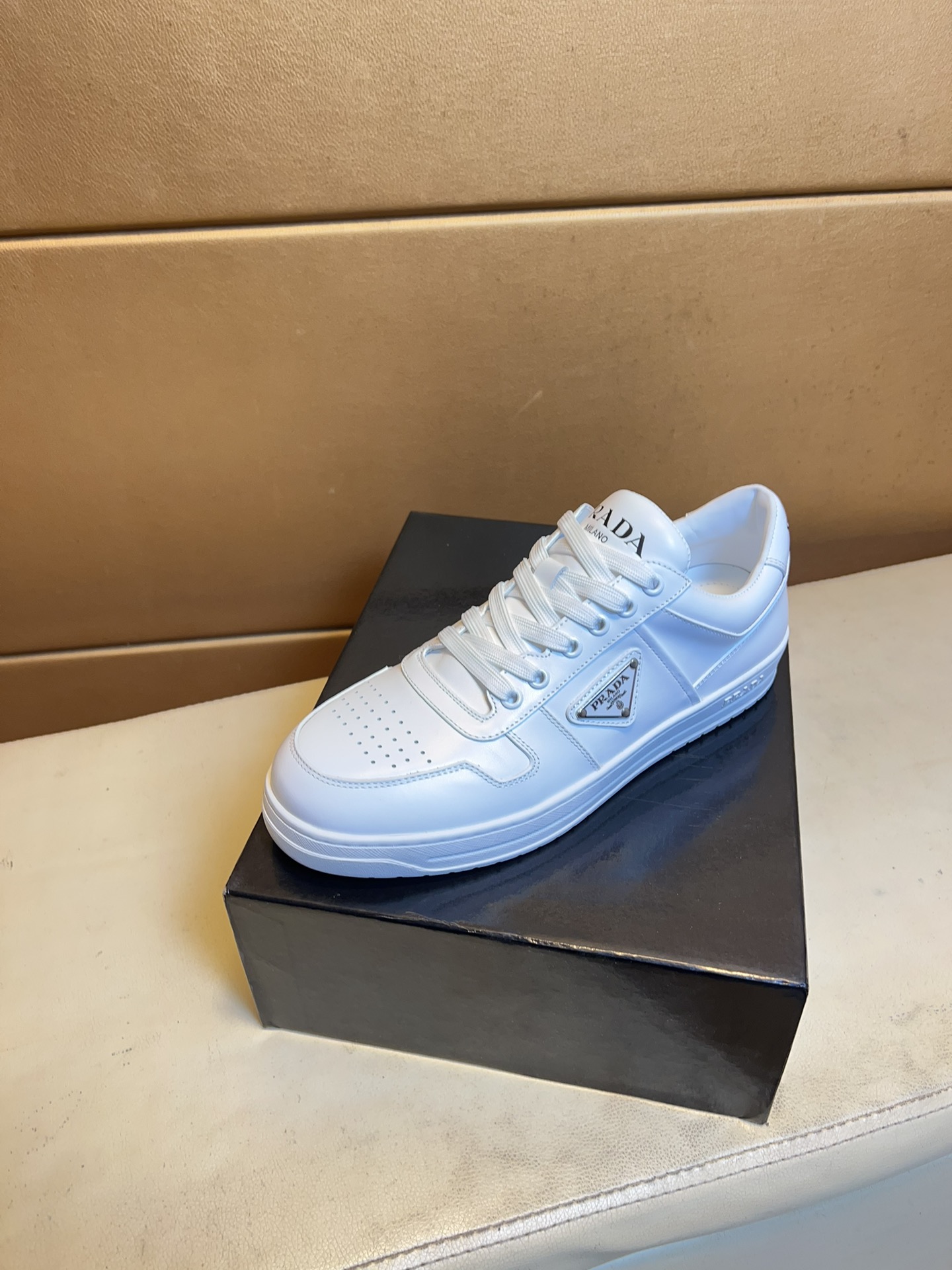 这款鞋子是AAAAA 1:1 质量 (非常棒). 使用了和原版一模一样的材料. 商标部分也保持了和普拉达/Prada一样. 图片拍摄是实物鞋子拍摄, 您所收到的实物保证和我们图片一模一样.