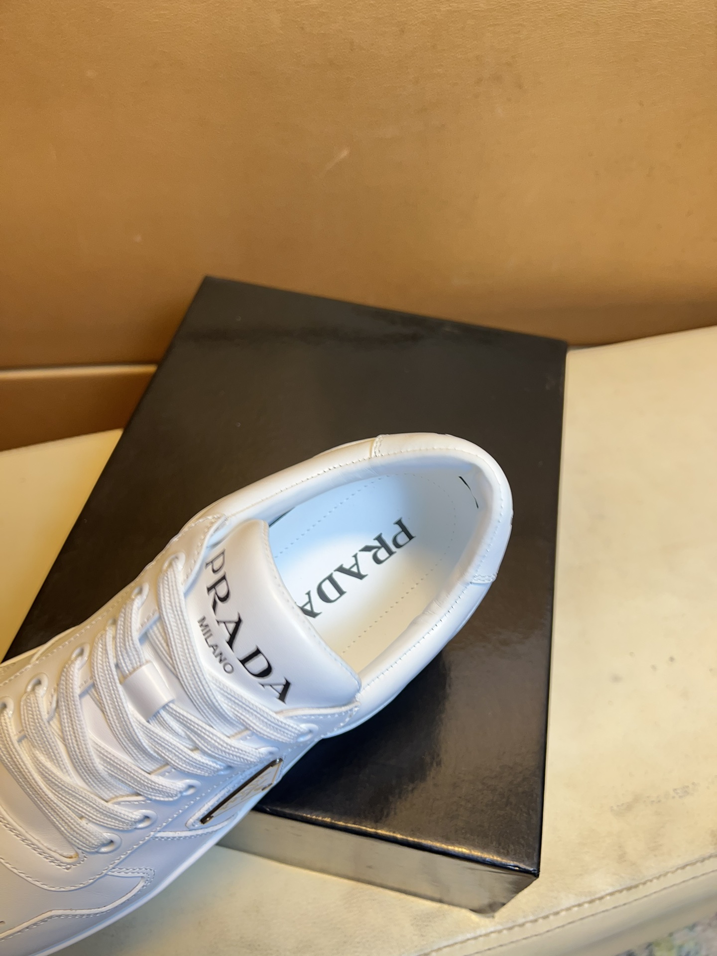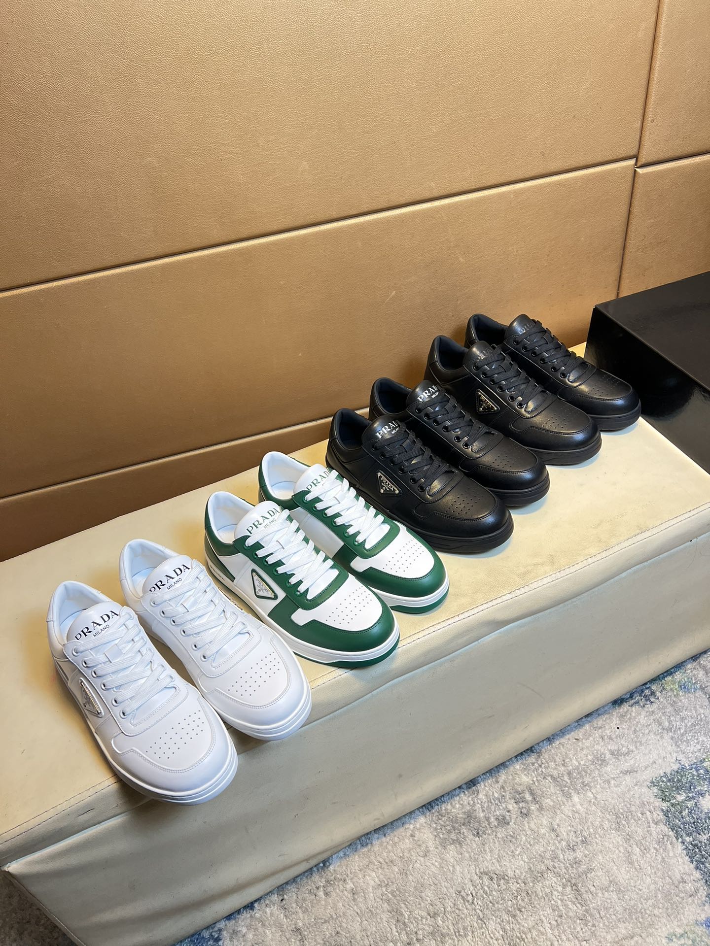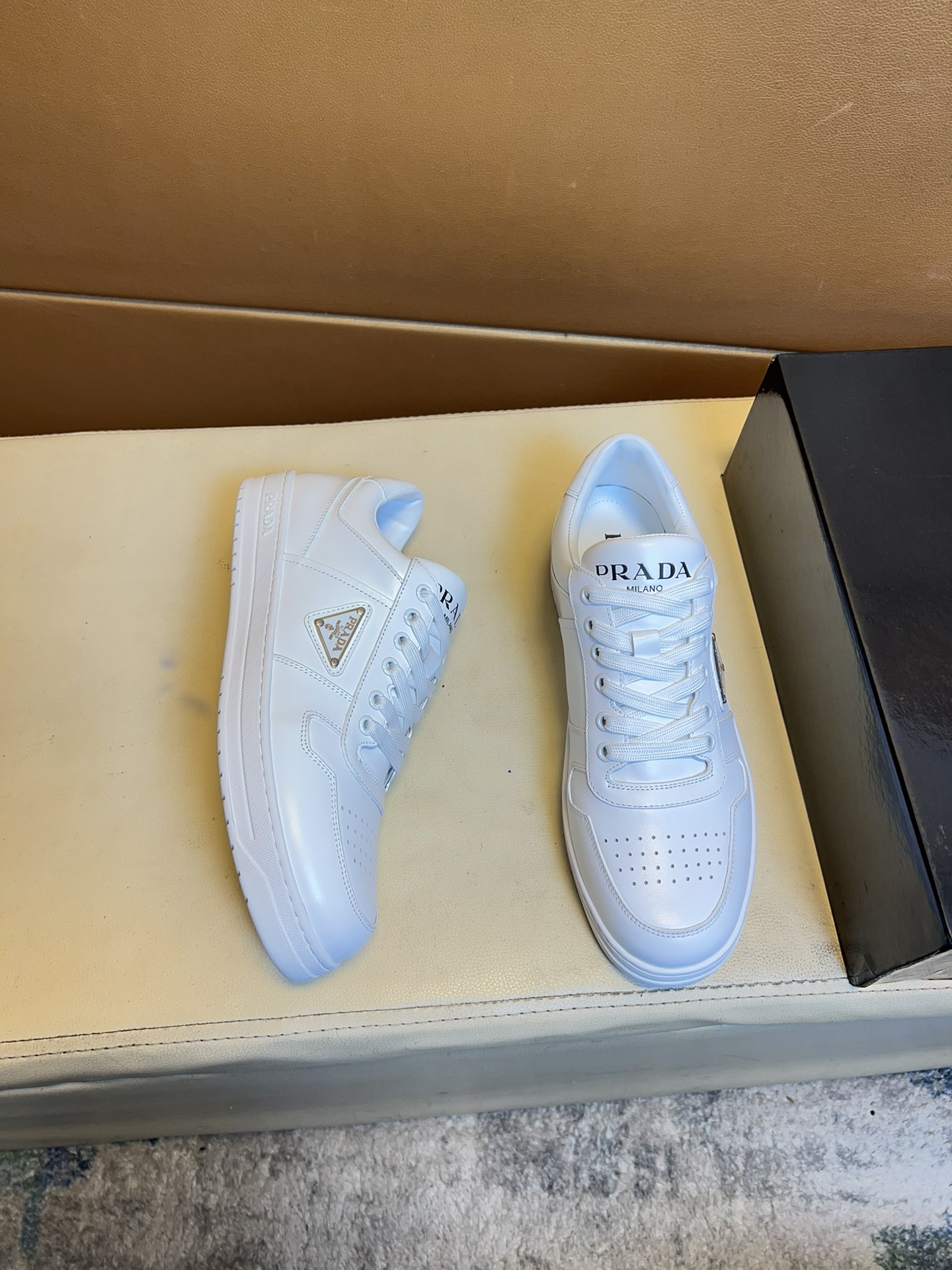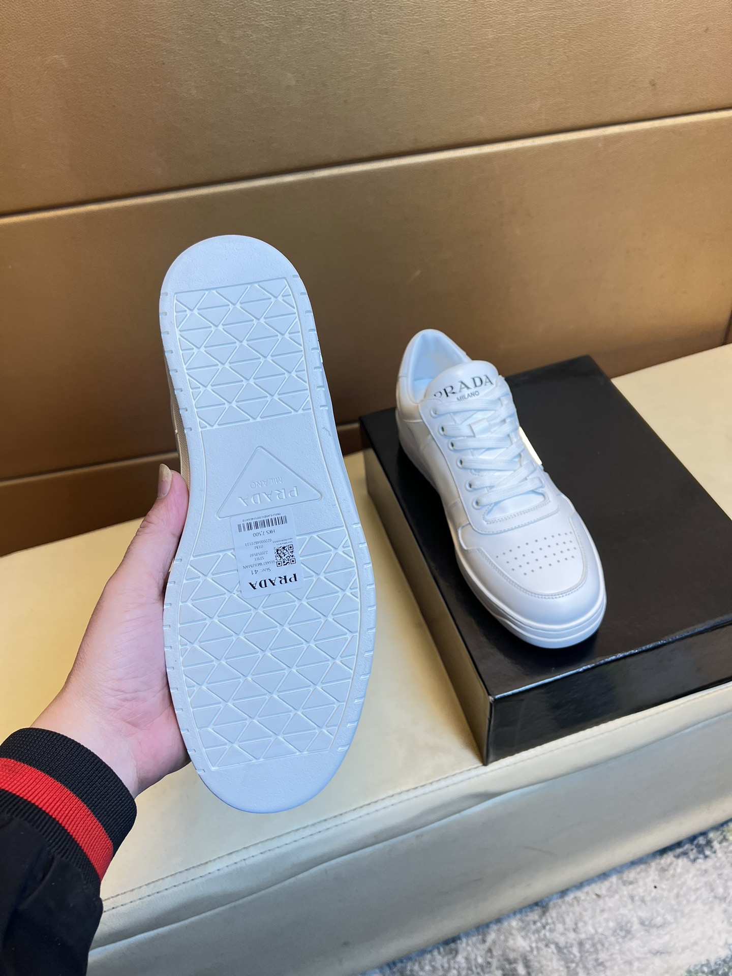 这款鞋子是AAAAA 1:1 质量 (非常棒). 使用了和原版一模一样的材料. 商标部分也保持了和普拉达/Prada一样. 图片拍摄是实物鞋子拍摄, 您所收到的实物保证和我们图片一模一样.