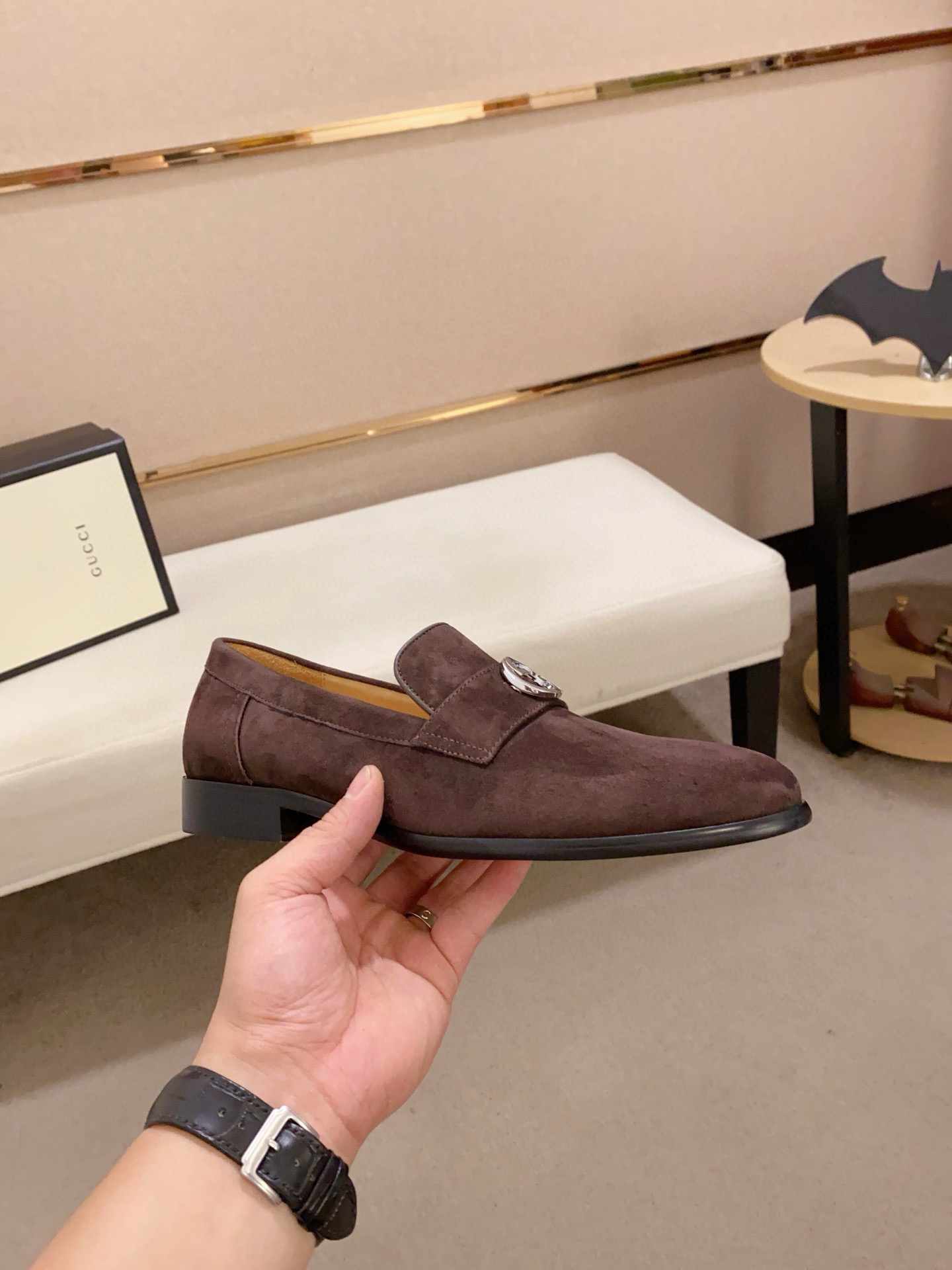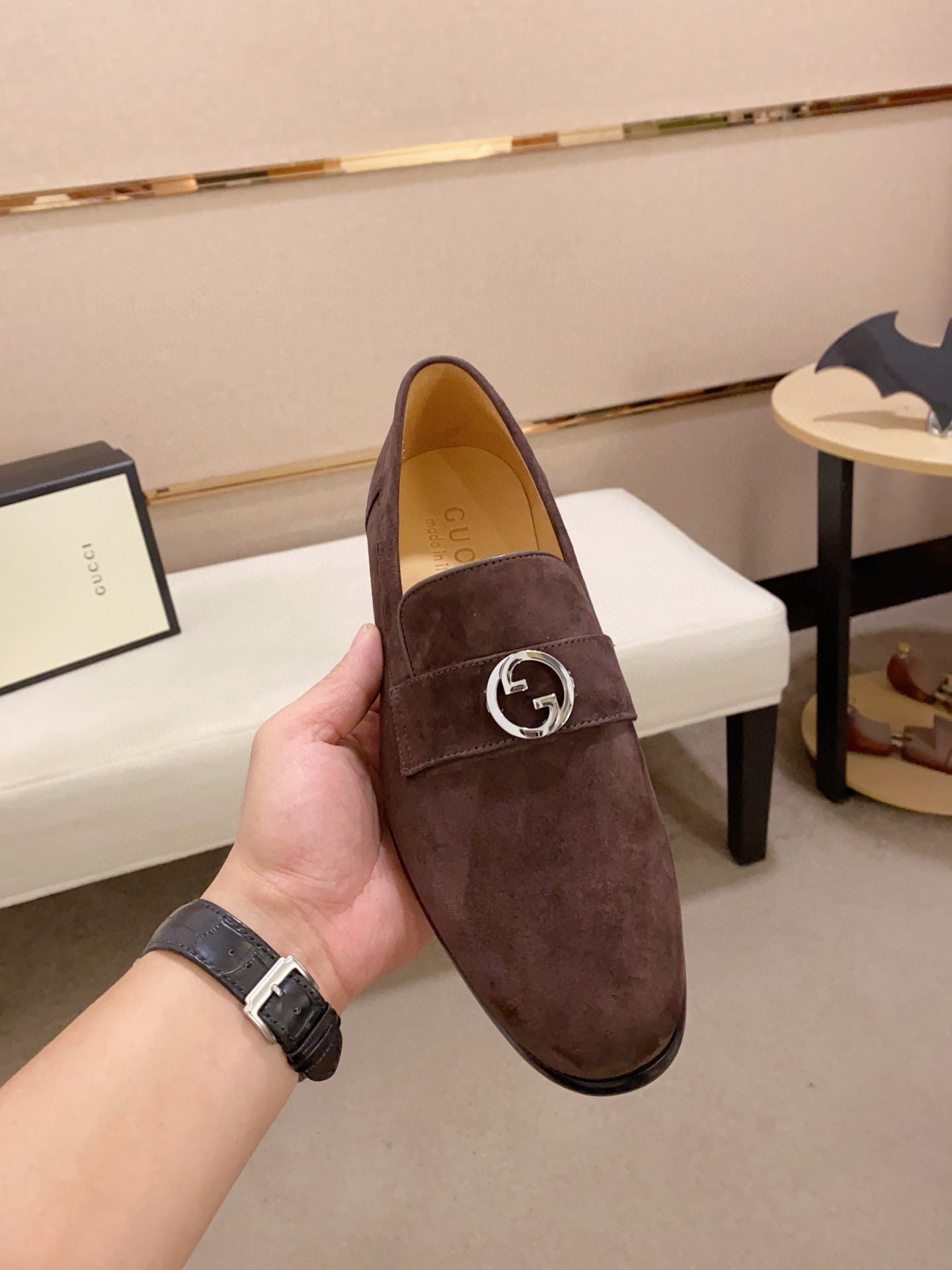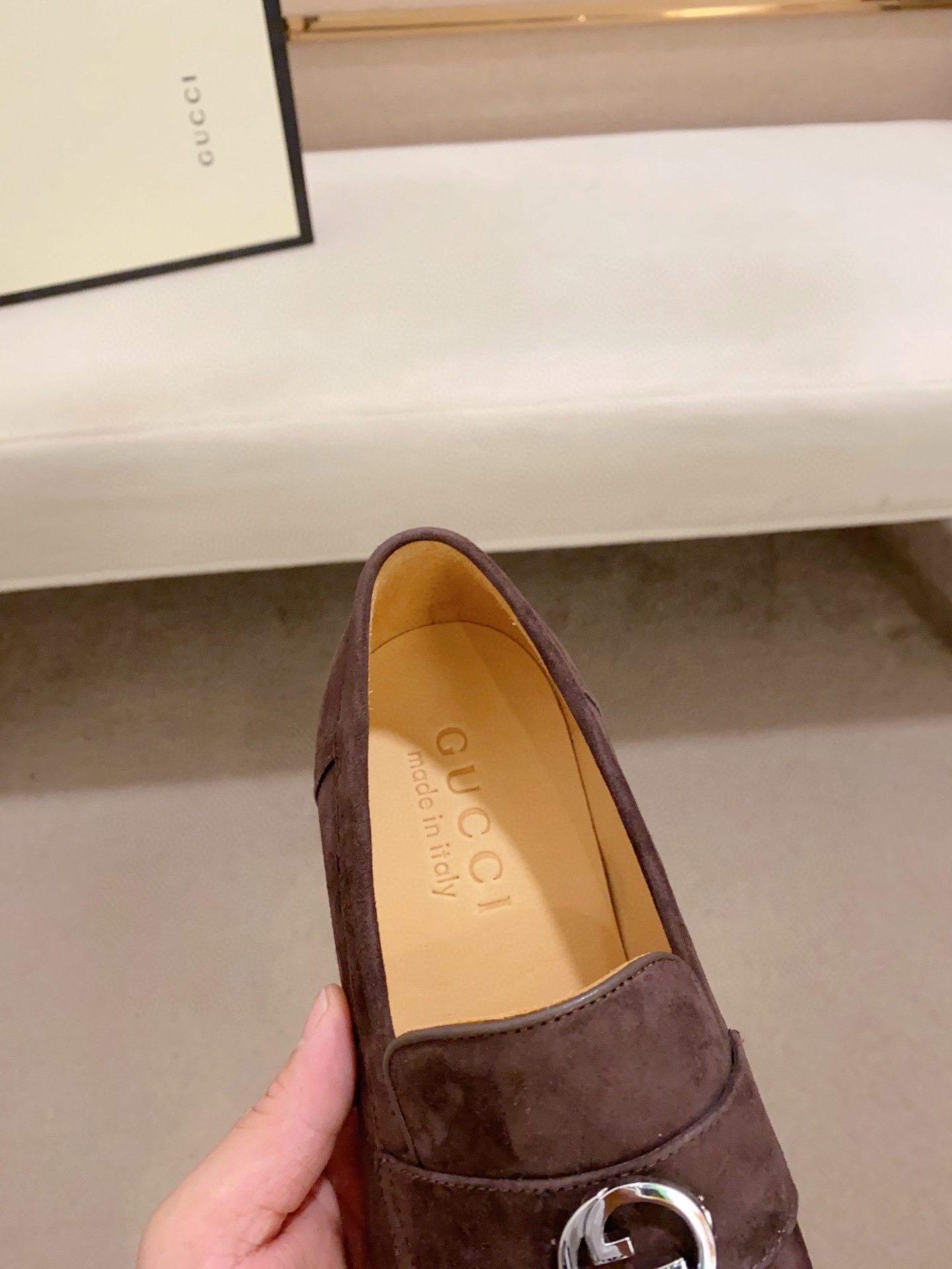 这款鞋子是AAAAA 1:1 质量 (非常棒). 使用了和原版一模一样的材料. 商标部分也保持了和古奇/Gucci一样. 图片拍摄是实物鞋子拍摄, 您所收到的实物保证和我们图片一模一样.