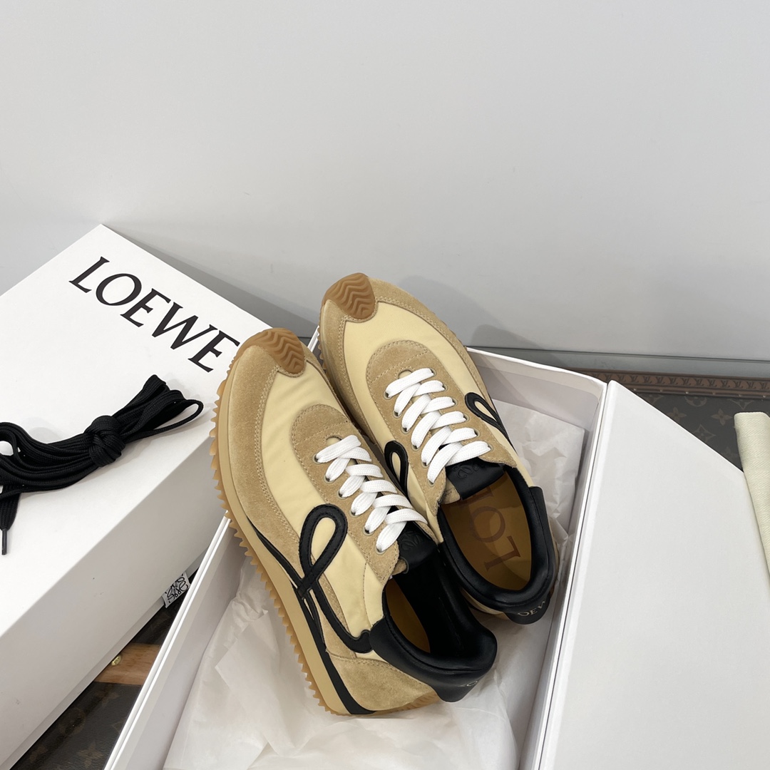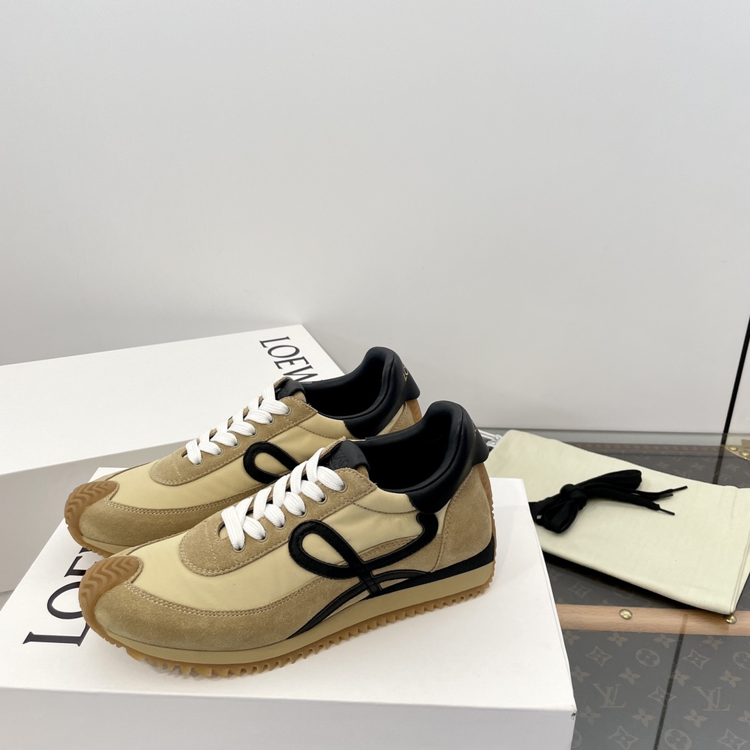 这款鞋子是AAAAA 1:1 质量 (非常棒). 使用了和原版一模一样的材料. 商标部分也保持了和罗意威/Loewe一样. 图片拍摄是实物鞋子拍摄, 您所收到的实物保证和我们图片一模一样.