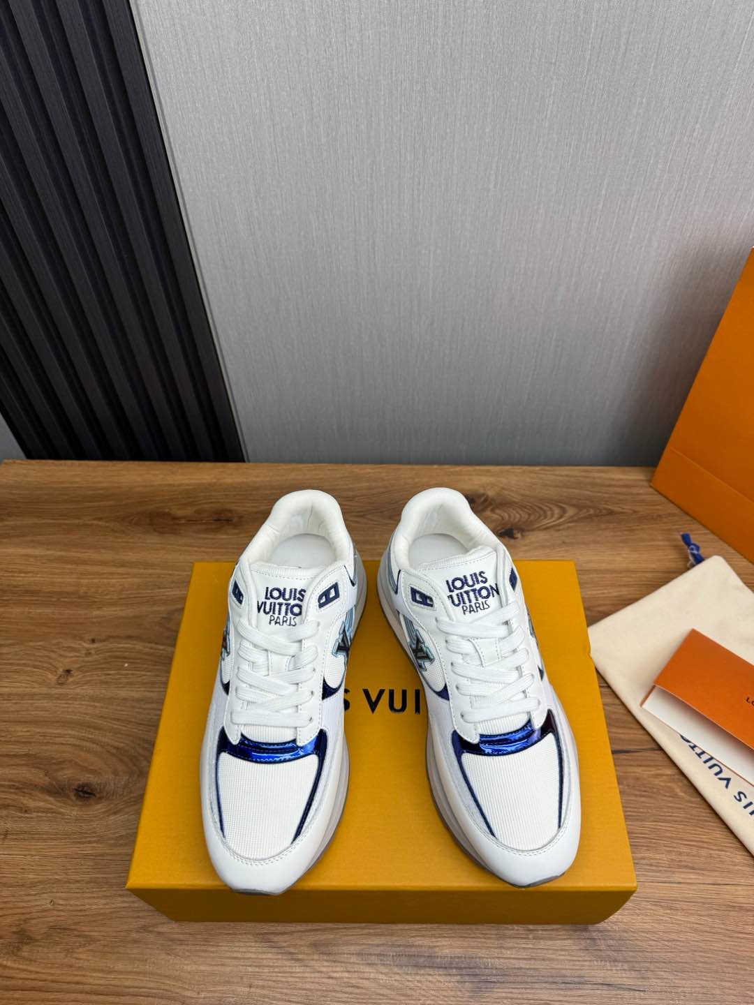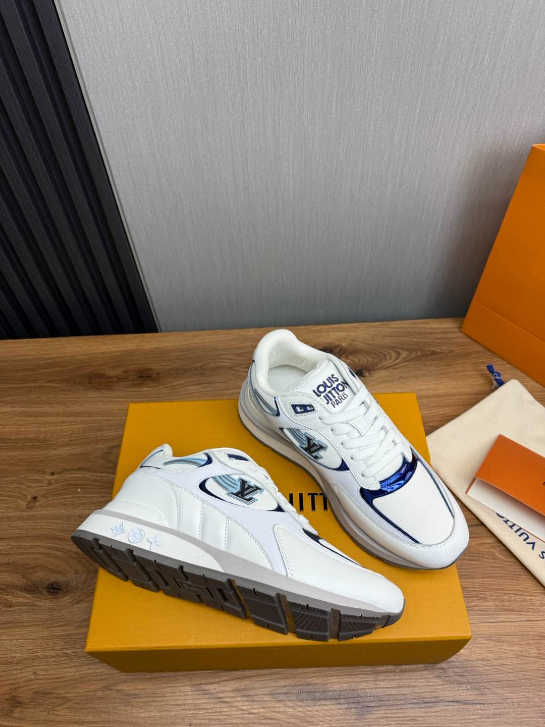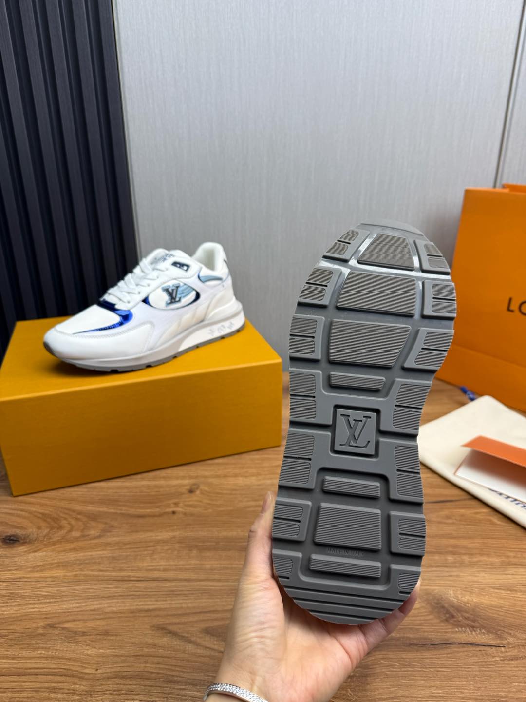 这款鞋子是AAAAA 1:1 质量 (非常棒). 使用了和原版一模一样的材料. 商标部分也保持了和路易威登/Louis Vuitton一样. 图片拍摄是实物鞋子拍摄, 您所收到的实物保证和我们图片一模一样.
