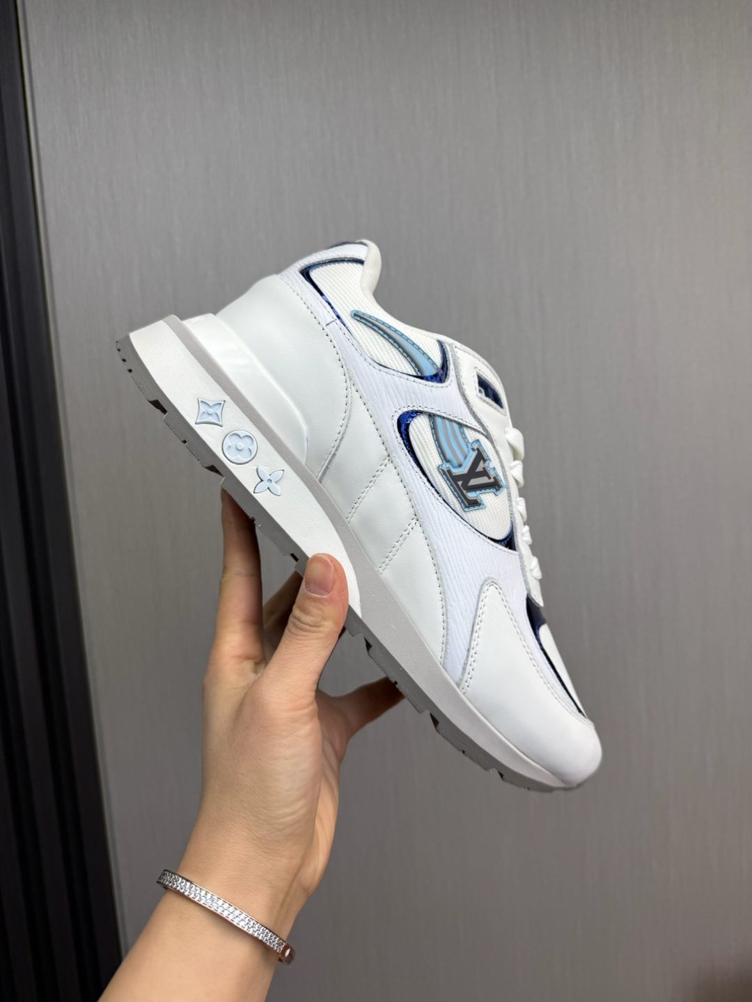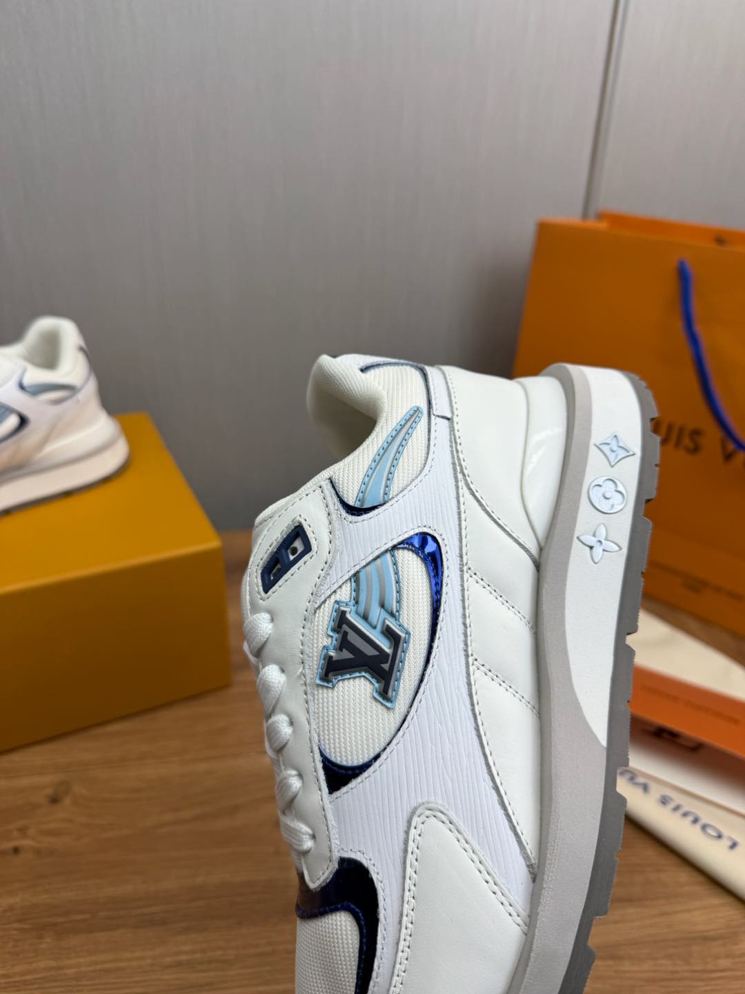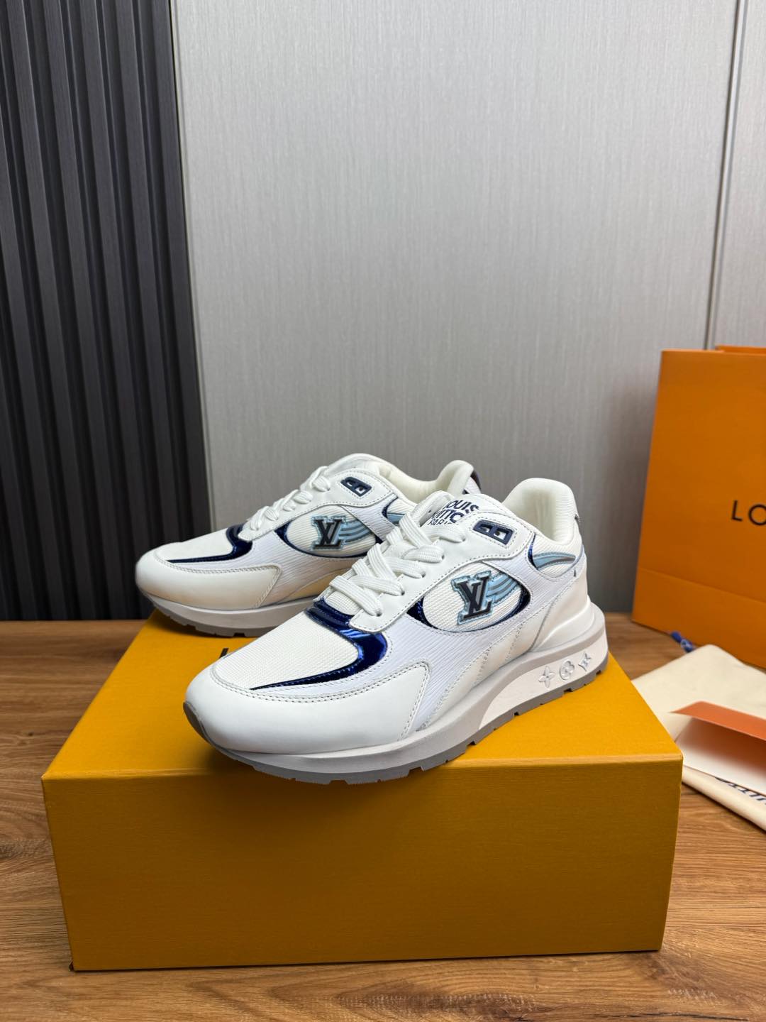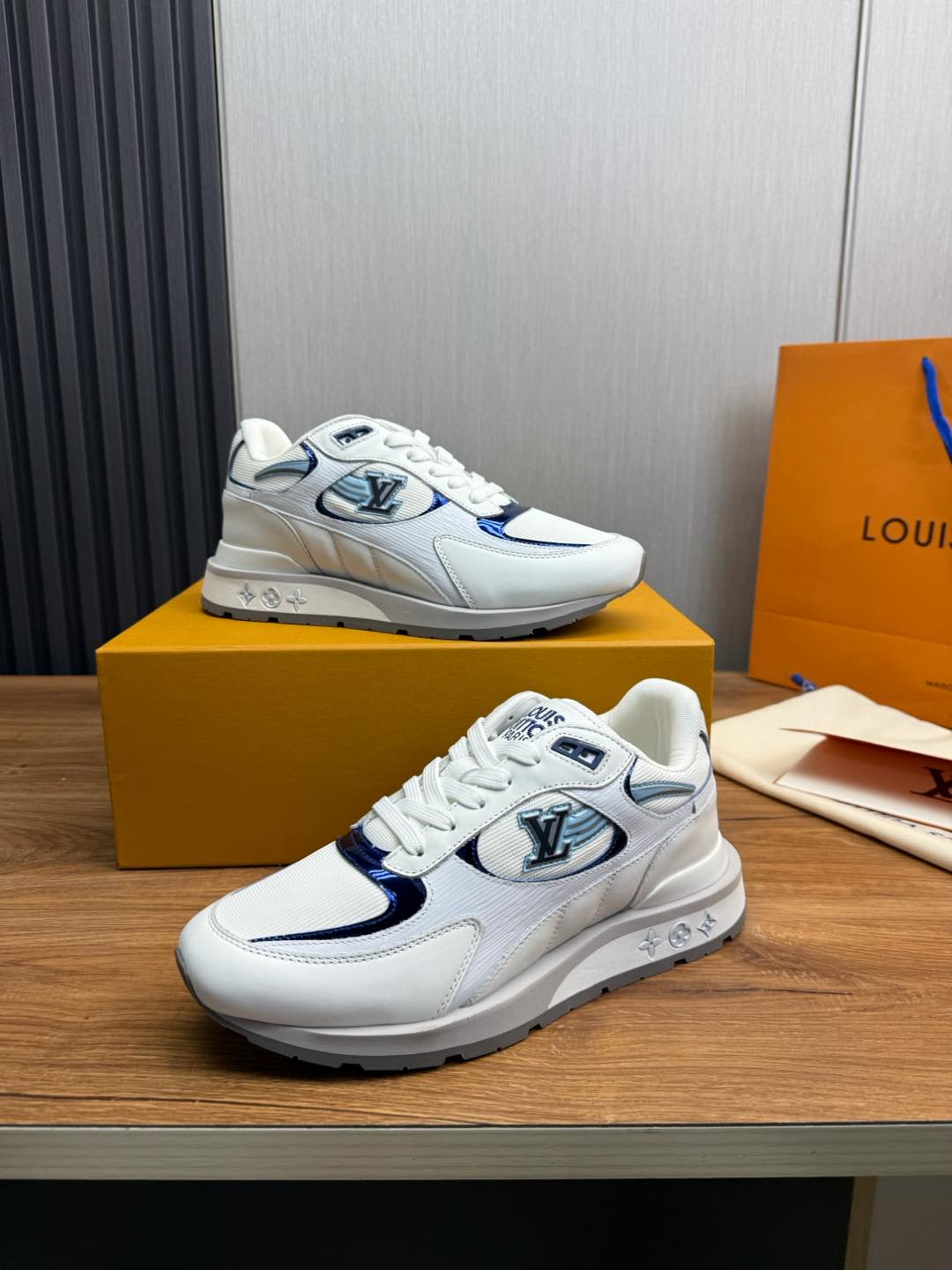 这款鞋子是AAAAA 1:1 质量 (非常棒). 使用了和原版一模一样的材料. 商标部分也保持了和路易威登/Louis Vuitton一样. 图片拍摄是实物鞋子拍摄, 您所收到的实物保证和我们图片一模一样.