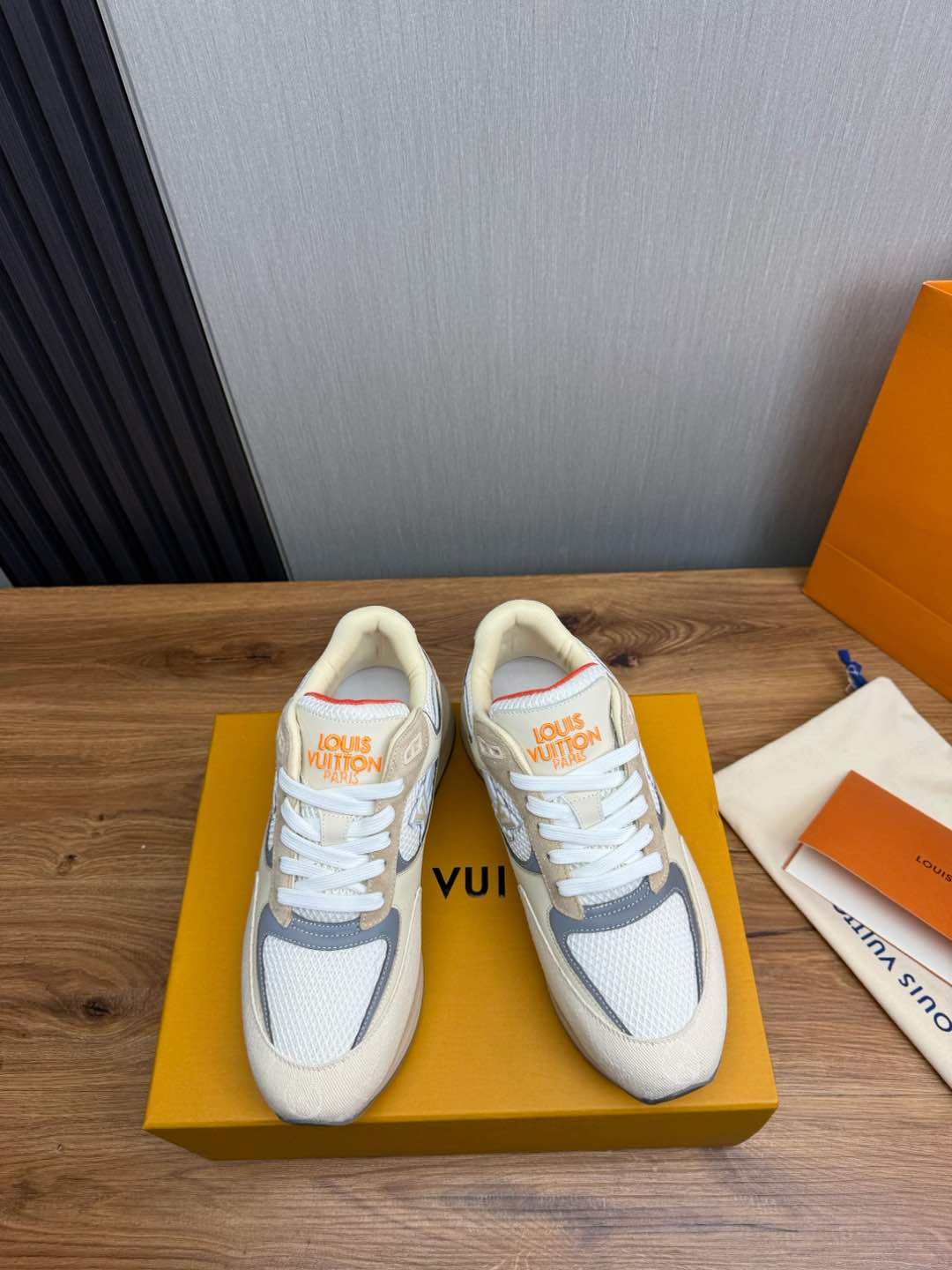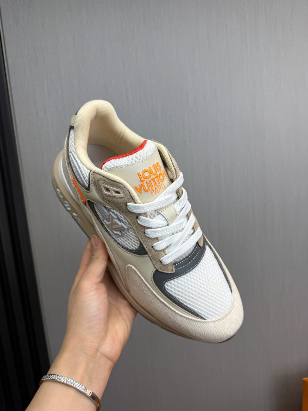 这款鞋子是AAAAA 1:1 质量 (非常棒). 使用了和原版一模一样的材料. 商标部分也保持了和路易威登/Louis Vuitton一样. 图片拍摄是实物鞋子拍摄, 您所收到的实物保证和我们图片一模一样.