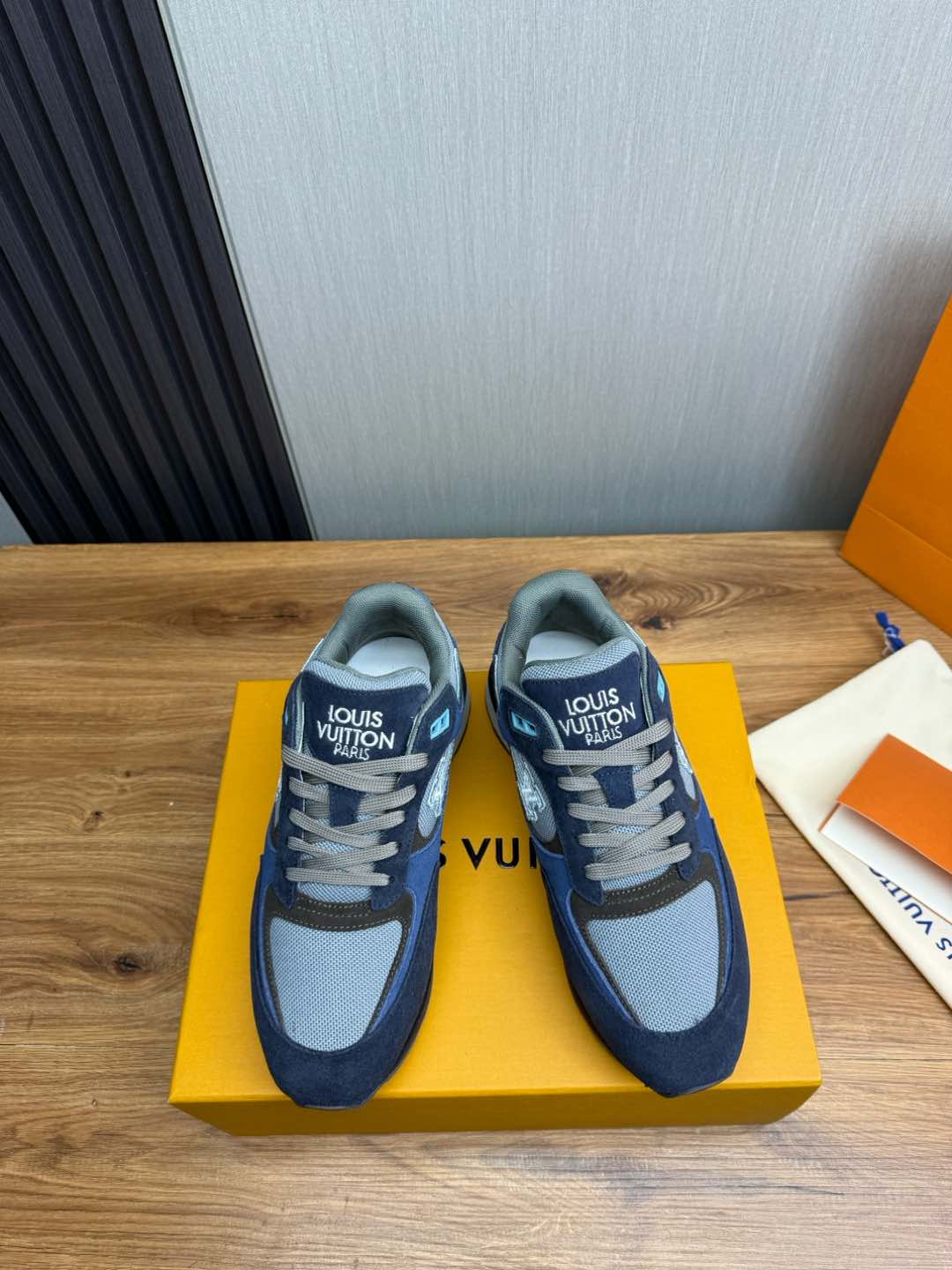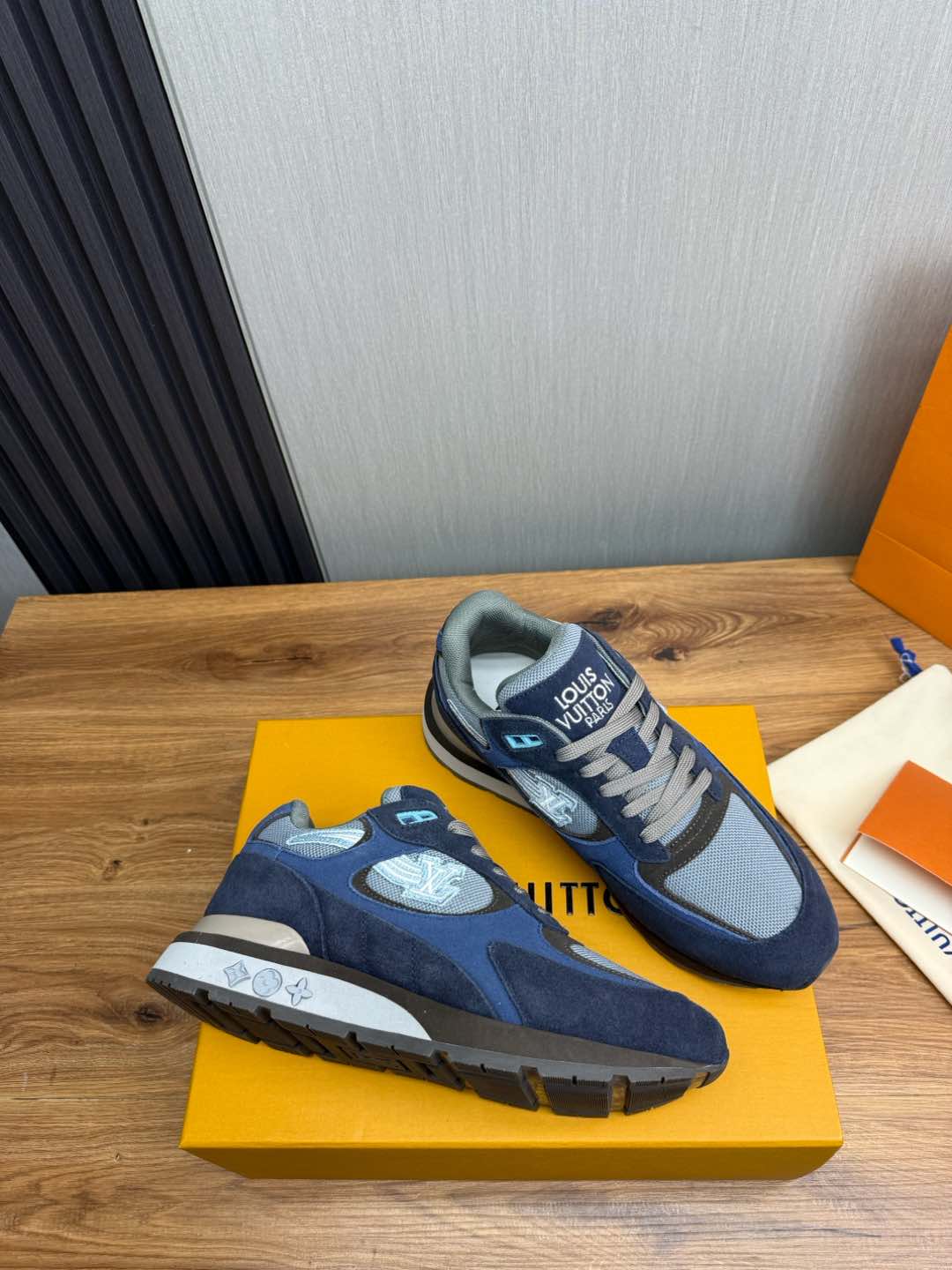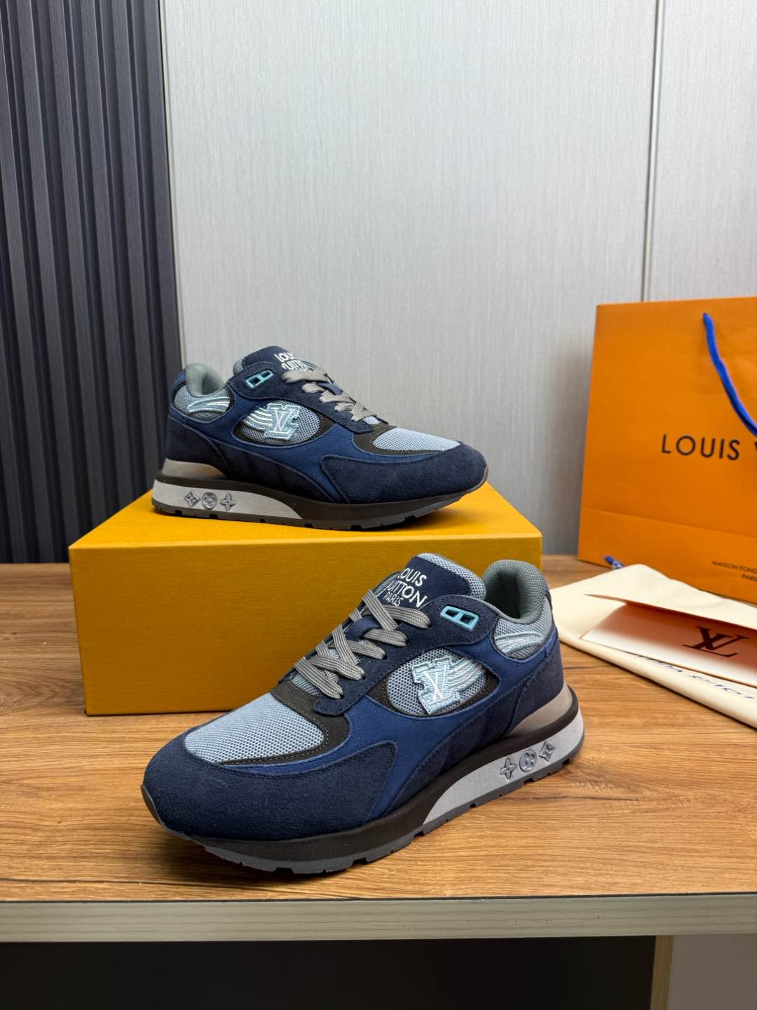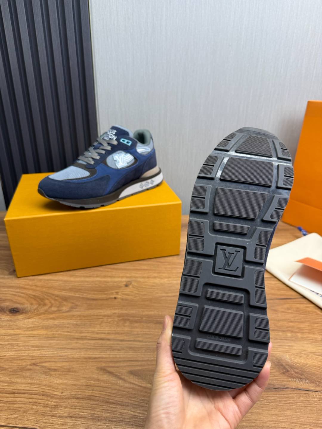 这款鞋子是AAAAA 1:1 质量 (非常棒). 使用了和原版一模一样的材料. 商标部分也保持了和路易威登/Louis Vuitton一样. 图片拍摄是实物鞋子拍摄, 您所收到的实物保证和我们图片一模一样.