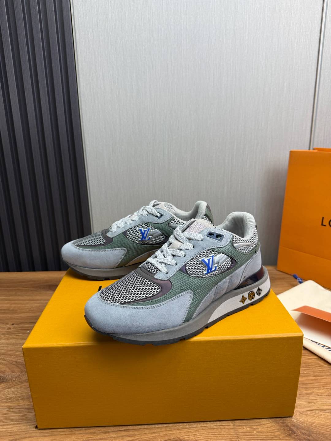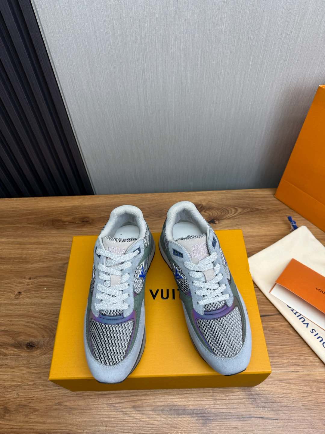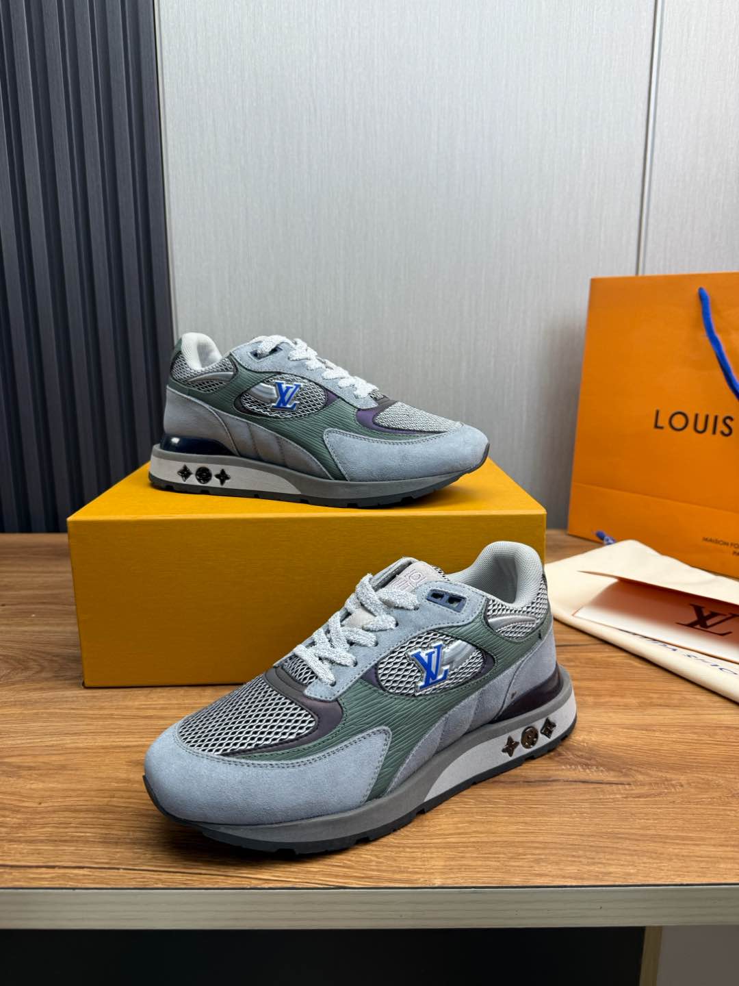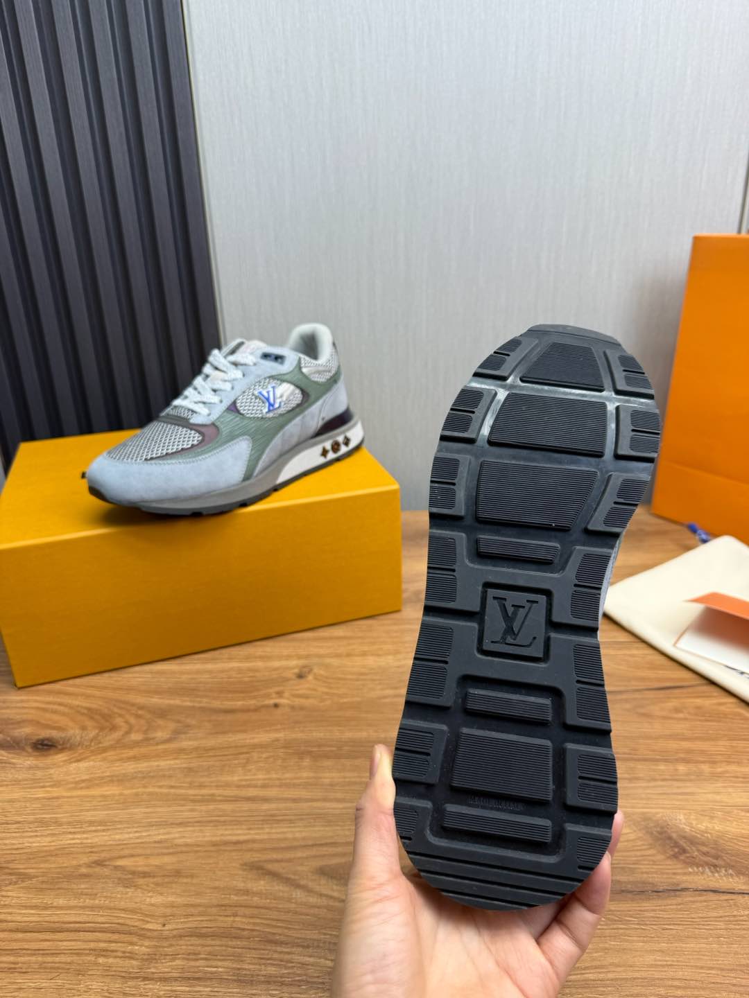 这款鞋子是AAAAA 1:1 质量 (非常棒). 使用了和原版一模一样的材料. 商标部分也保持了和路易威登/Louis Vuitton一样. 图片拍摄是实物鞋子拍摄, 您所收到的实物保证和我们图片一模一样.
