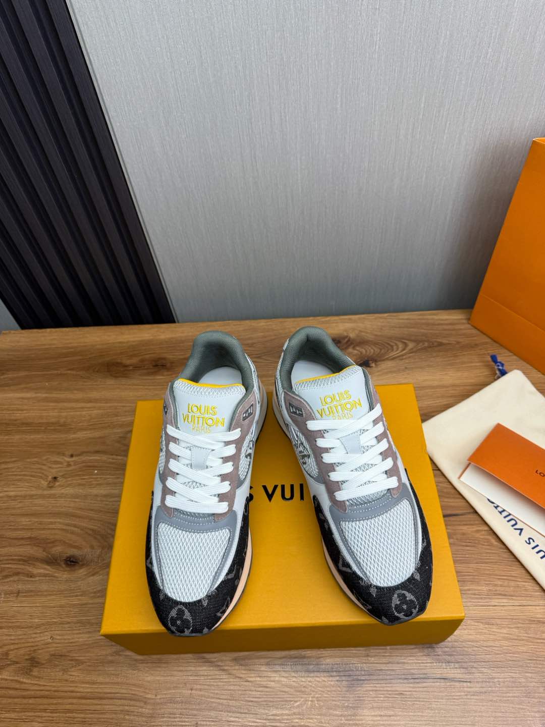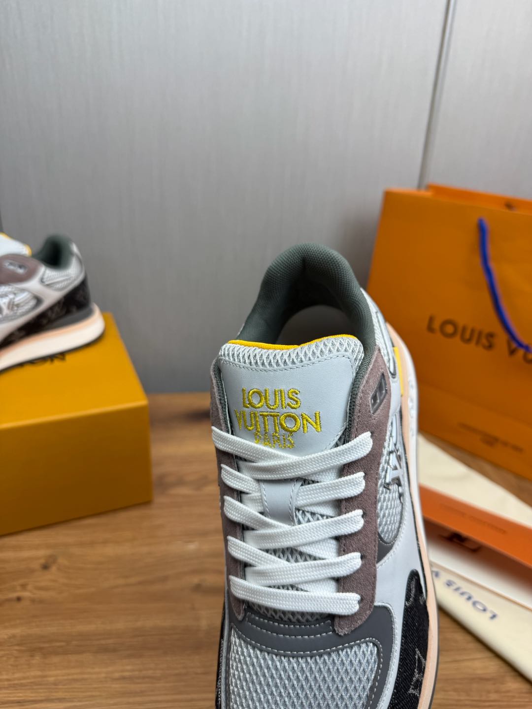 这款鞋子是AAAAA 1:1 质量 (非常棒). 使用了和原版一模一样的材料. 商标部分也保持了和路易威登/Louis Vuitton一样. 图片拍摄是实物鞋子拍摄, 您所收到的实物保证和我们图片一模一样.
