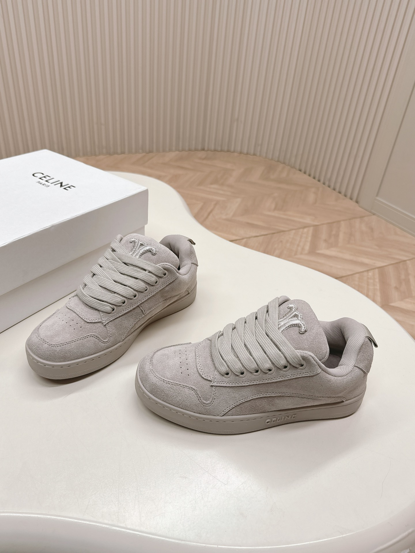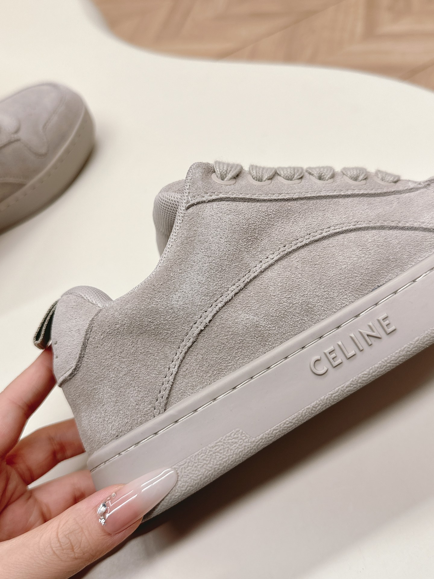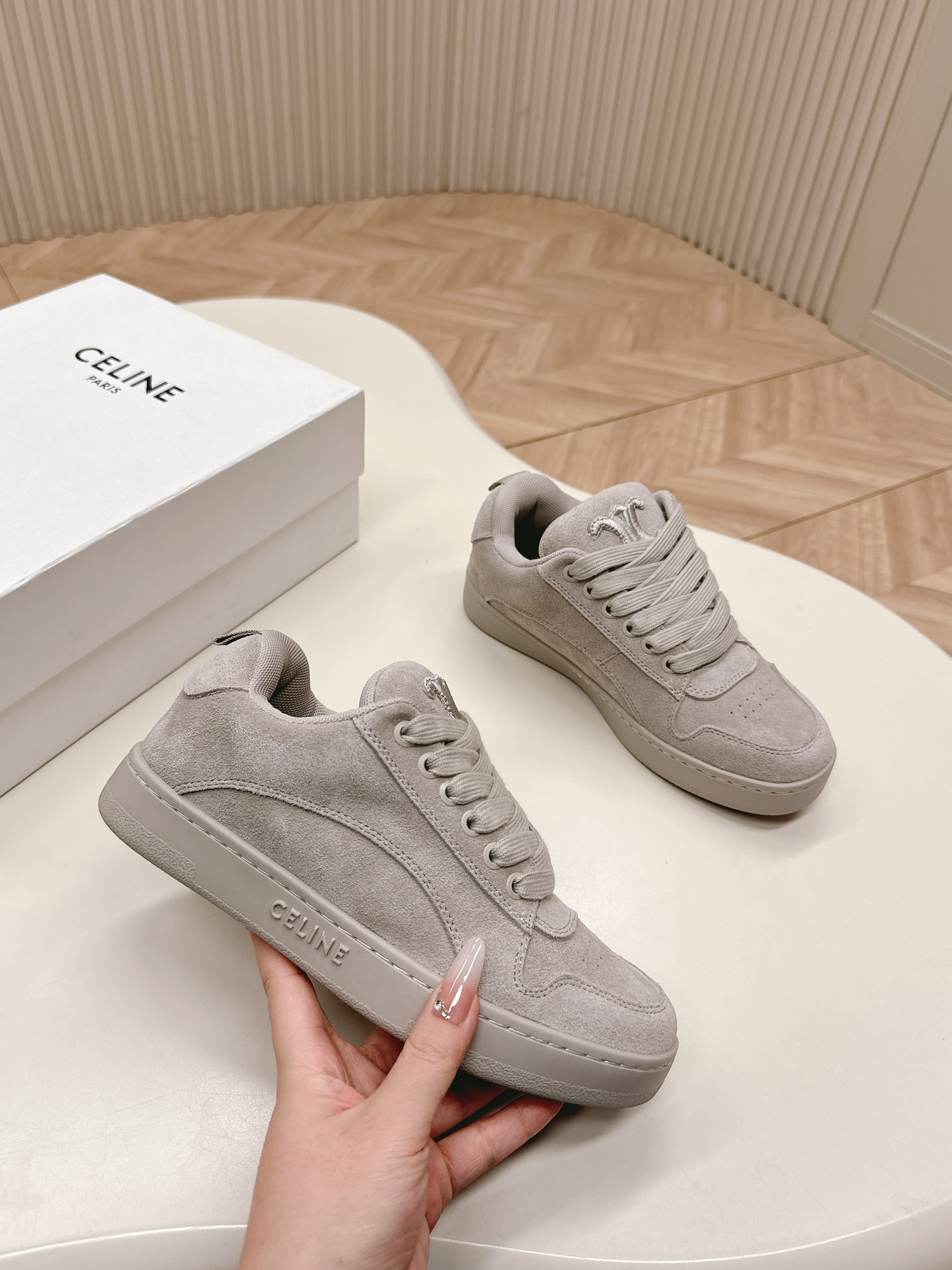 这款鞋子是AAAAA 1:1 质量 (非常棒). 使用了和原版一模一样的材料. 商标部分也保持了和思琳/Celine一样. 图片拍摄是实物鞋子拍摄, 您所收到的实物保证和我们图片一模一样.