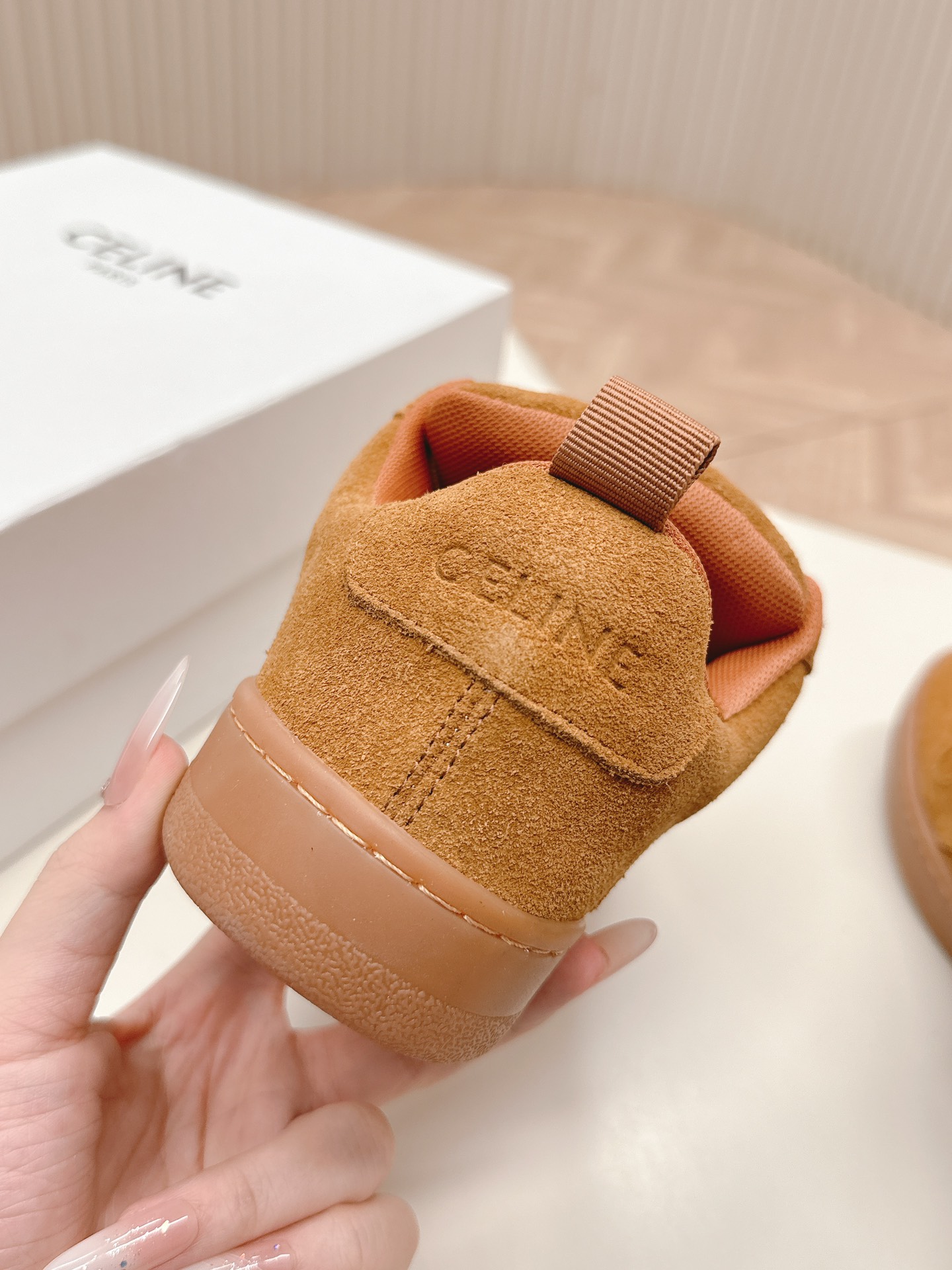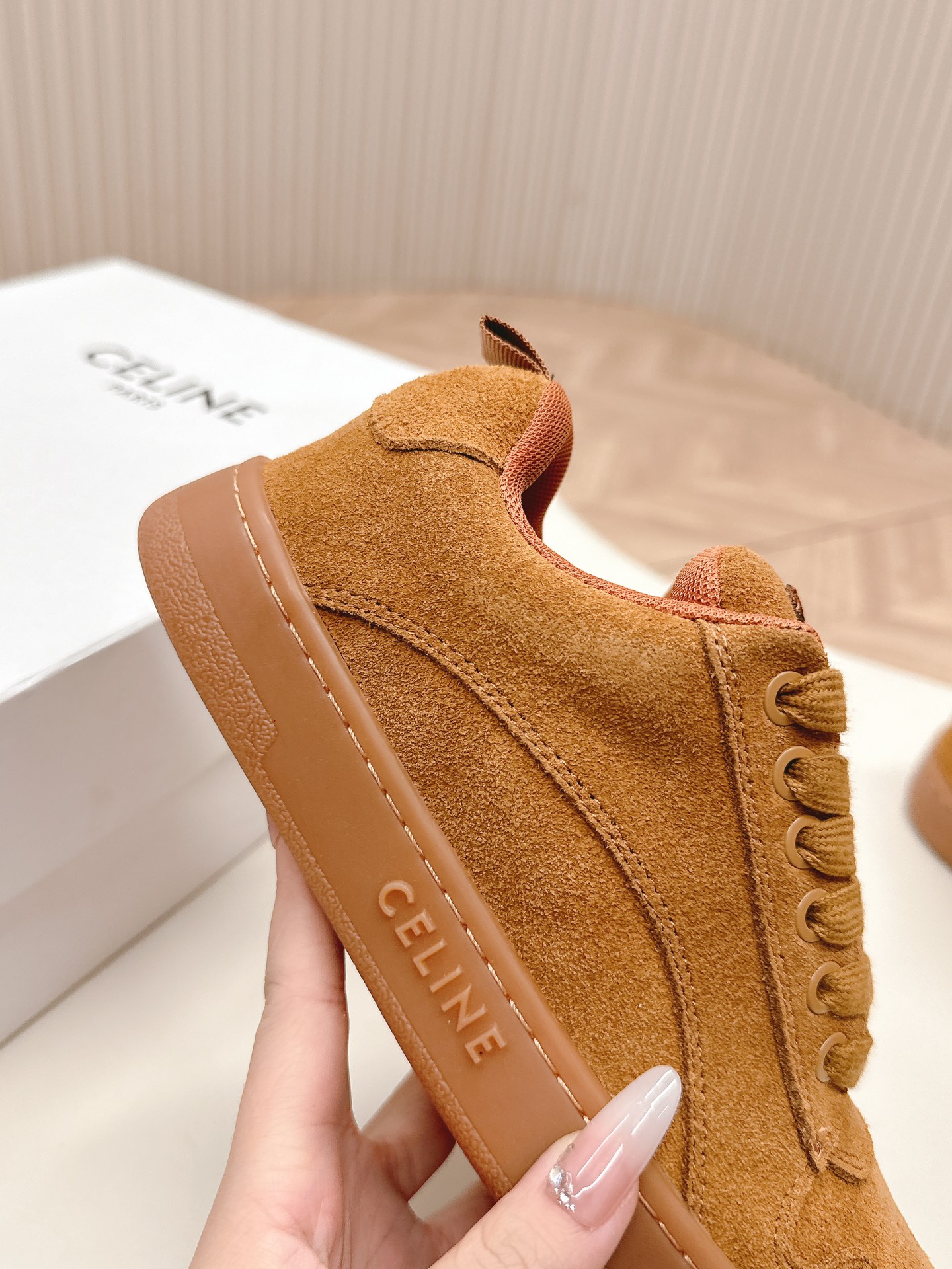 这款鞋子是AAAAA 1:1 质量 (非常棒). 使用了和原版一模一样的材料. 商标部分也保持了和思琳/Celine一样. 图片拍摄是实物鞋子拍摄, 您所收到的实物保证和我们图片一模一样.