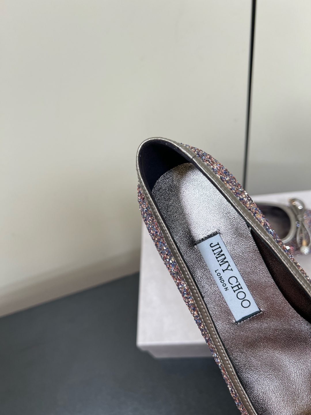 这款鞋子是AAAAA 1:1 质量 (非常棒). 使用了和原版一模一样的材料. 商标部分也保持了和吉米乔/JIMMY CHOO一样. 图片拍摄是实物鞋子拍摄, 您所收到的实物保证和我们图片一模一样.