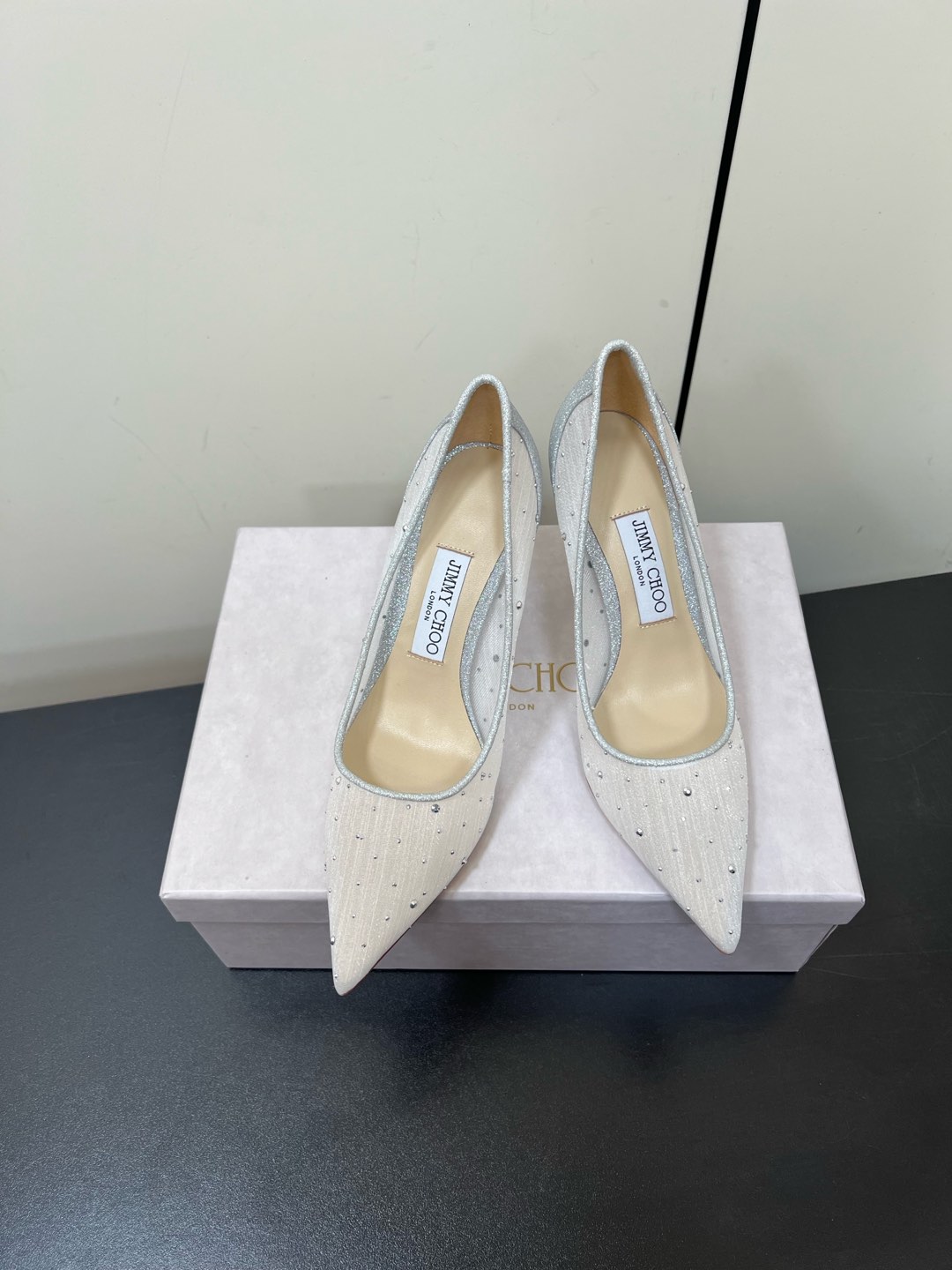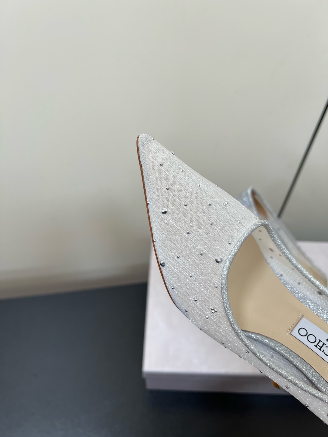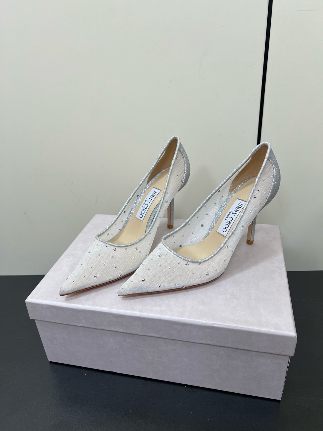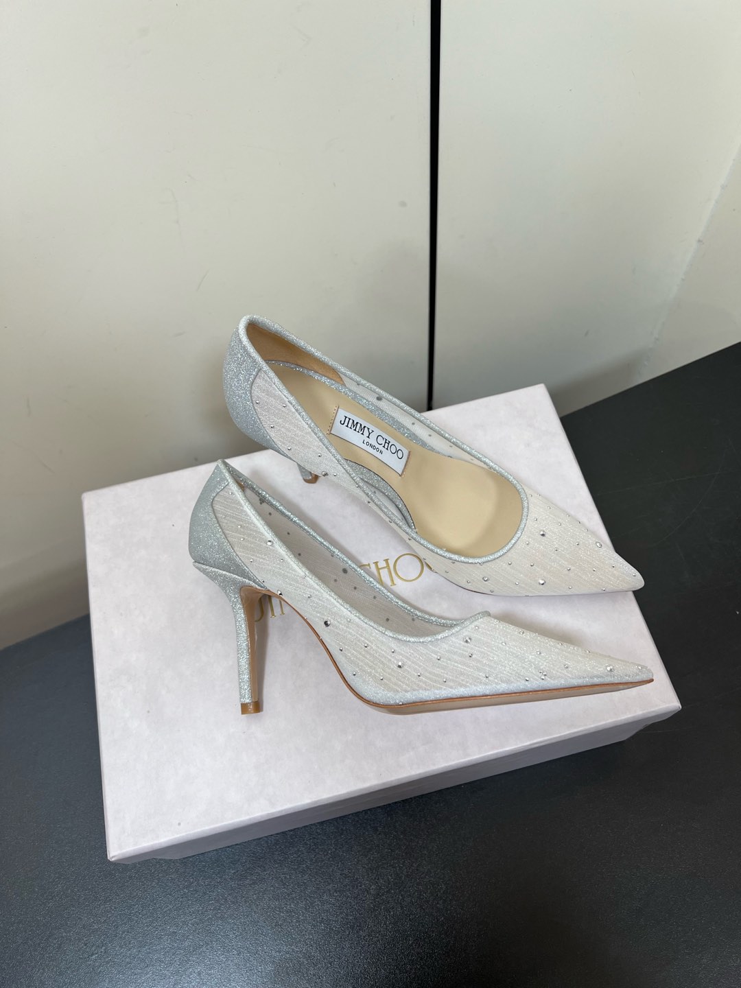 这款鞋子是AAAAA 1:1 质量 (非常棒). 使用了和原版一模一样的材料. 商标部分也保持了和吉米乔/JIMMY CHOO一样. 图片拍摄是实物鞋子拍摄, 您所收到的实物保证和我们图片一模一样.
