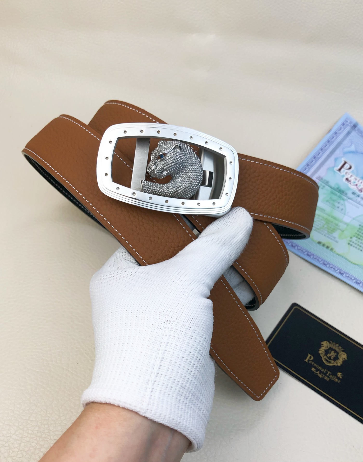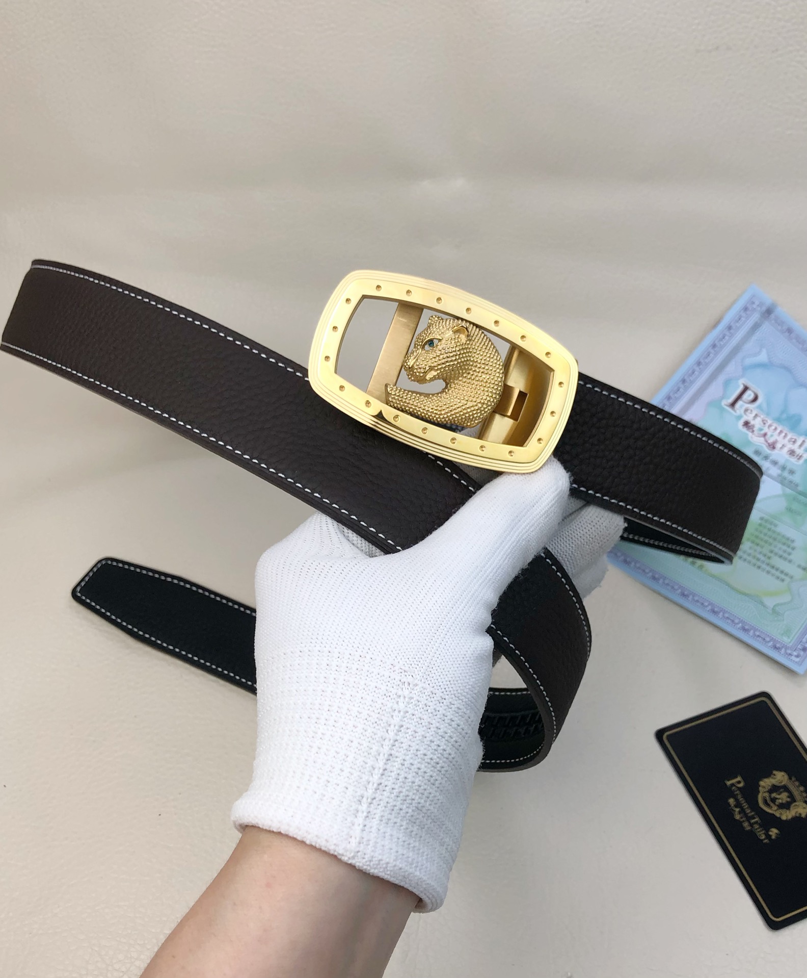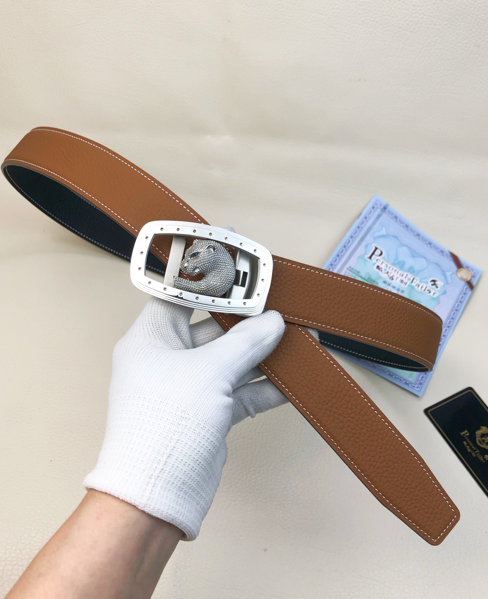 这款皮带是AAAAA 1:1 质量 (非常棒). 使用了和原版一模一样的材料. 商标部分也保持了和一样. 图片拍摄是实物皮带拍摄, 您所收到的实物保证和我们图片一模一样.