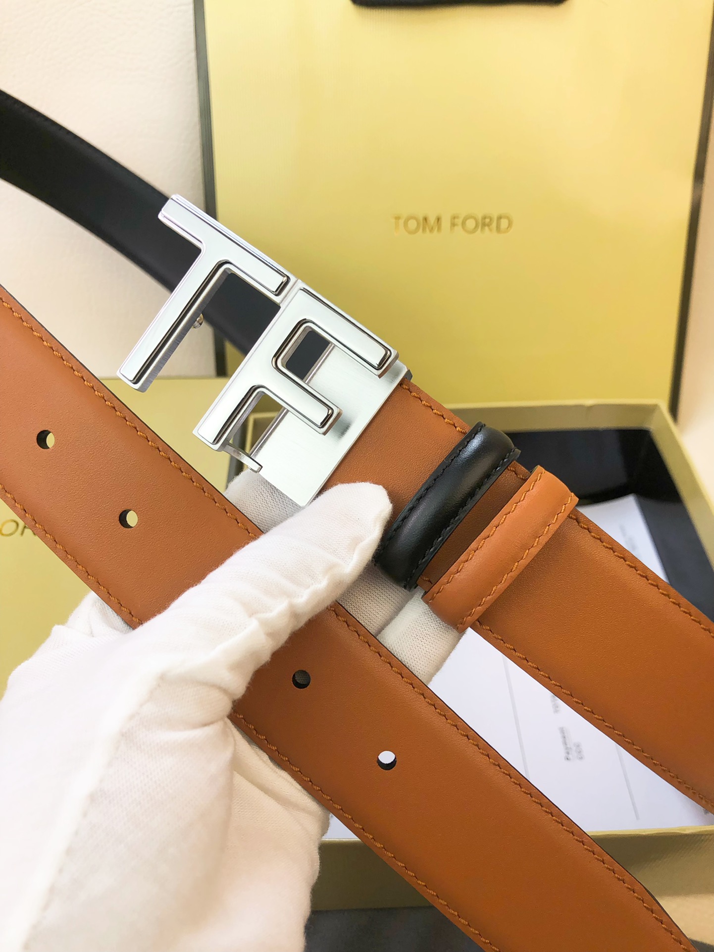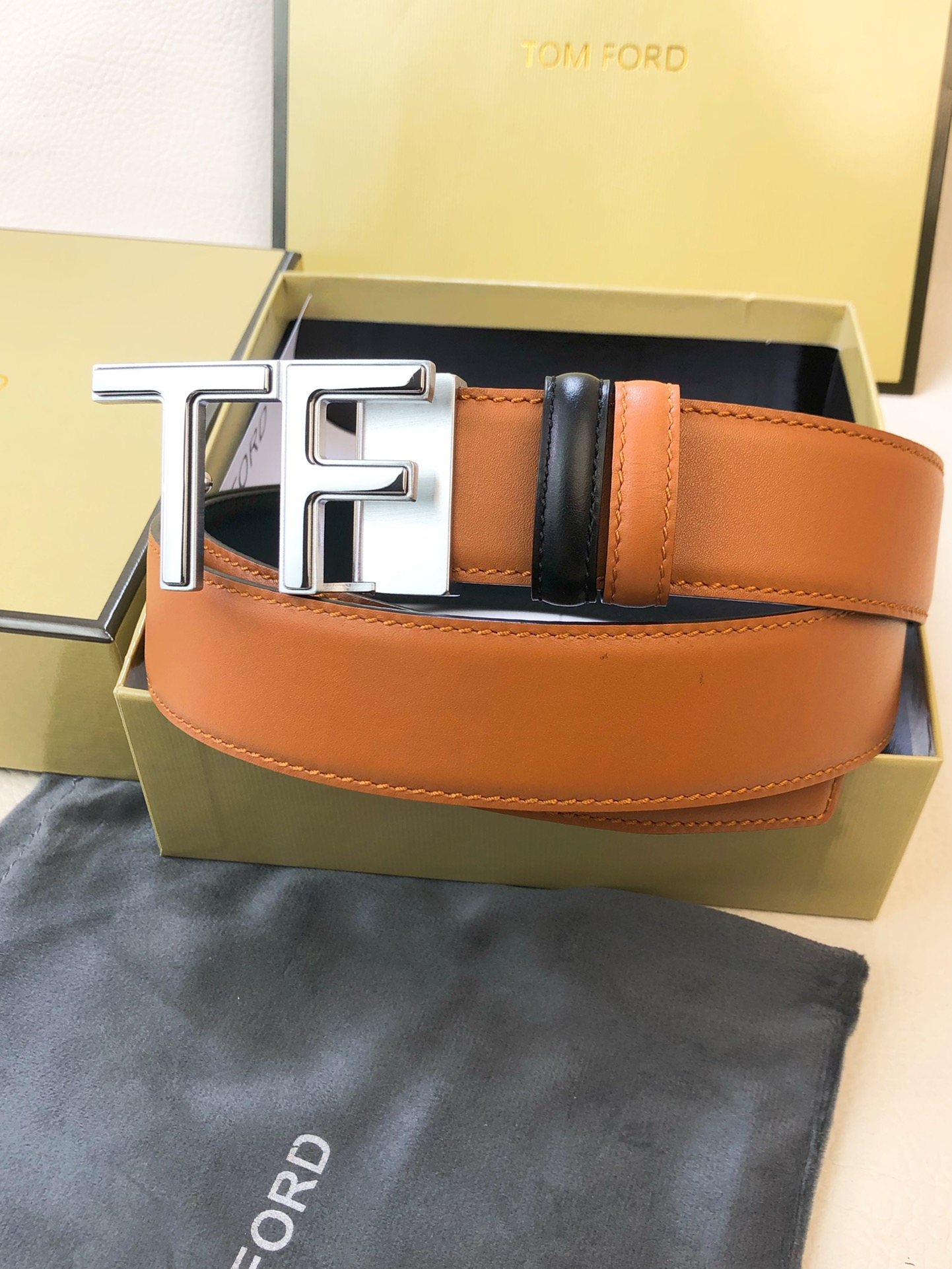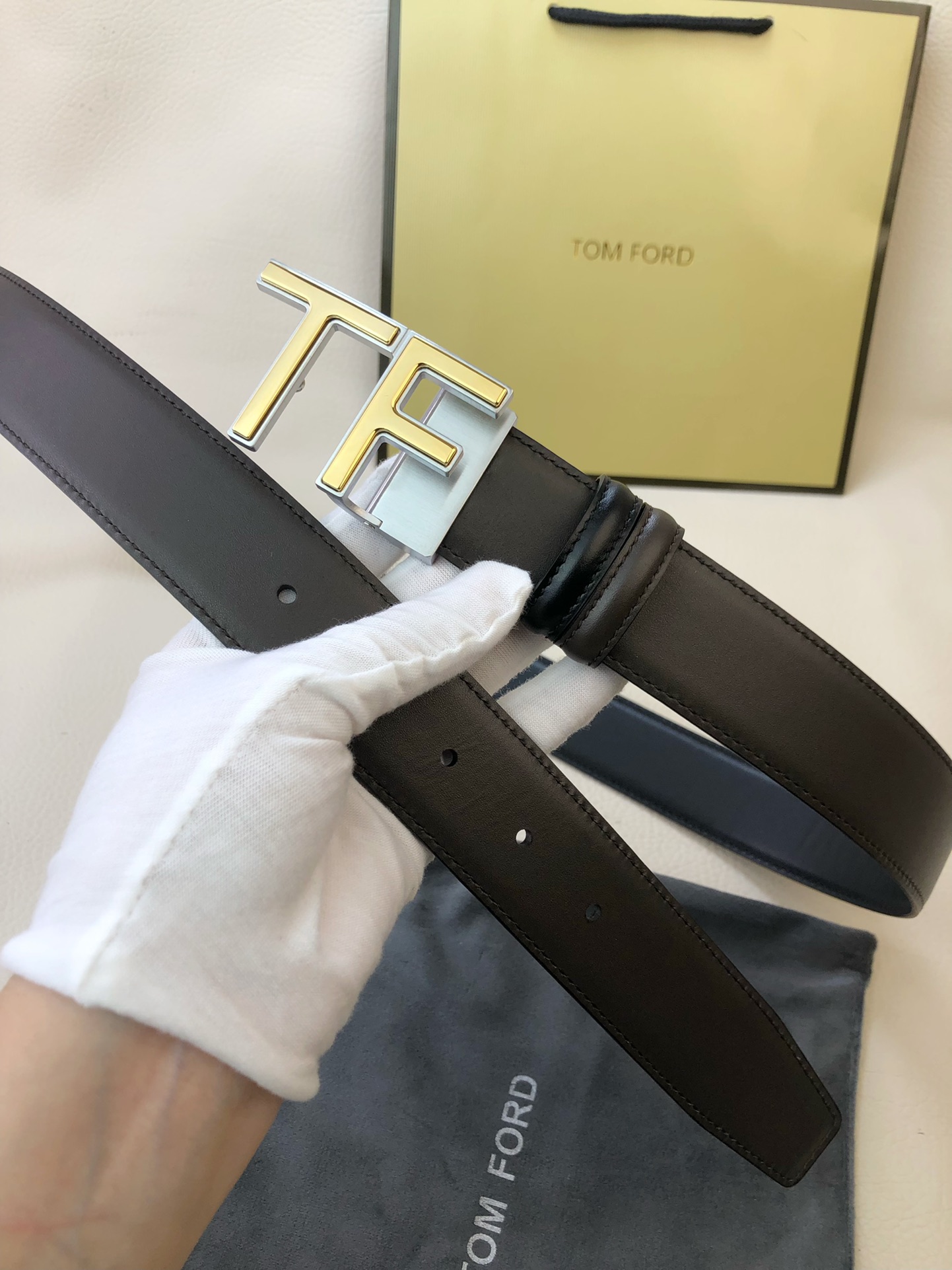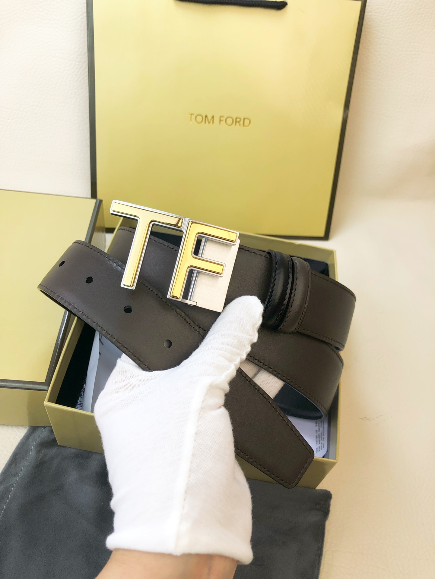 这款皮带是AAAAA 1:1 质量 (非常棒). 使用了和原版一模一样的材料. 商标部分也保持了和汤姆福特/Tom Ford一样. 图片拍摄是实物皮带拍摄, 您所收到的实物保证和我们图片一模一样.
