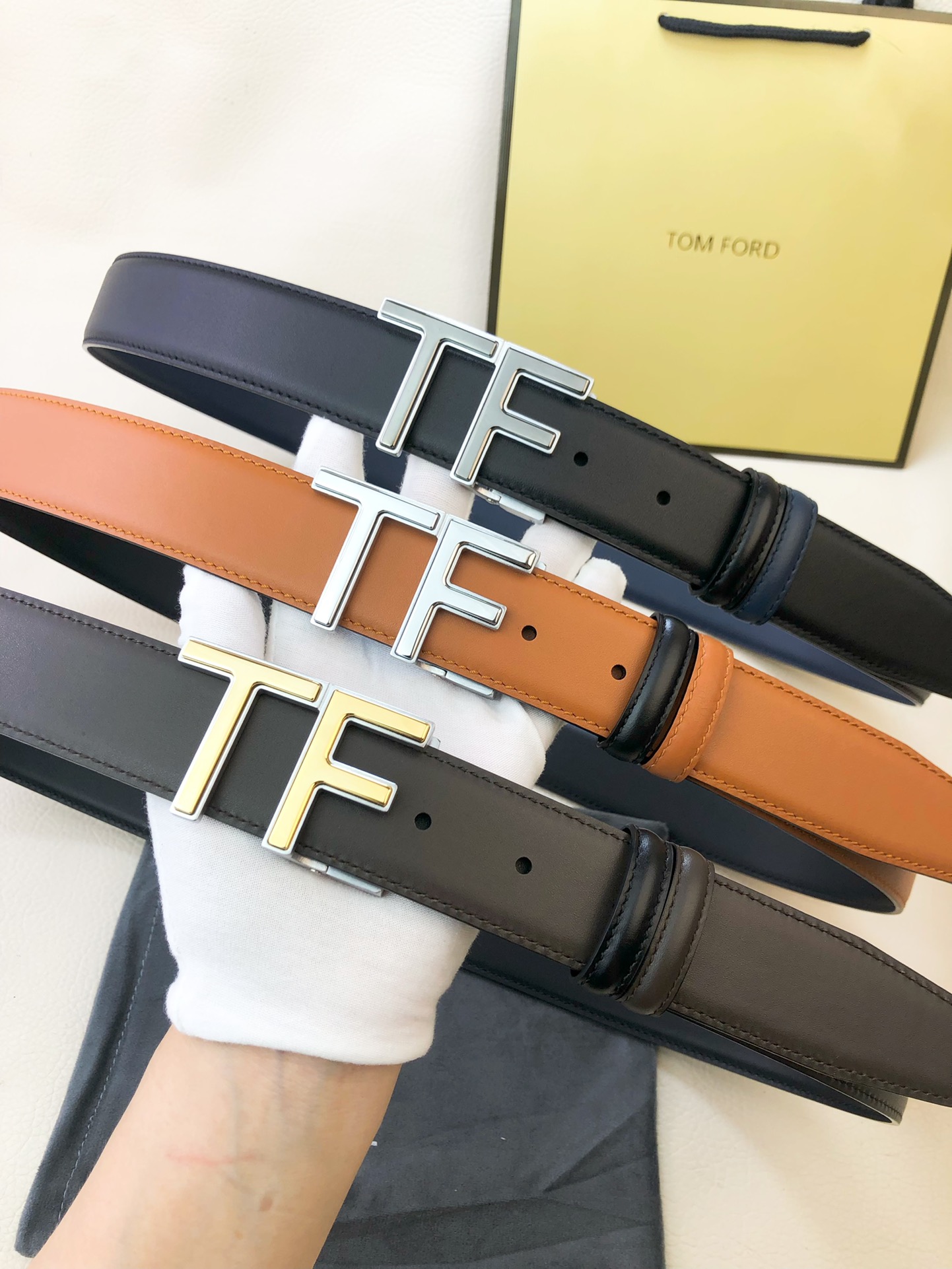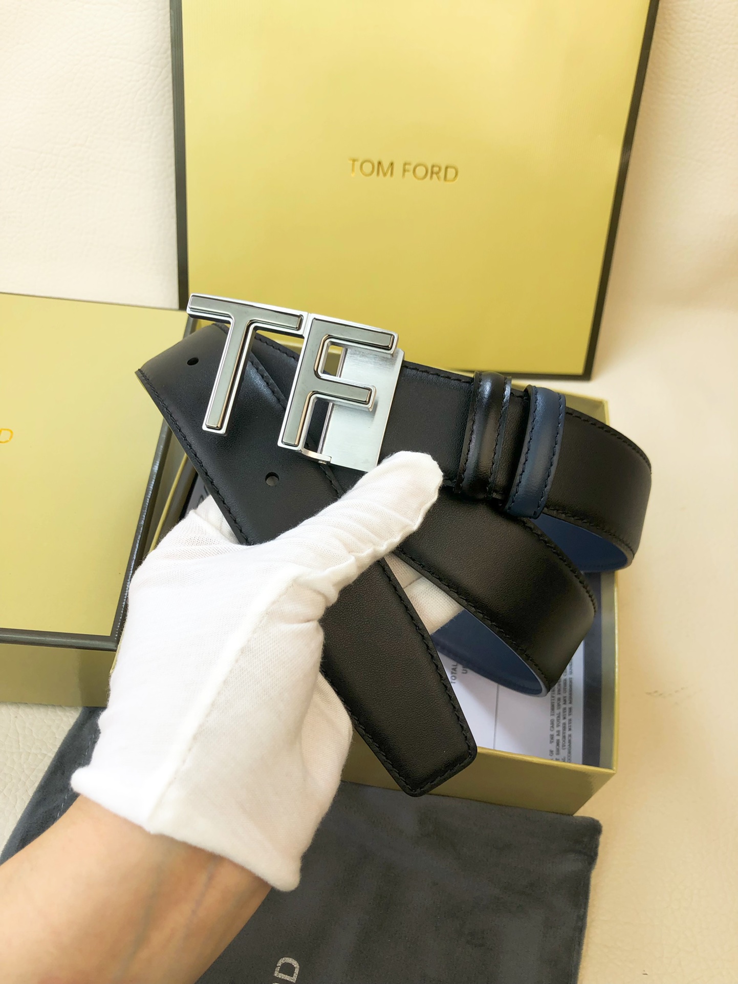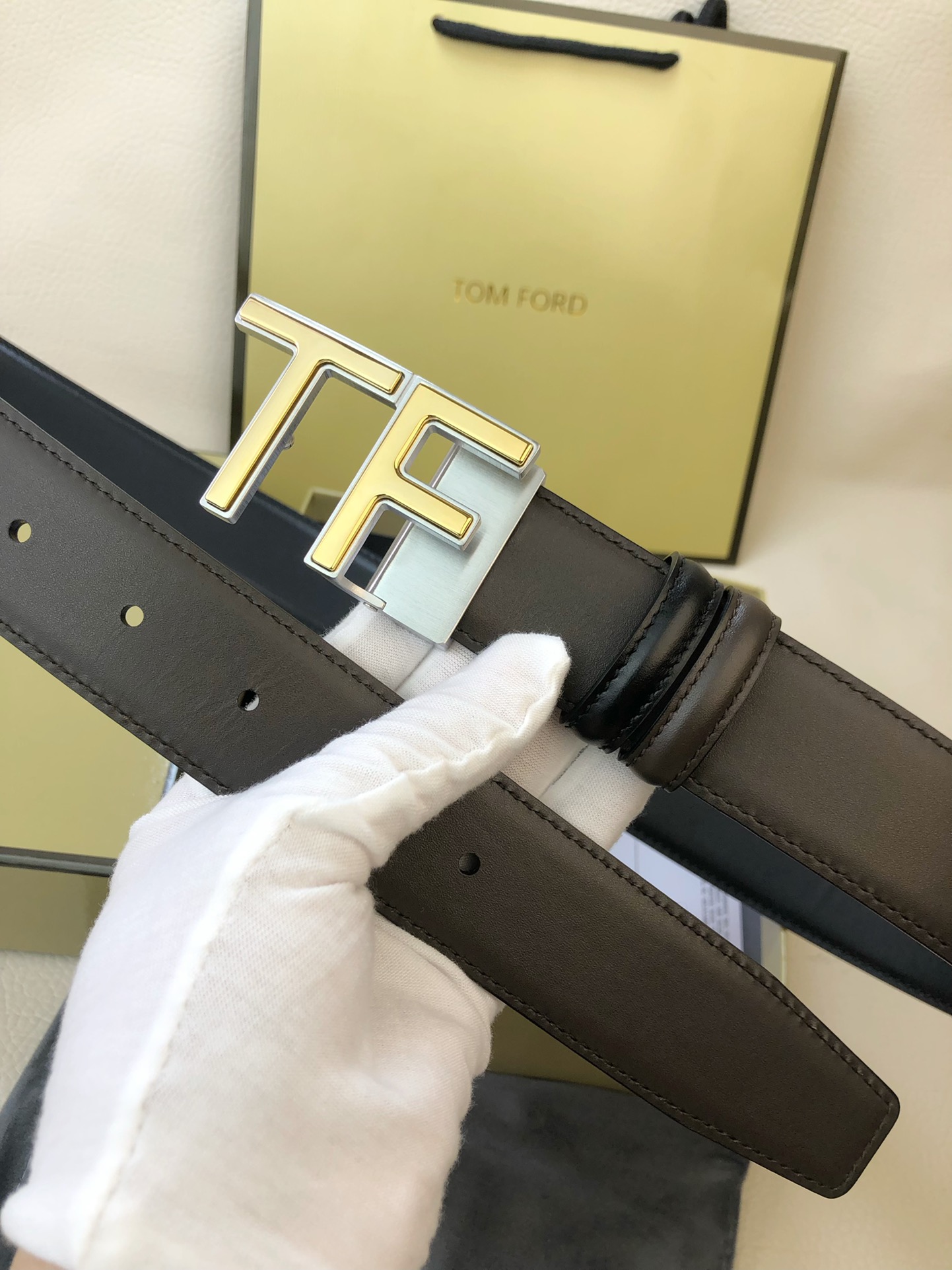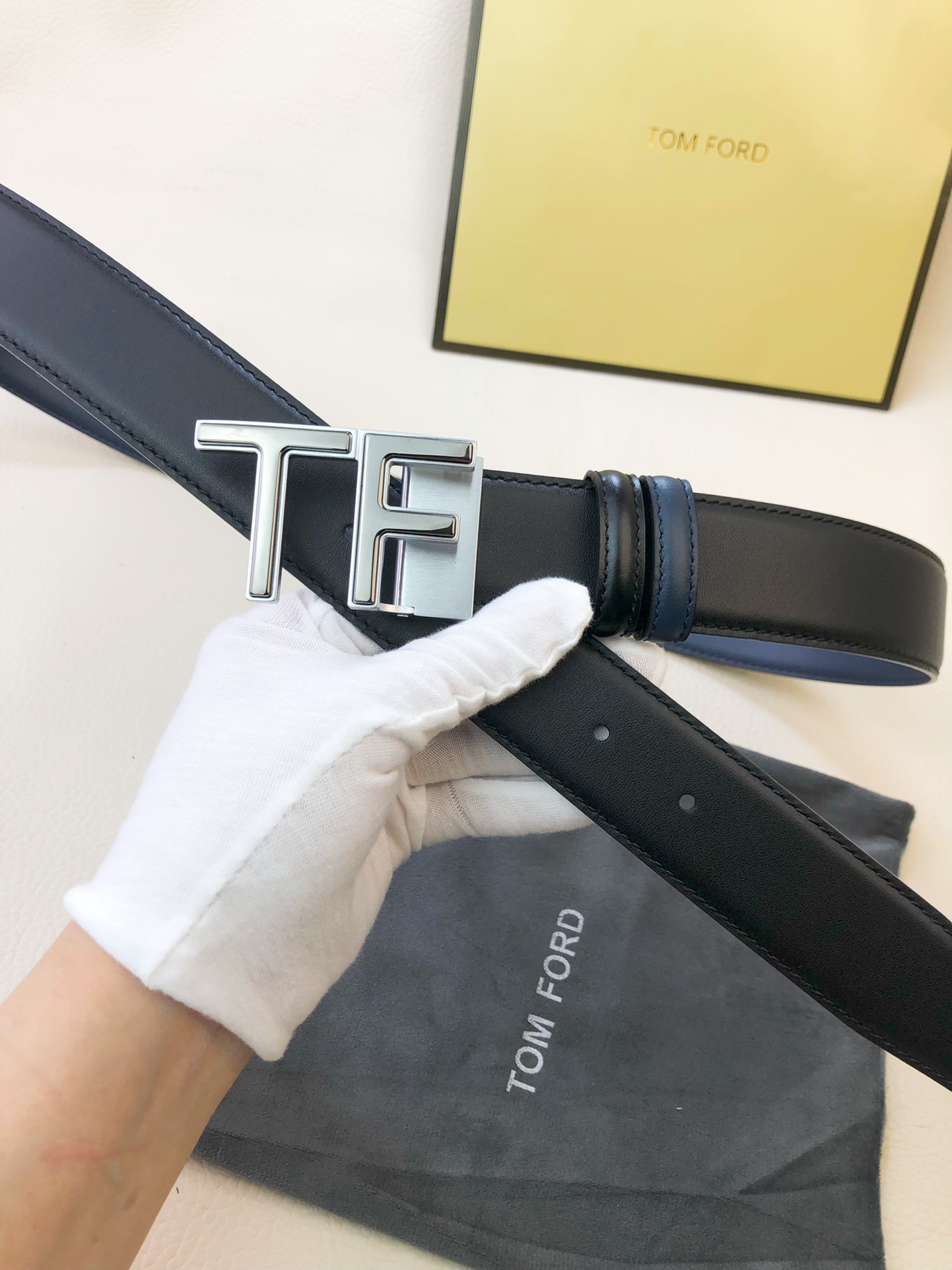 这款皮带是AAAAA 1:1 质量 (非常棒). 使用了和原版一模一样的材料. 商标部分也保持了和汤姆福特/Tom Ford一样. 图片拍摄是实物皮带拍摄, 您所收到的实物保证和我们图片一模一样.