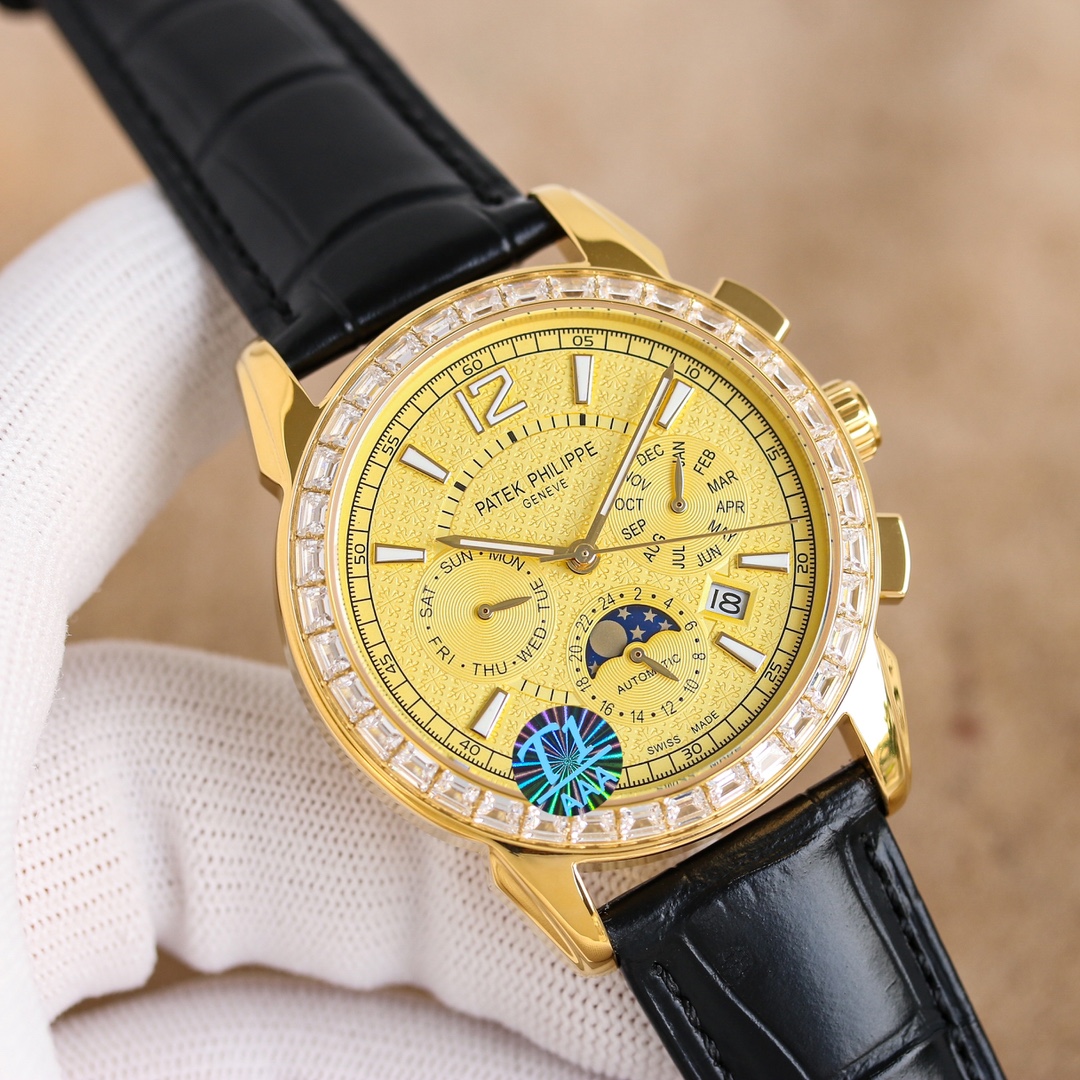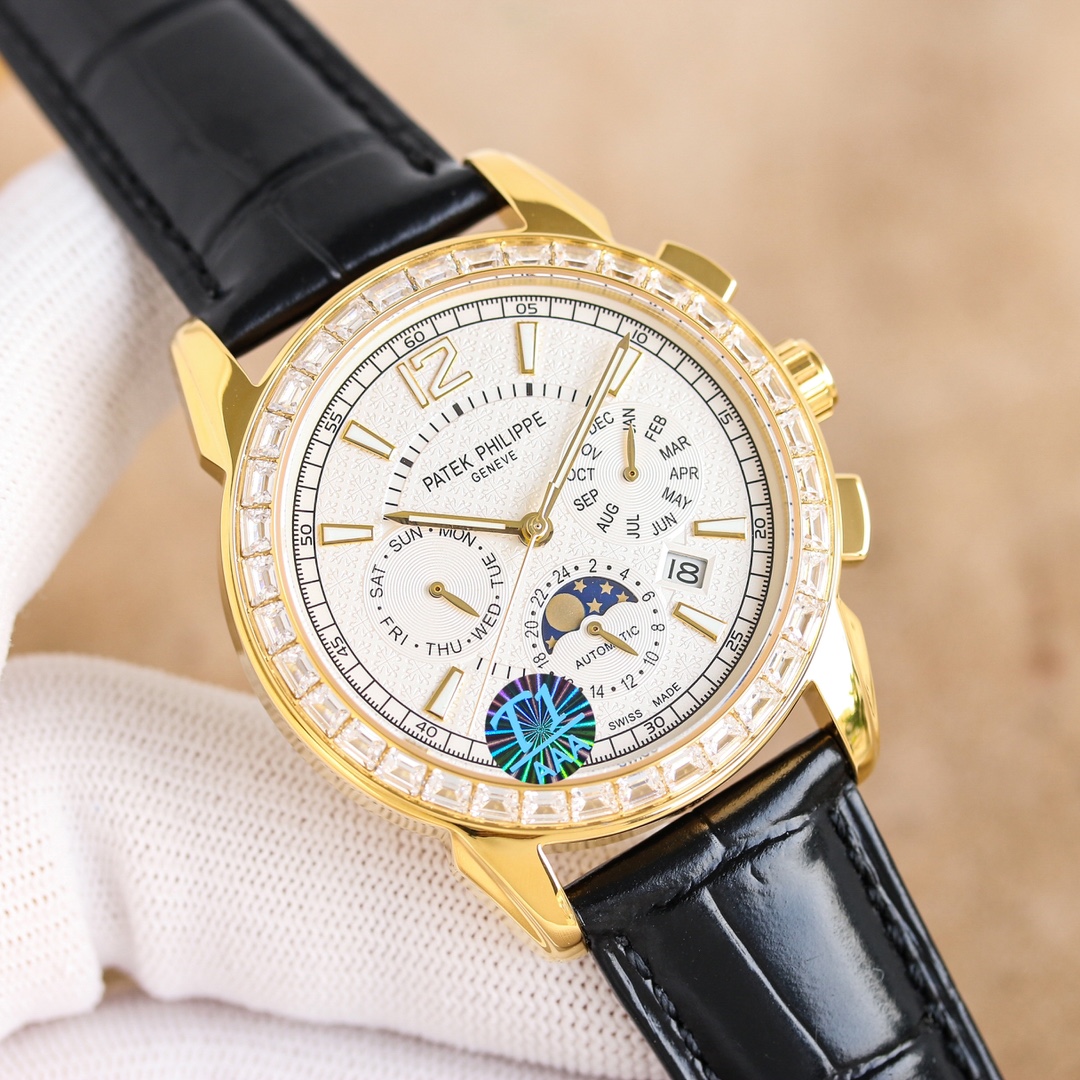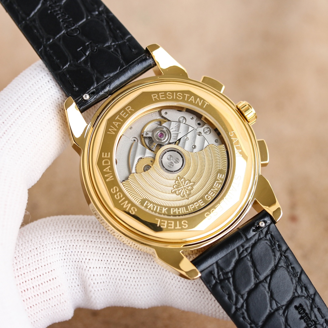 这款手表是AAAAA 1:1 质量 (非常棒). 使用了和原版一模一样的材料. 商标部分也保持了和百达翡丽/Patek Philippe一样. 图片拍摄是实物手表拍摄, 您所收到的实物保证和我们图片一模一样.