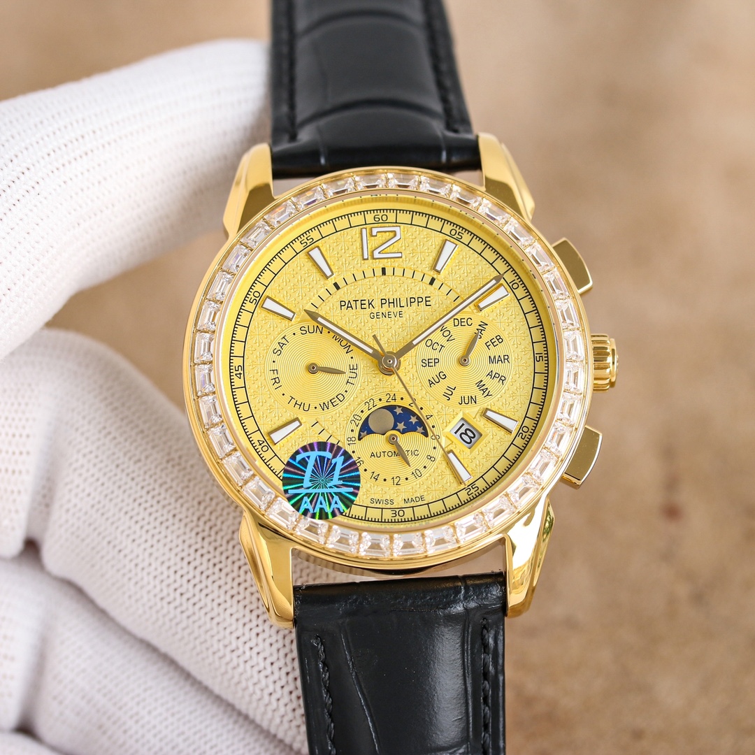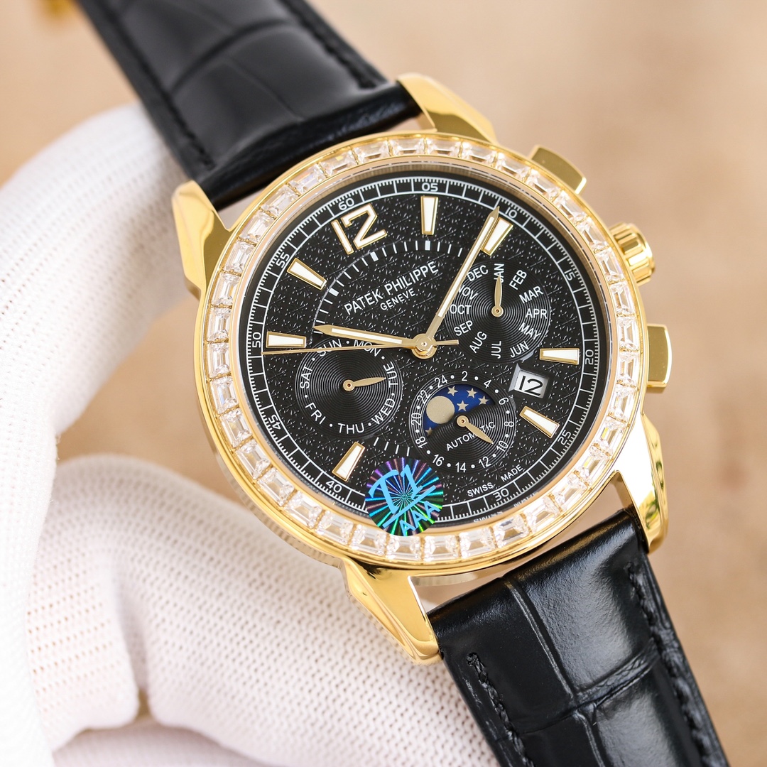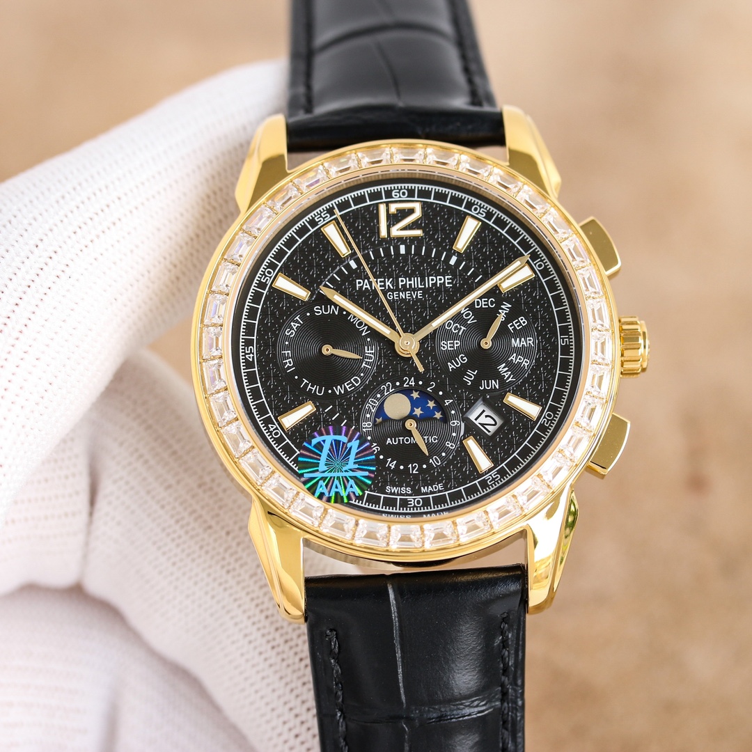这款手表是AAAAA 1:1 质量 (非常棒). 使用了和原版一模一样的材料. 商标部分也保持了和百达翡丽/Patek Philippe一样. 图片拍摄是实物手表拍摄, 您所收到的实物保证和我们图片一模一样.