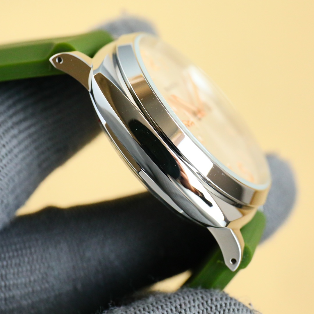 这款手表是AAAAA 1:1 质量 (非常棒). 使用了和原版一模一样的材料. 商标部分也保持了和沛纳海/Panerai一样. 图片拍摄是实物手表拍摄, 您所收到的实物保证和我们图片一模一样.