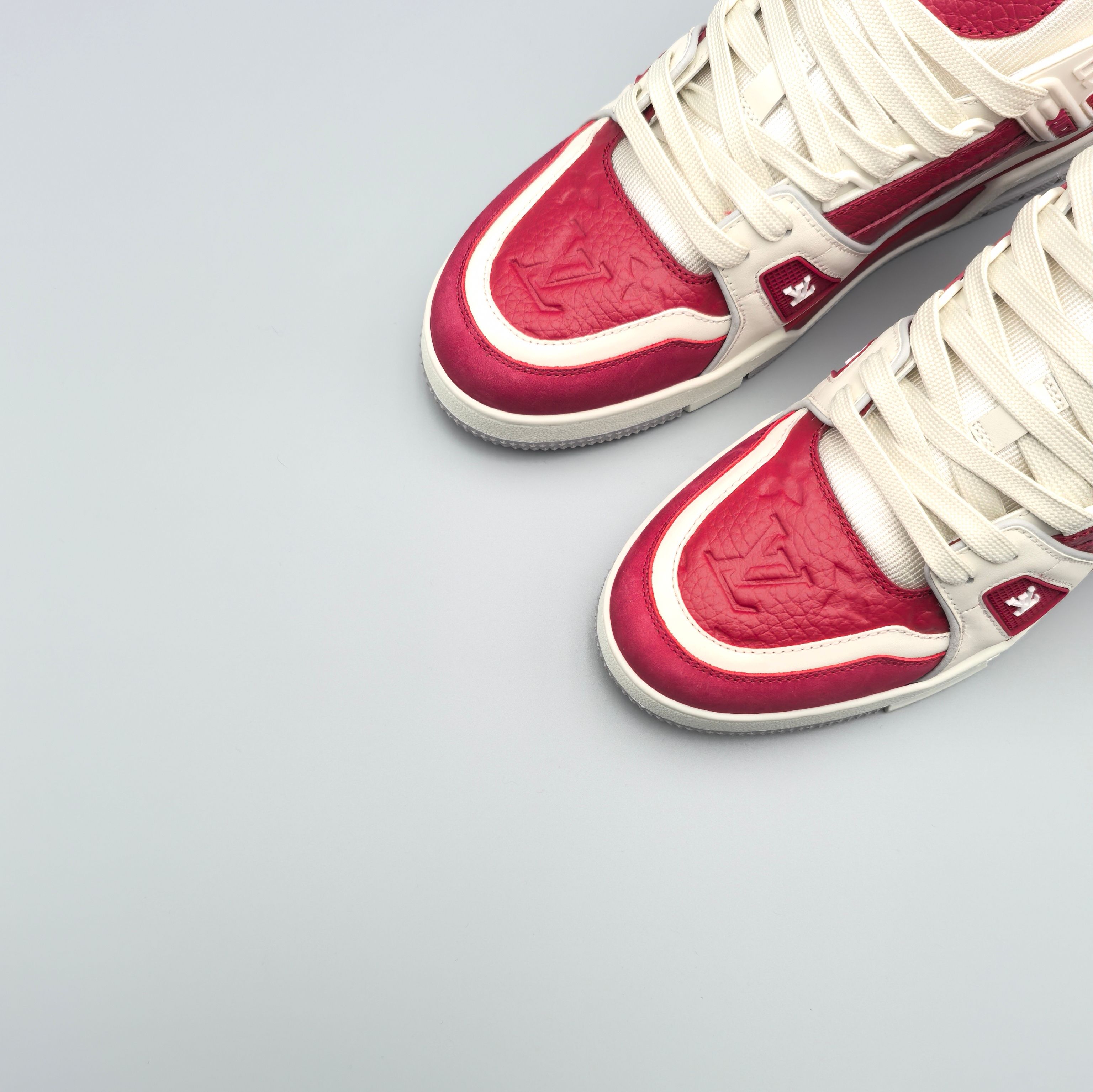 这款鞋子是AAAAA 1:1 质量 (非常棒). 使用了和原版一模一样的材料. 商标部分也保持了和路易威登/Louis Vuitton一样. 图片拍摄是实物鞋子拍摄, 您所收到的实物保证和我们图片一模一样.