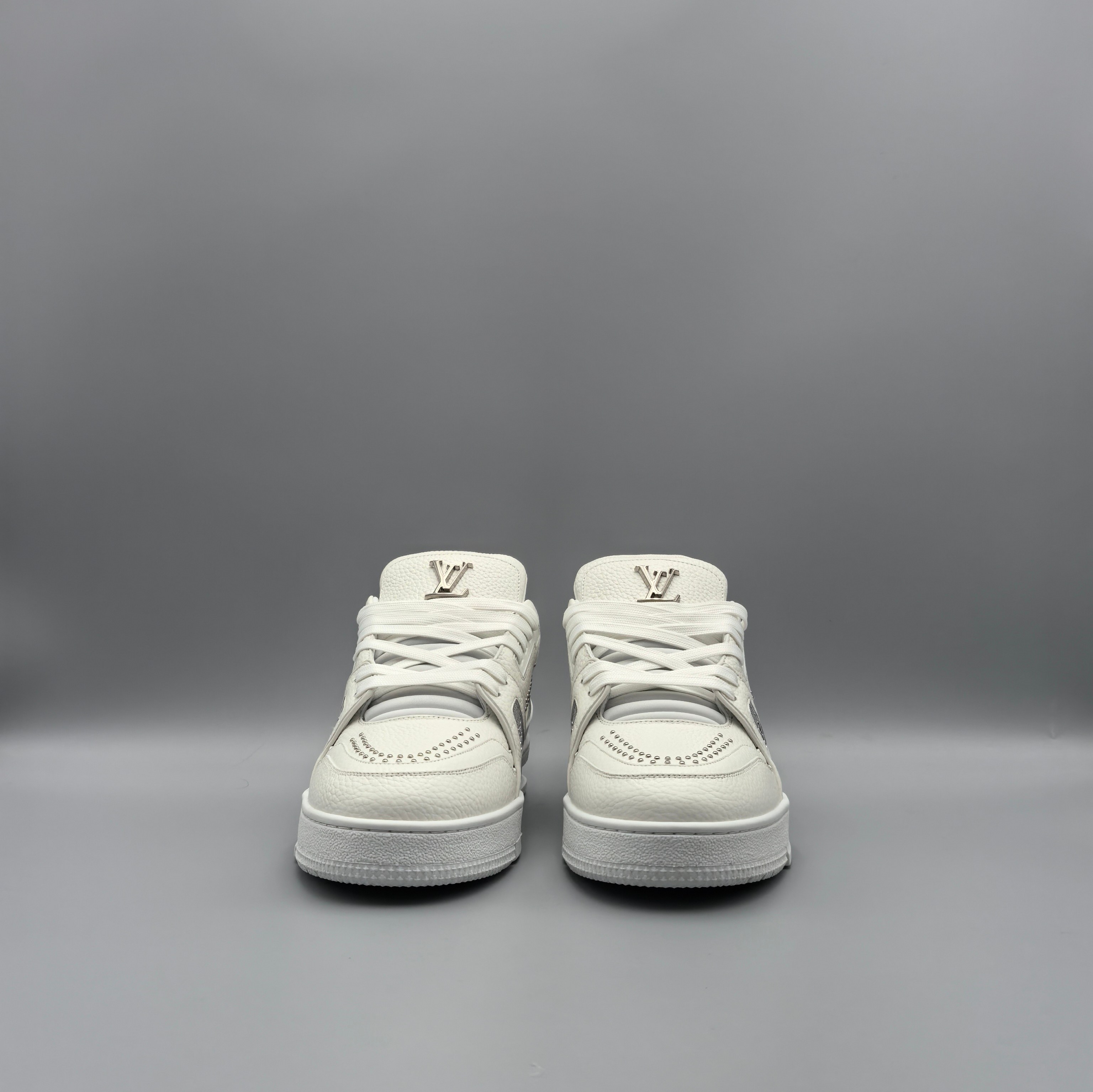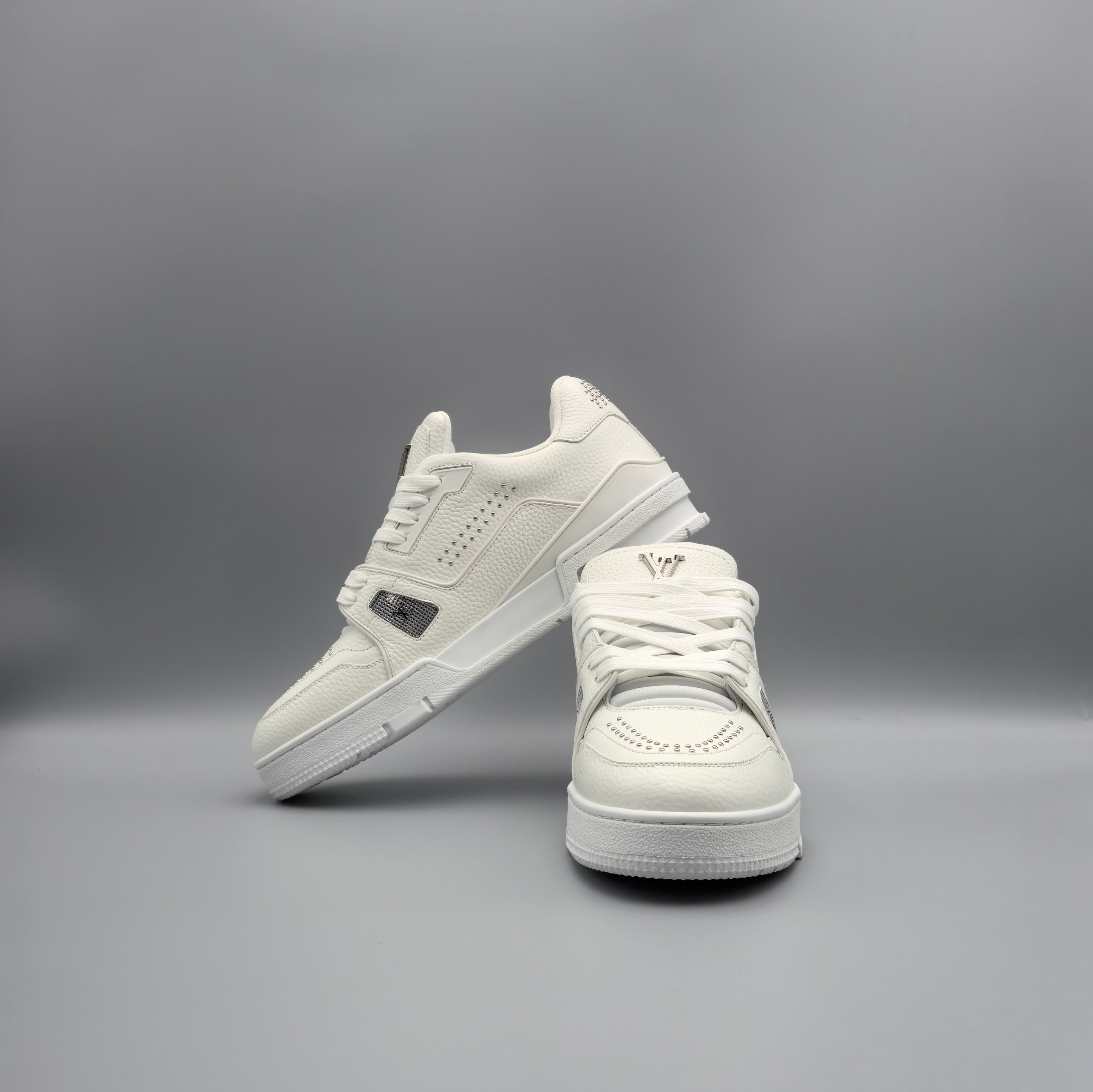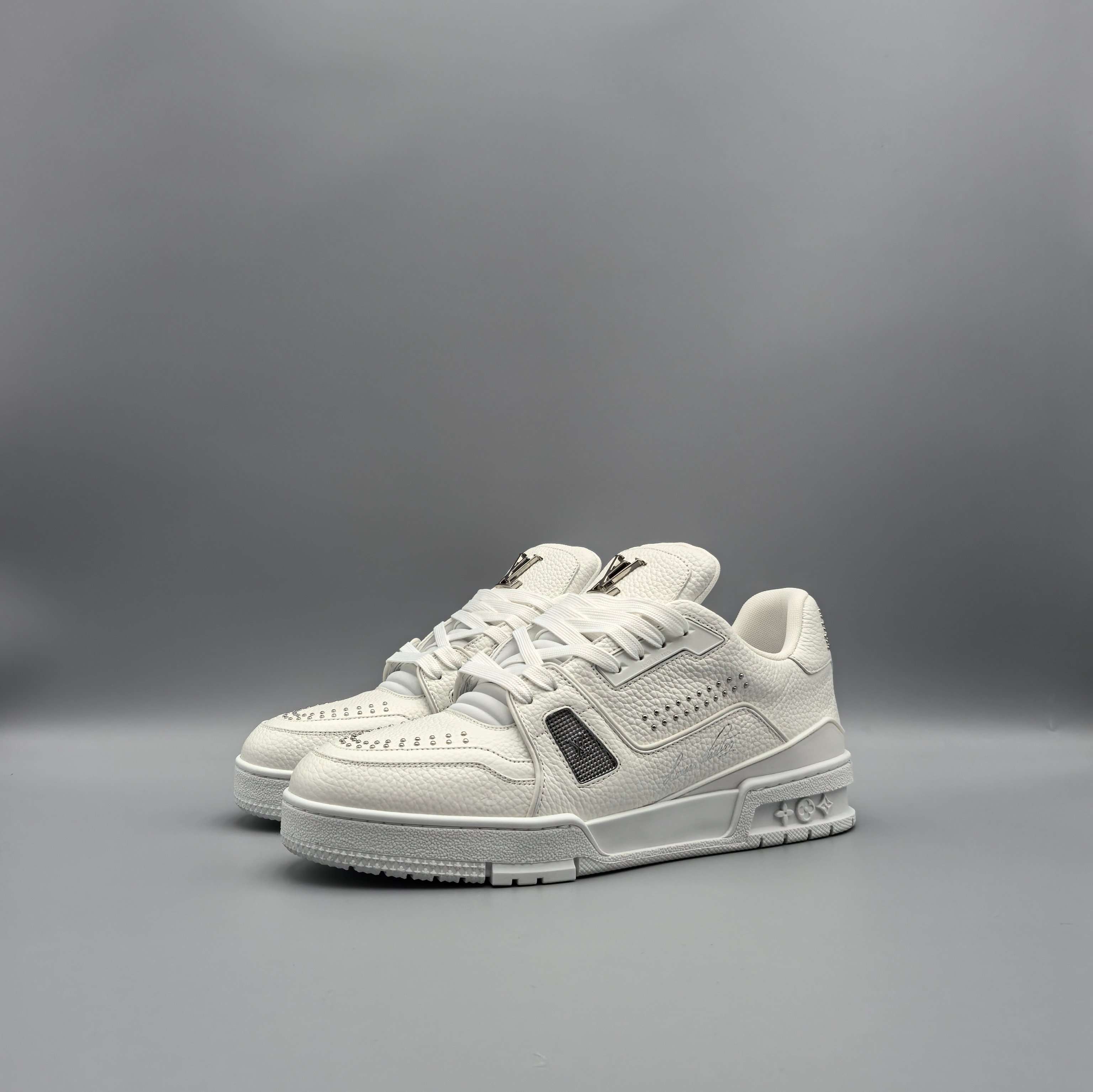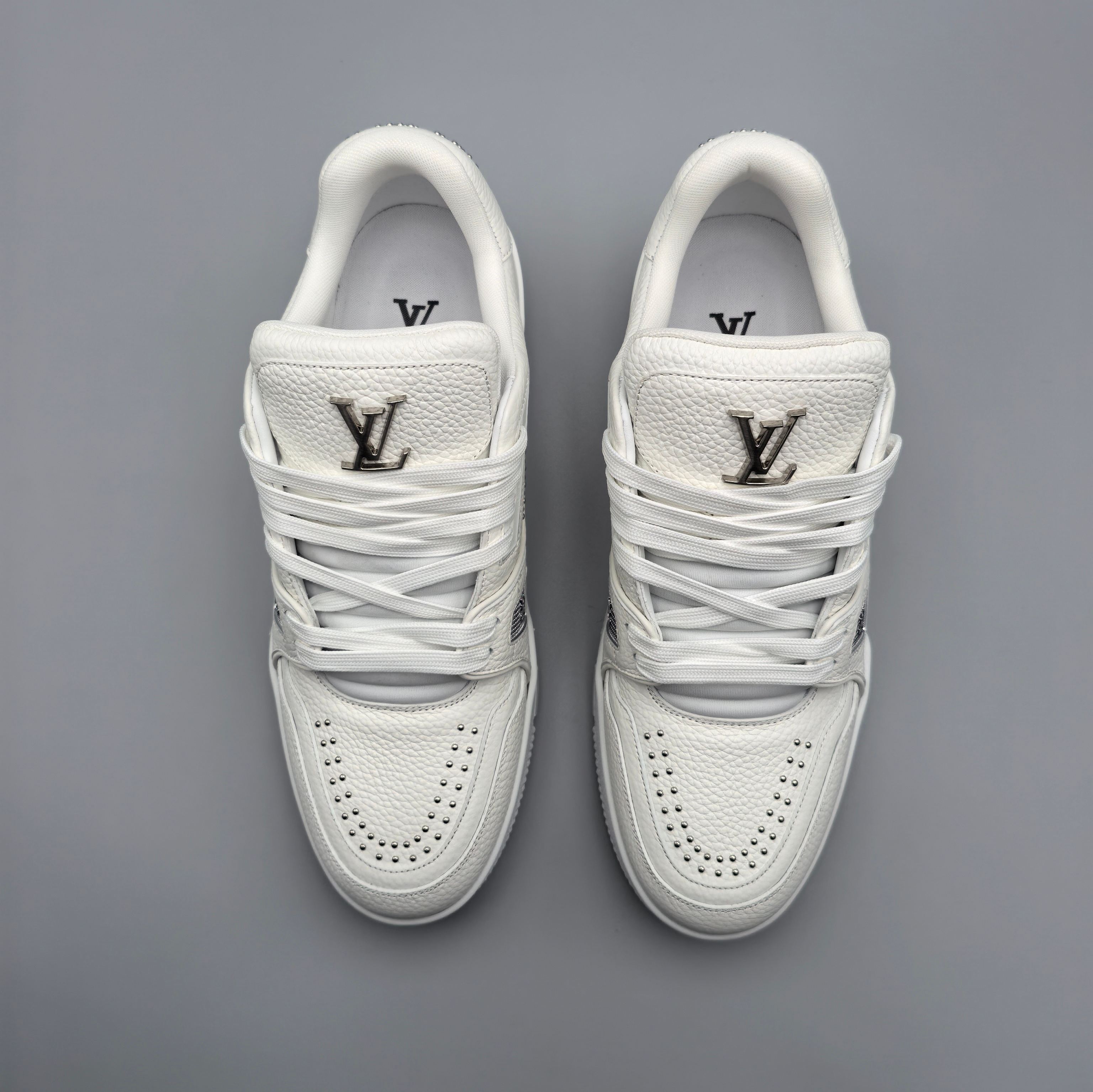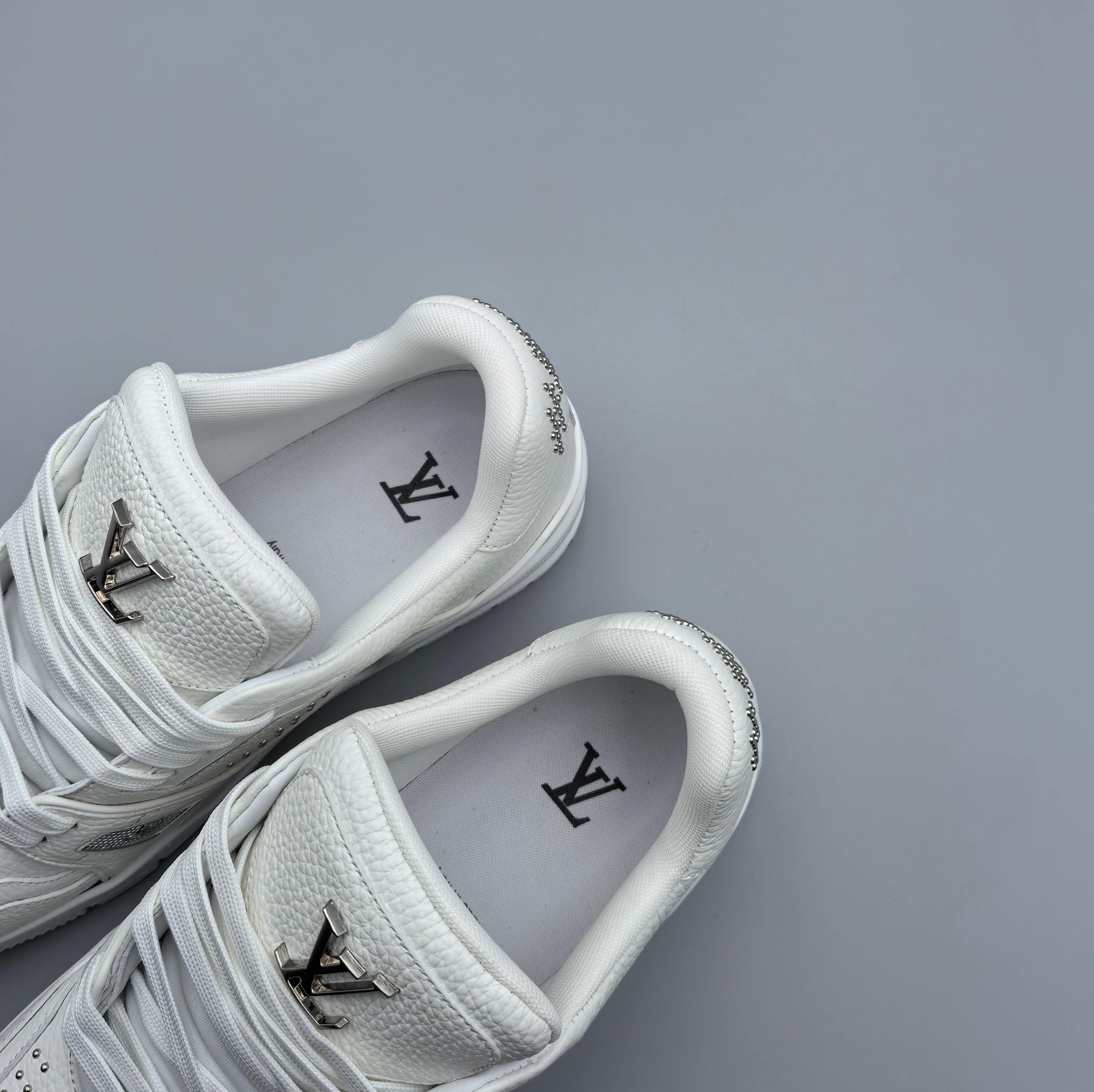 这款鞋子是AAAAA 1:1 质量 (非常棒). 使用了和原版一模一样的材料. 商标部分也保持了和路易威登/Louis Vuitton一样. 图片拍摄是实物鞋子拍摄, 您所收到的实物保证和我们图片一模一样.