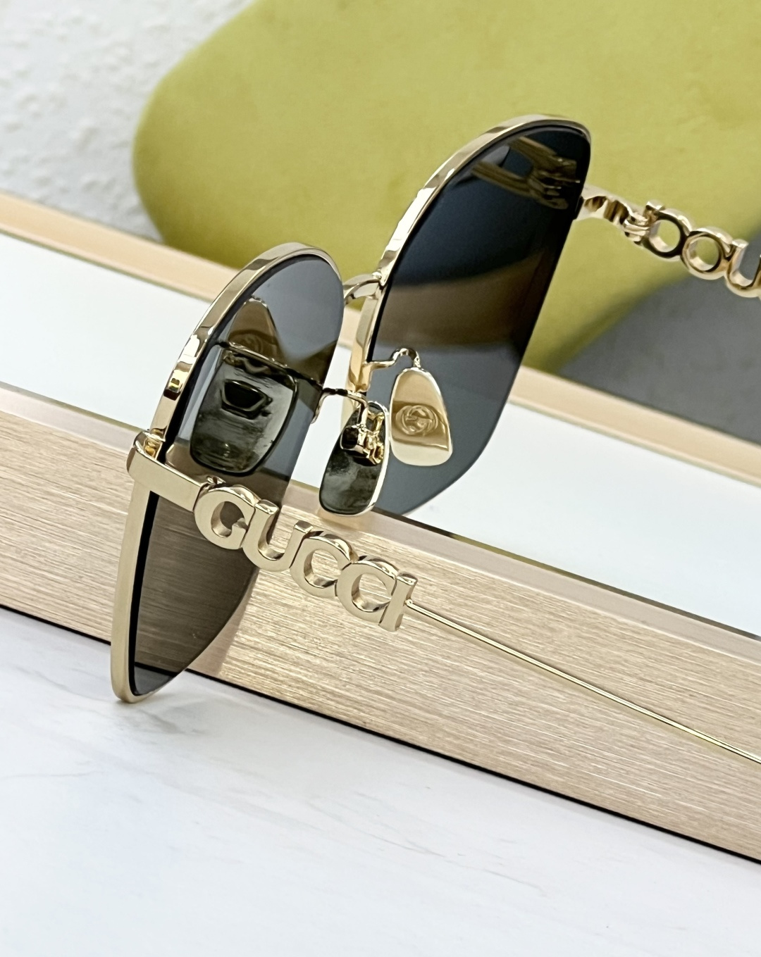 这款太阳眼镜是AAAAA 1:1 质量 (非常棒). 使用了和原版一模一样的材料. 商标部分也保持了和古奇/Gucci一样. 图片拍摄是实物太阳眼镜拍摄, 您所收到的实物保证和我们图片一模一样.