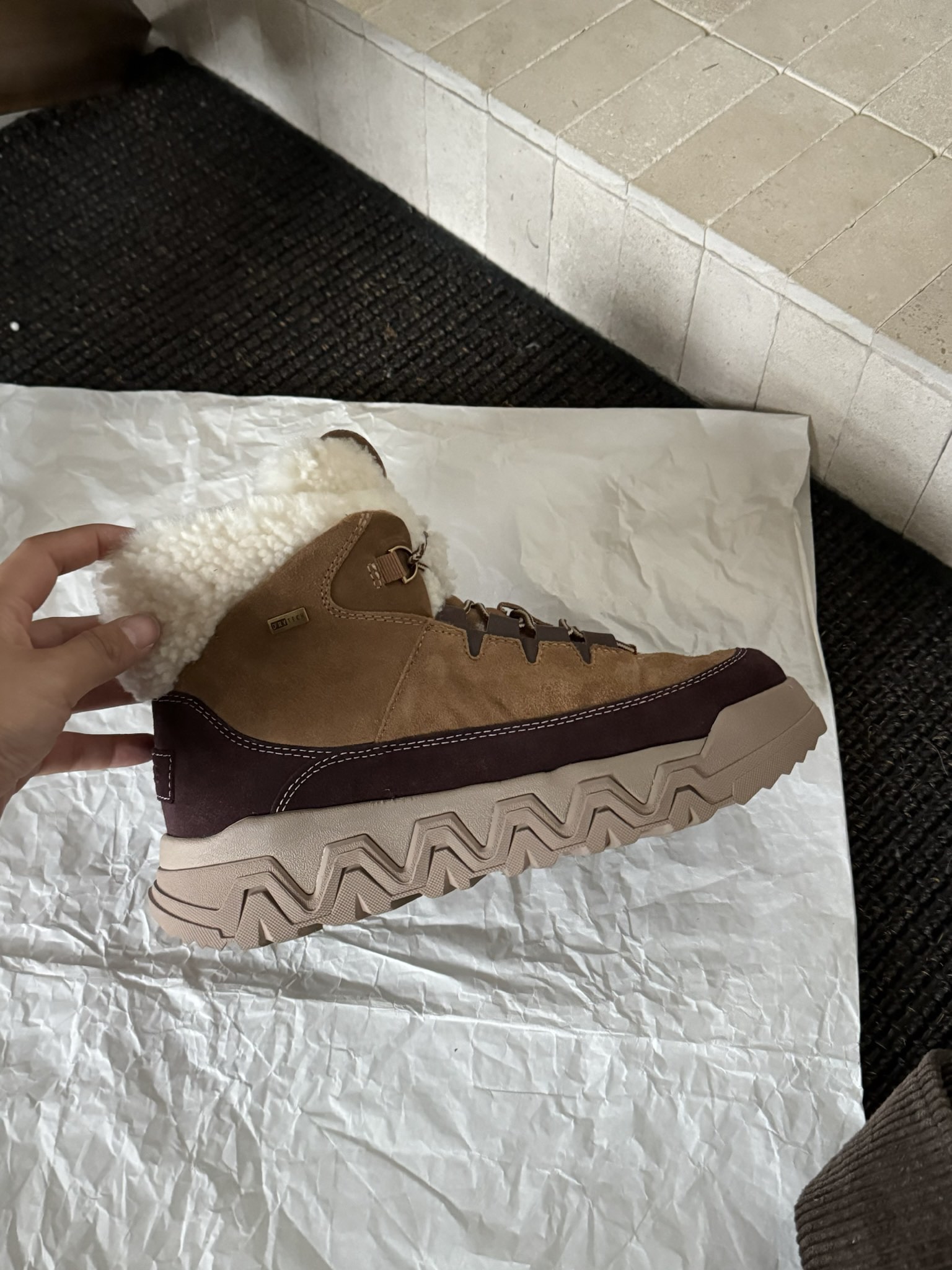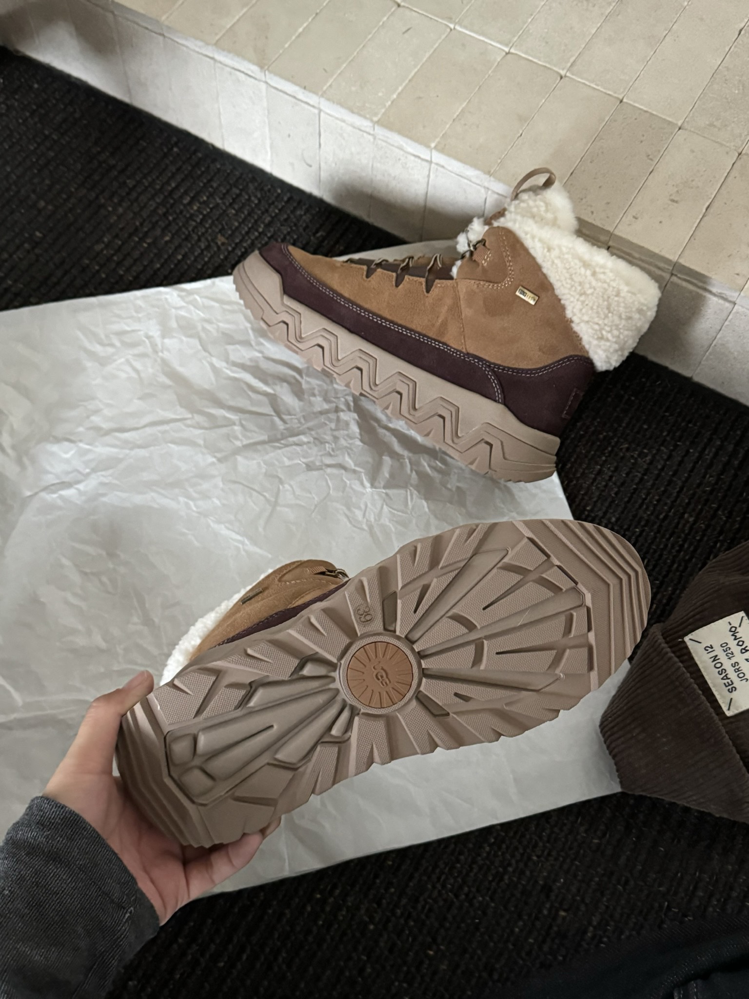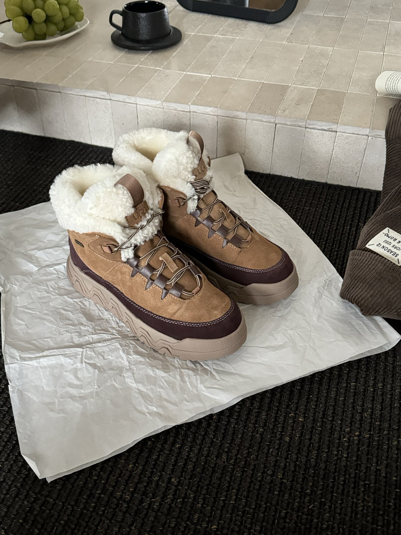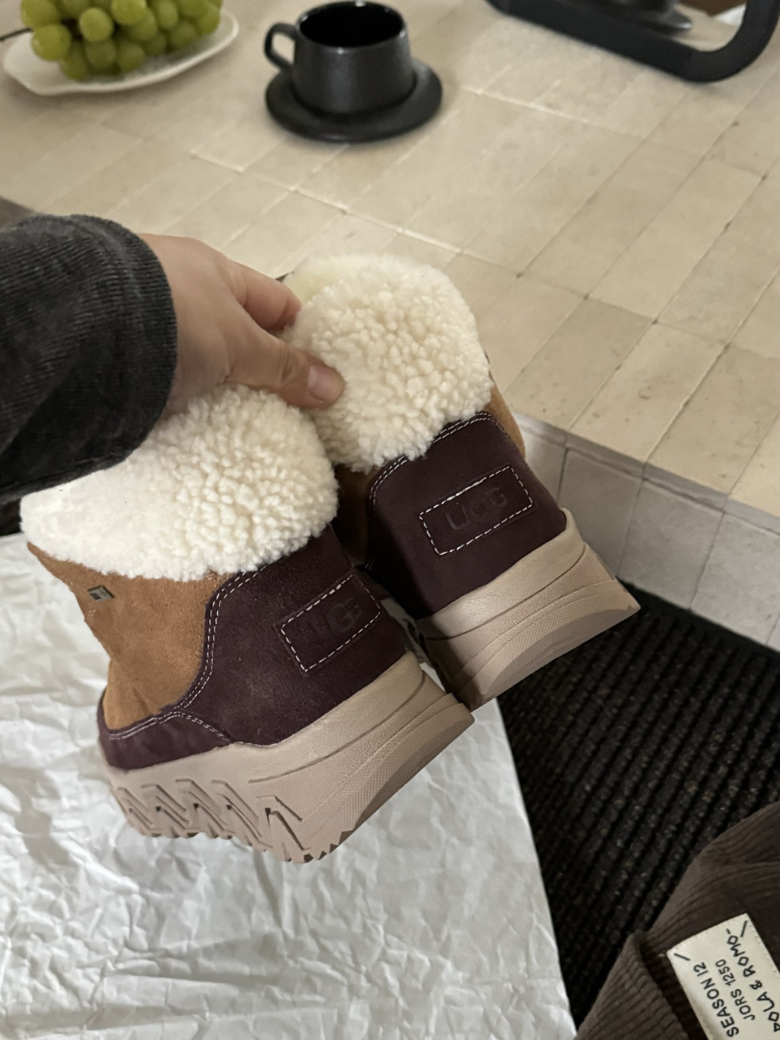 这款鞋子是AAAAA 1:1 质量 (非常棒). 使用了和原版一模一样的材料. 商标部分也保持了和UGG雪地靴一样. 图片拍摄是实物鞋子拍摄, 您所收到的实物保证和我们图片一模一样.
