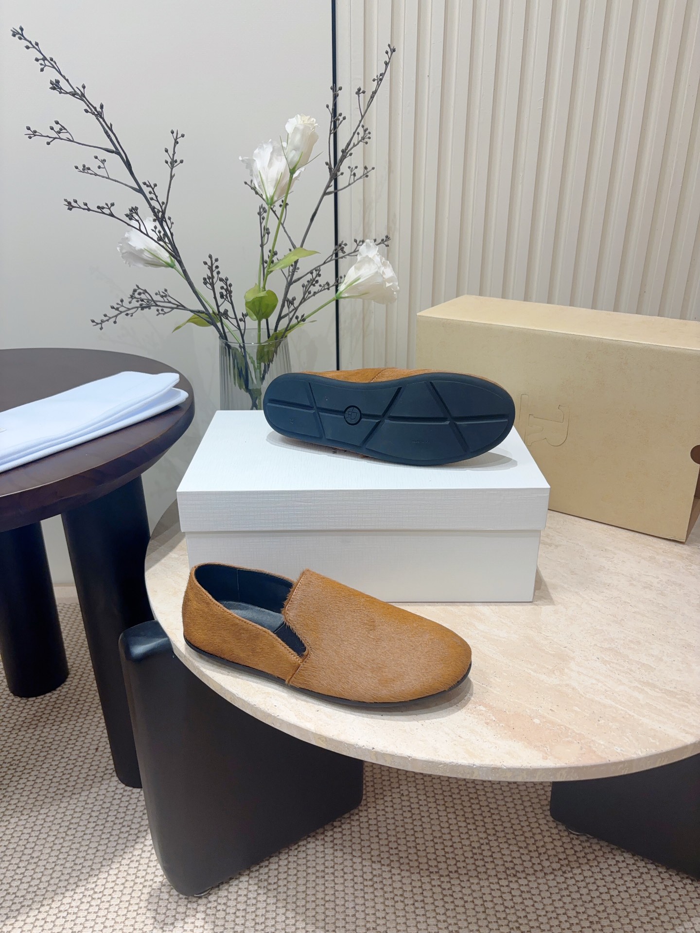 这款鞋子是AAAAA 1:1 质量 (非常棒). 使用了和原版一模一样的材料. 商标部分也保持了和The Row一样. 图片拍摄是实物鞋子拍摄, 您所收到的实物保证和我们图片一模一样.