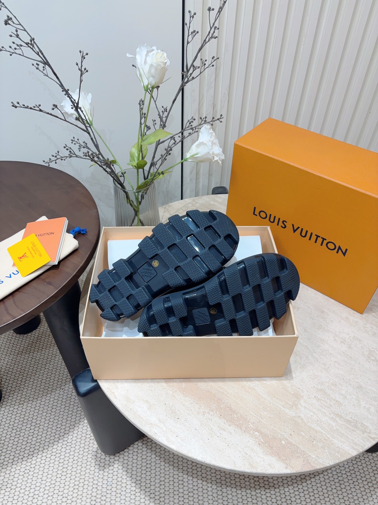 这款鞋子是AAAAA 1:1 质量 (非常棒). 使用了和原版一模一样的材料. 商标部分也保持了和路易威登/Louis Vuitton一样. 图片拍摄是实物鞋子拍摄, 您所收到的实物保证和我们图片一模一样.