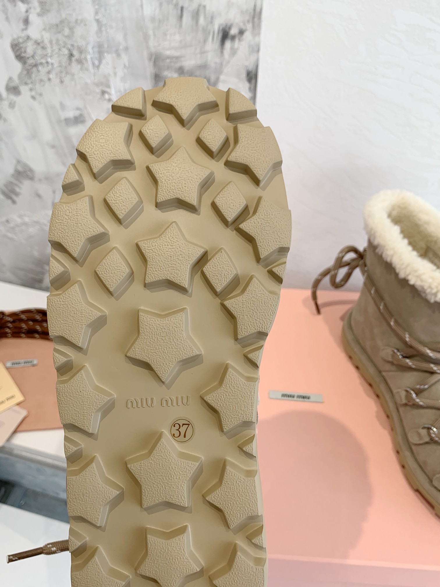 这款鞋子是AAAAA 1:1 质量 (非常棒). 使用了和原版一模一样的材料. 商标部分也保持了和缪缪/Miu Miu一样. 图片拍摄是实物鞋子拍摄, 您所收到的实物保证和我们图片一模一样.