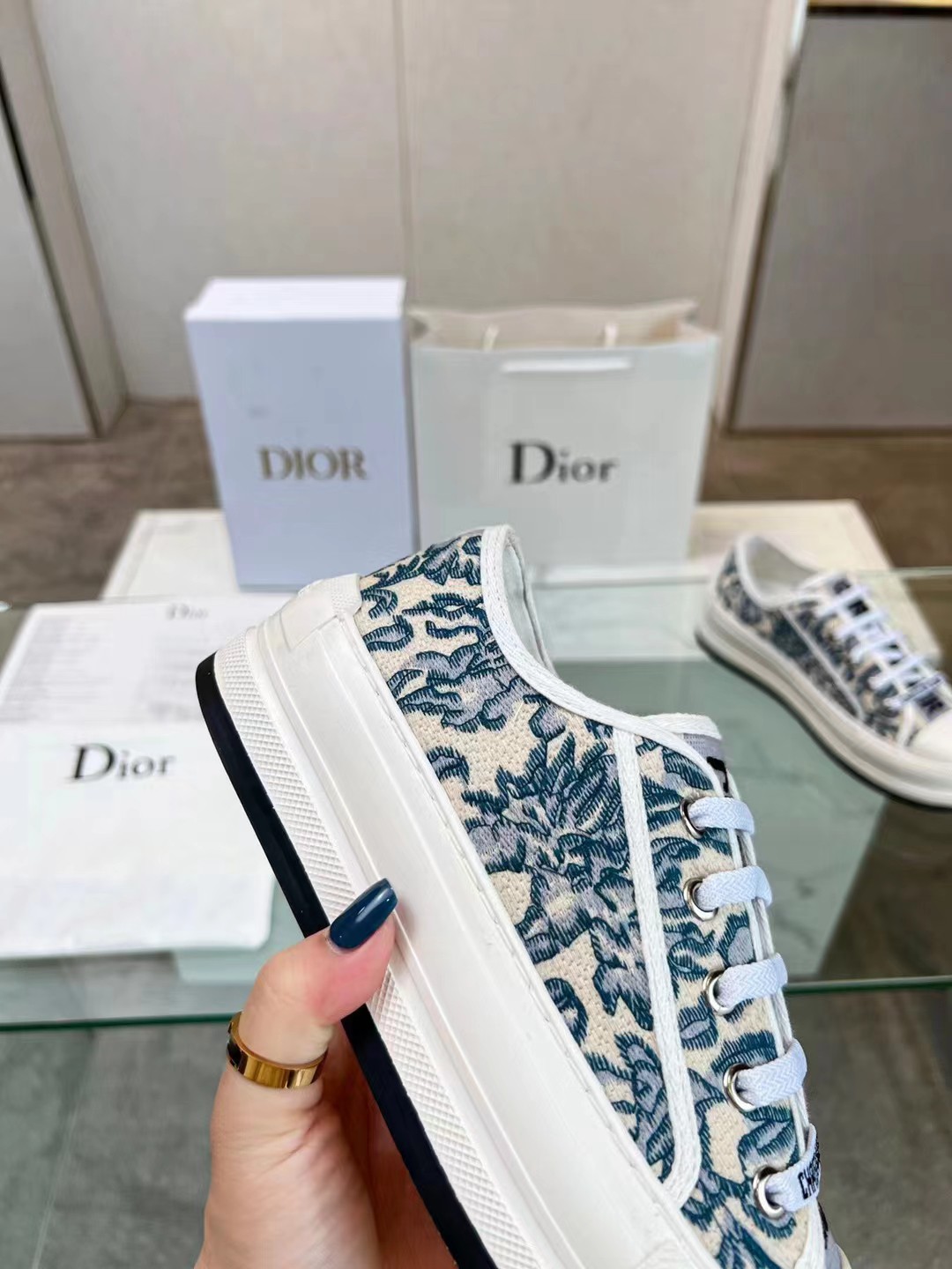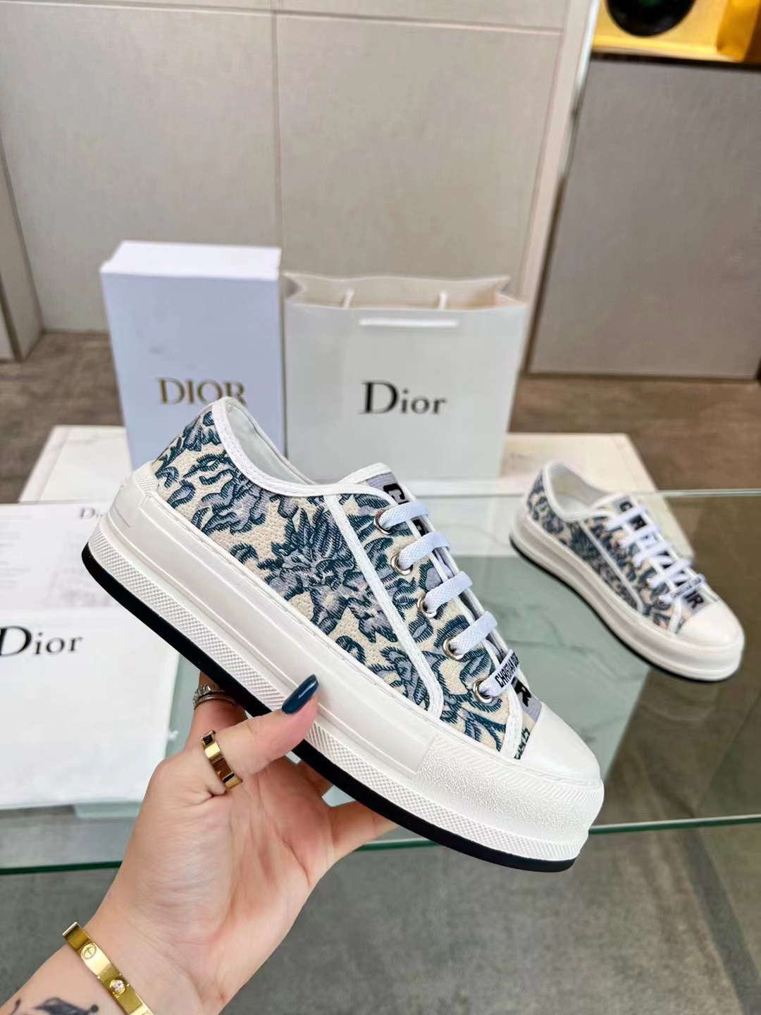 这款鞋子是AAAAA 1:1 质量 (非常棒). 使用了和原版一模一样的材料. 商标部分也保持了和迪奥/Dior一样. 图片拍摄是实物鞋子拍摄, 您所收到的实物保证和我们图片一模一样.