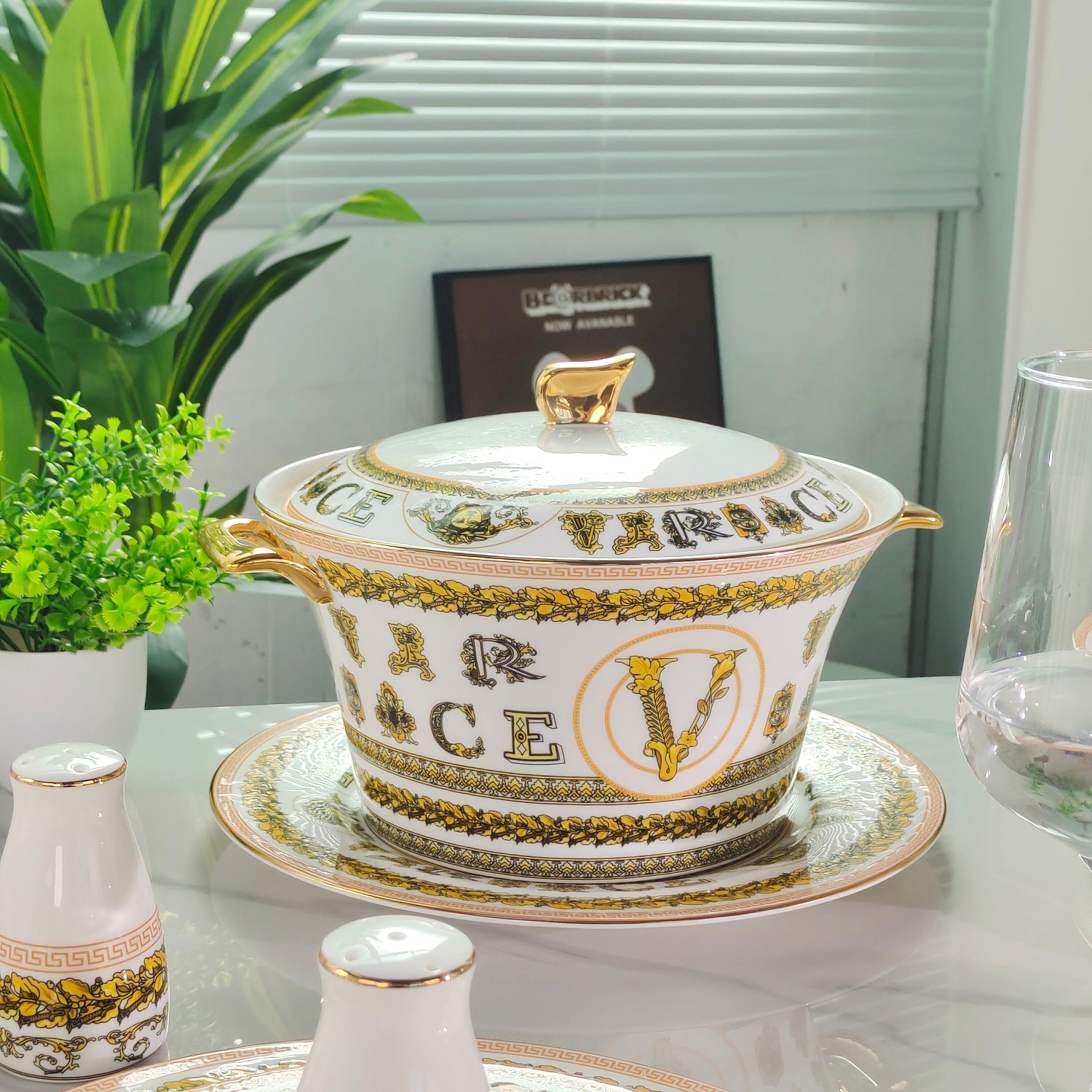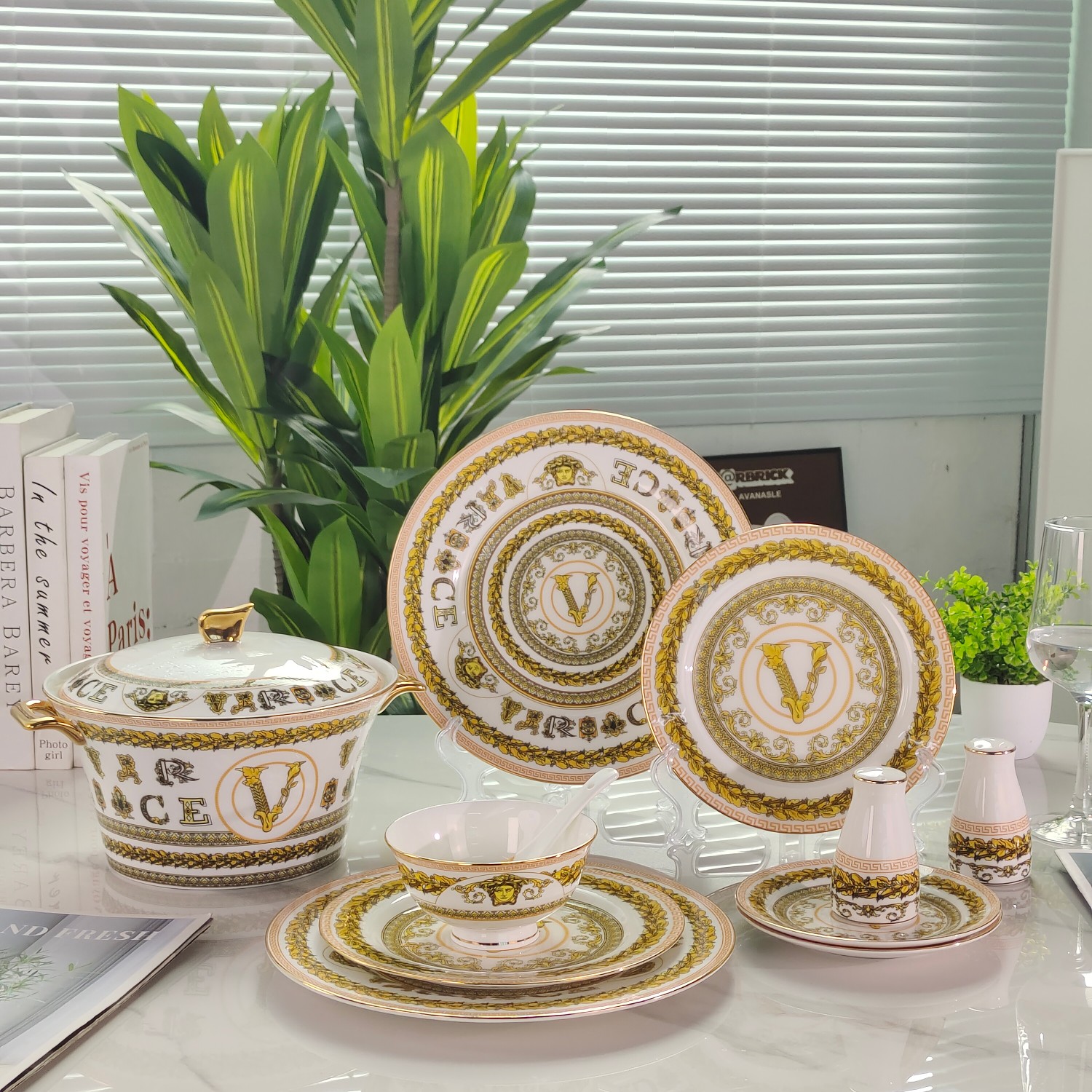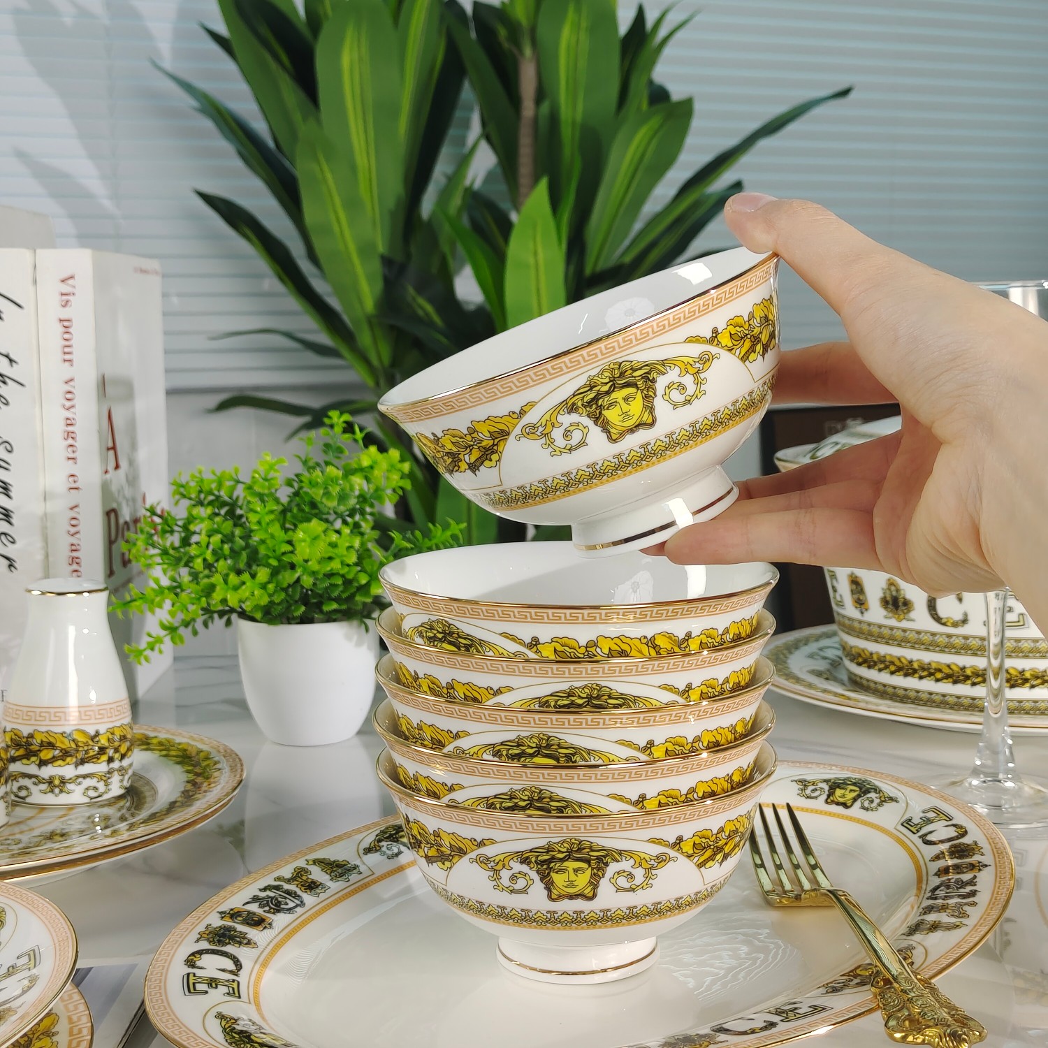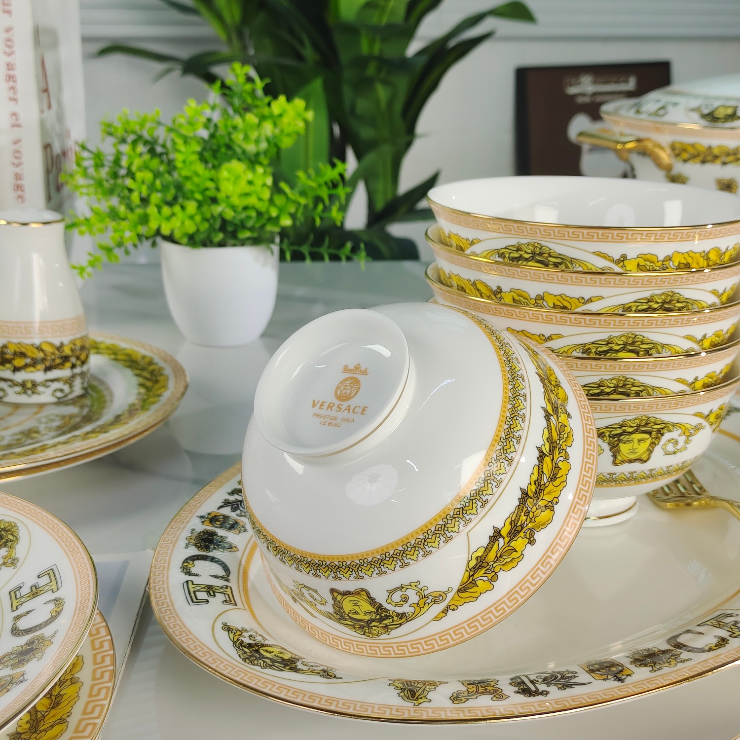 这款bone china tableware sets是AAAAA 1:1 质量 (非常棒). 使用了和原版一模一样的材料. 商标部分也保持了和范思哲/Versace一样. 图片拍摄是实物bone china tableware sets拍摄, 您所收到的实物保证和我们图片一模一样.