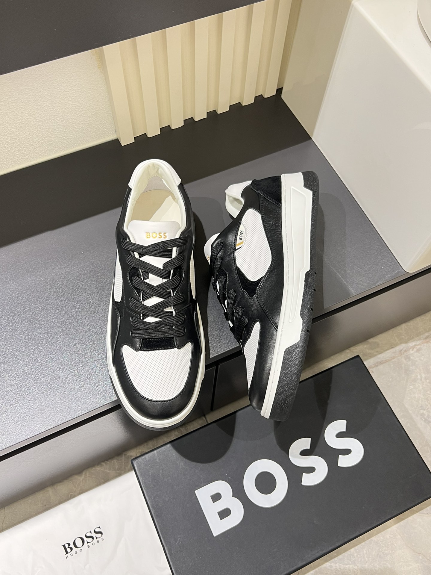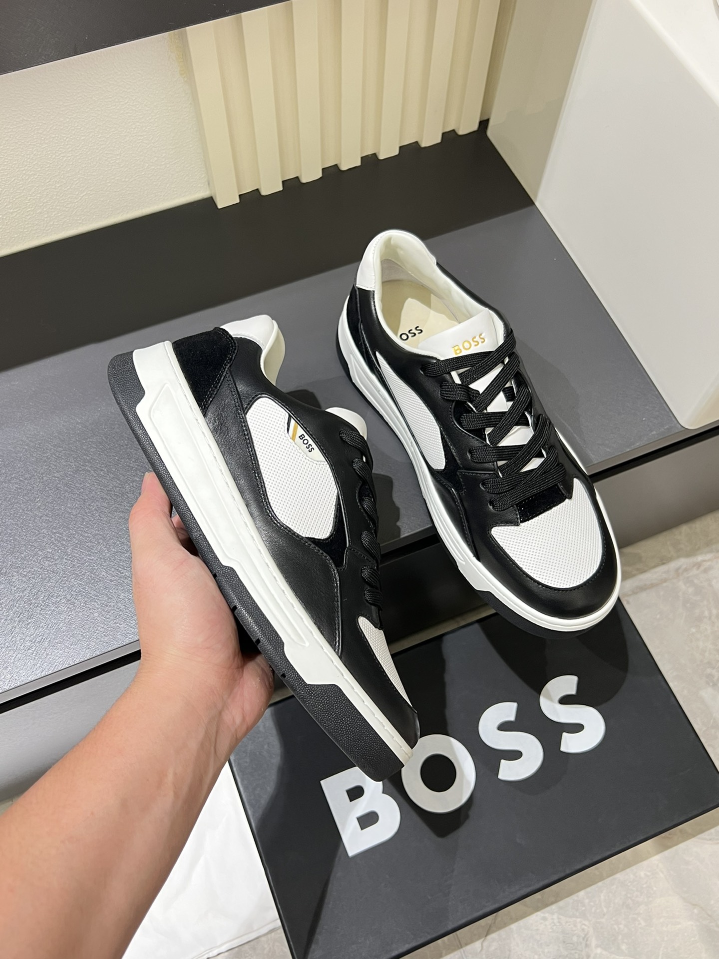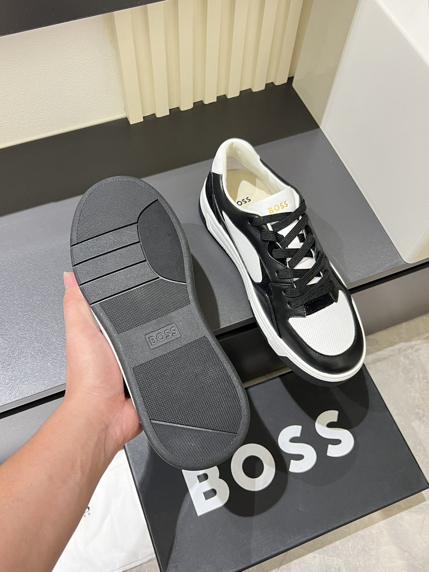 这款鞋子是AAAAA 1:1 质量 (非常棒). 使用了和原版一模一样的材料. 商标部分也保持了和BOSS一样. 图片拍摄是实物鞋子拍摄, 您所收到的实物保证和我们图片一模一样.
