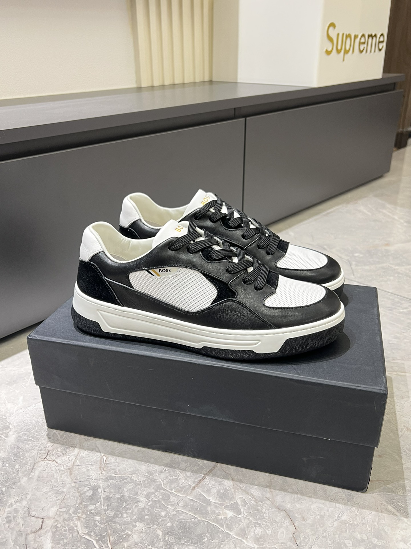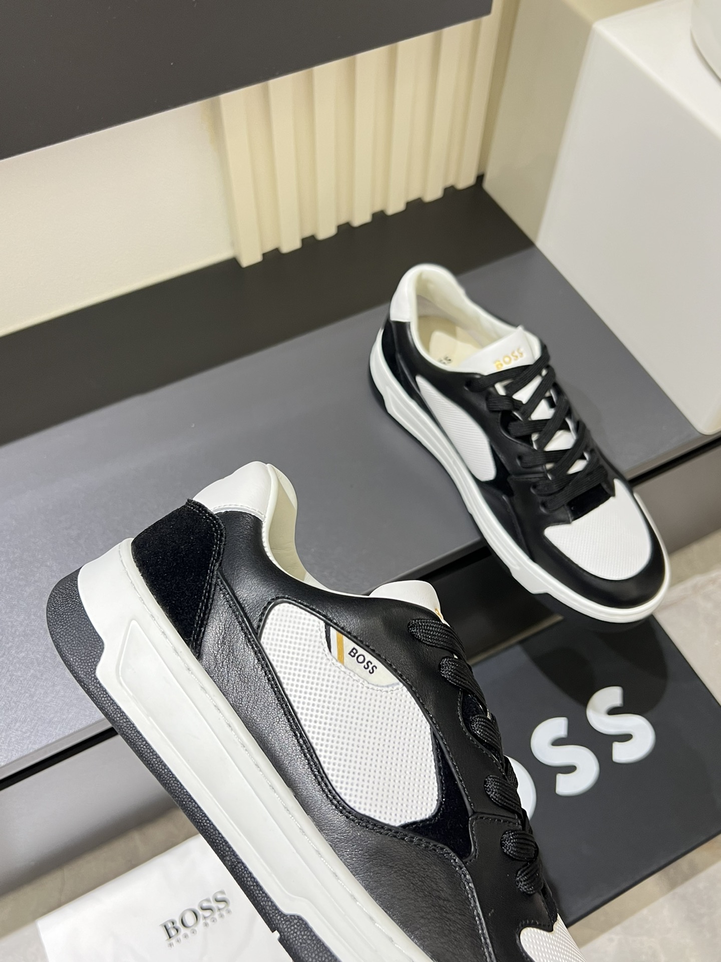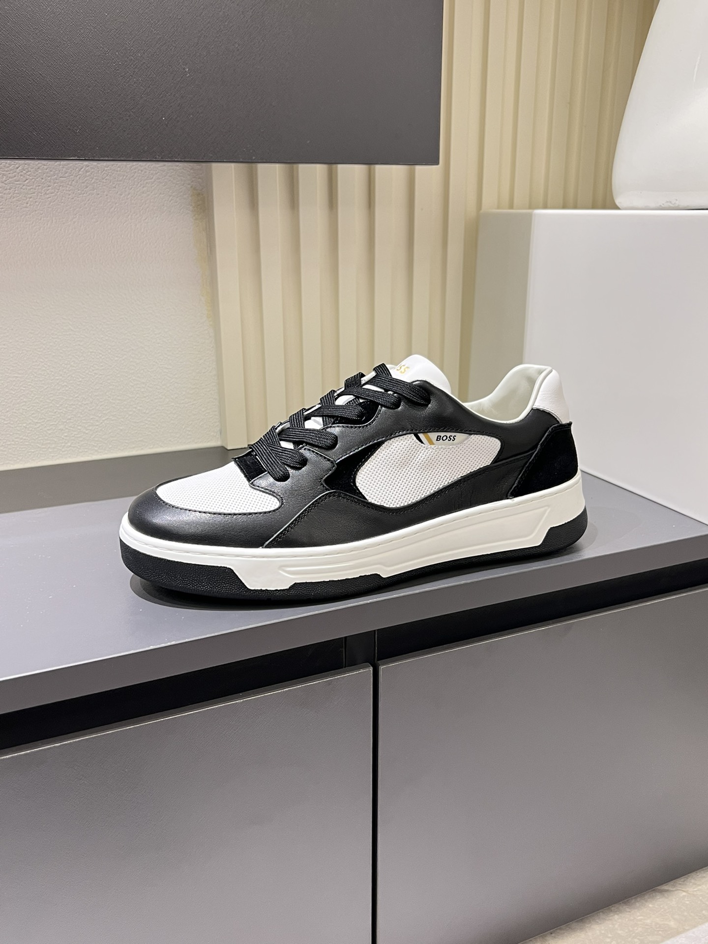 这款鞋子是AAAAA 1:1 质量 (非常棒). 使用了和原版一模一样的材料. 商标部分也保持了和BOSS一样. 图片拍摄是实物鞋子拍摄, 您所收到的实物保证和我们图片一模一样.