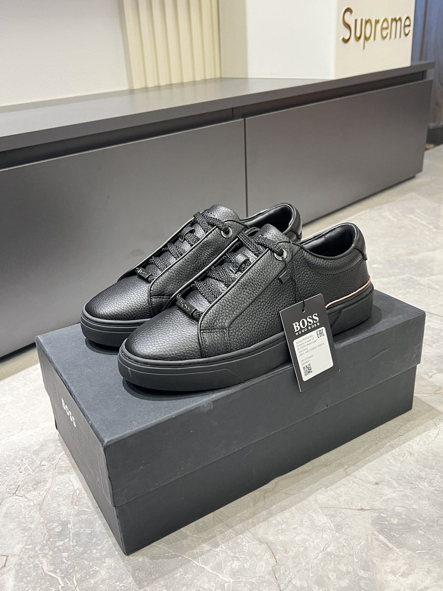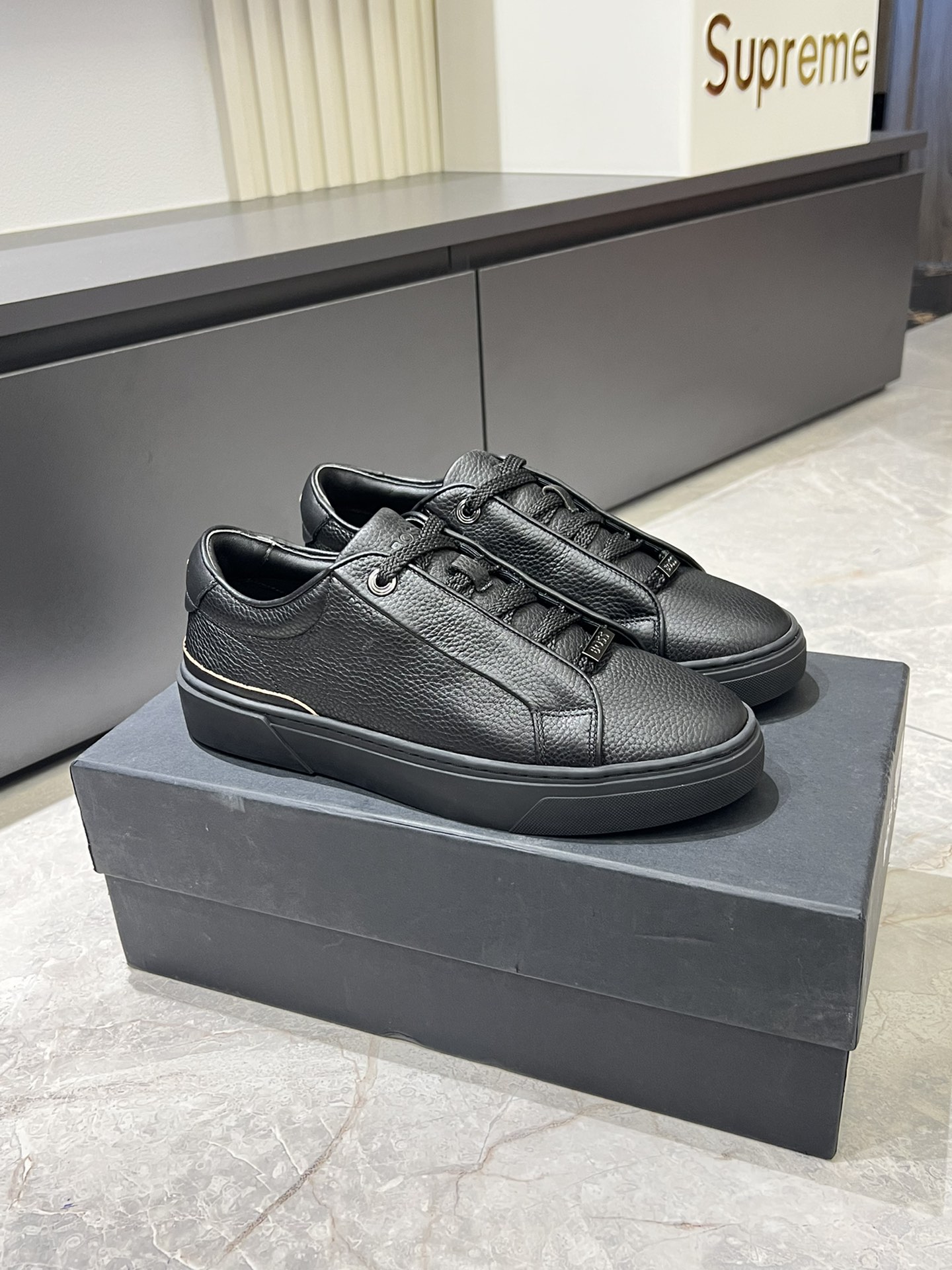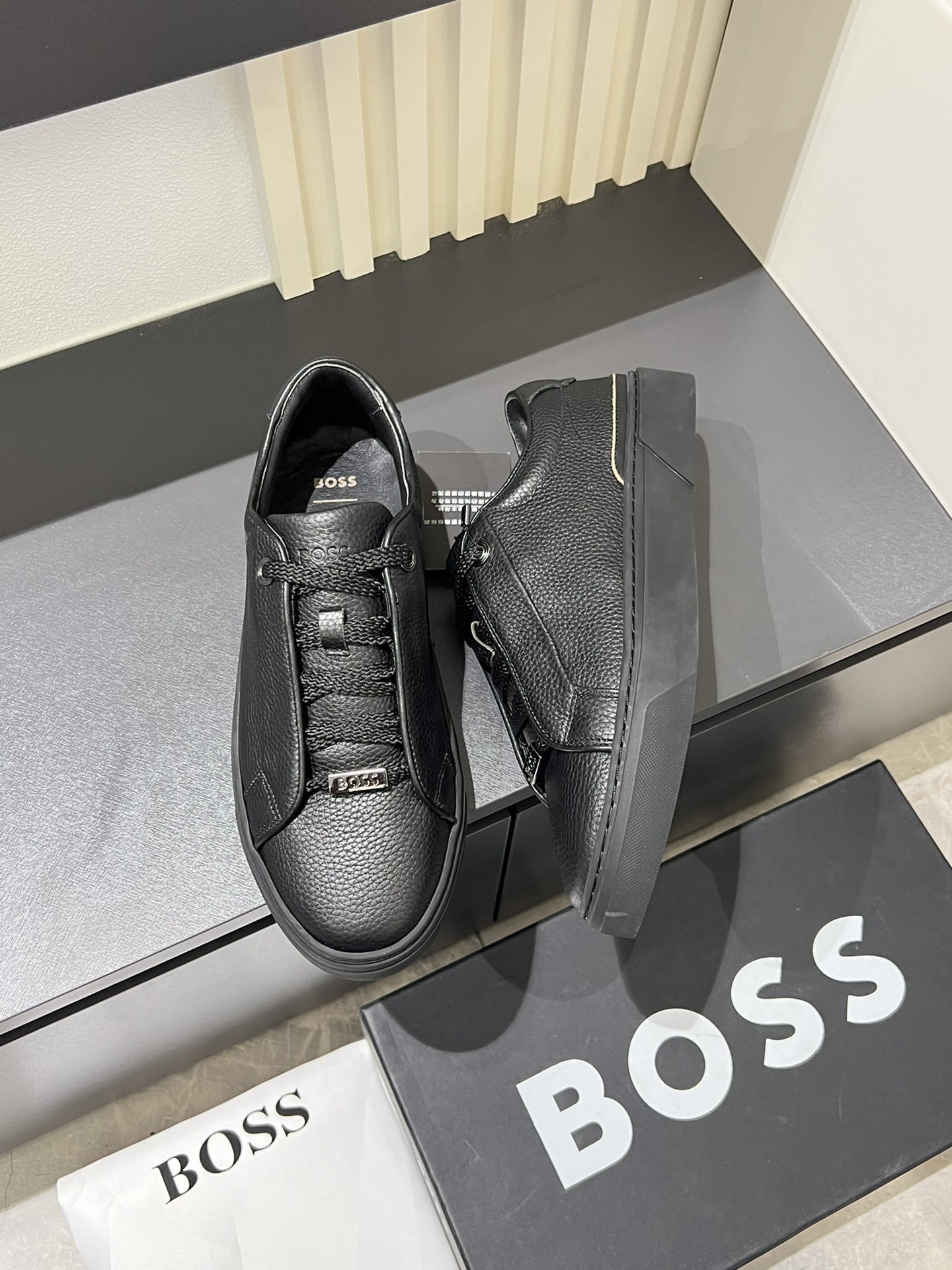 这款鞋子是AAAAA 1:1 质量 (非常棒). 使用了和原版一模一样的材料. 商标部分也保持了和BOSS一样. 图片拍摄是实物鞋子拍摄, 您所收到的实物保证和我们图片一模一样.