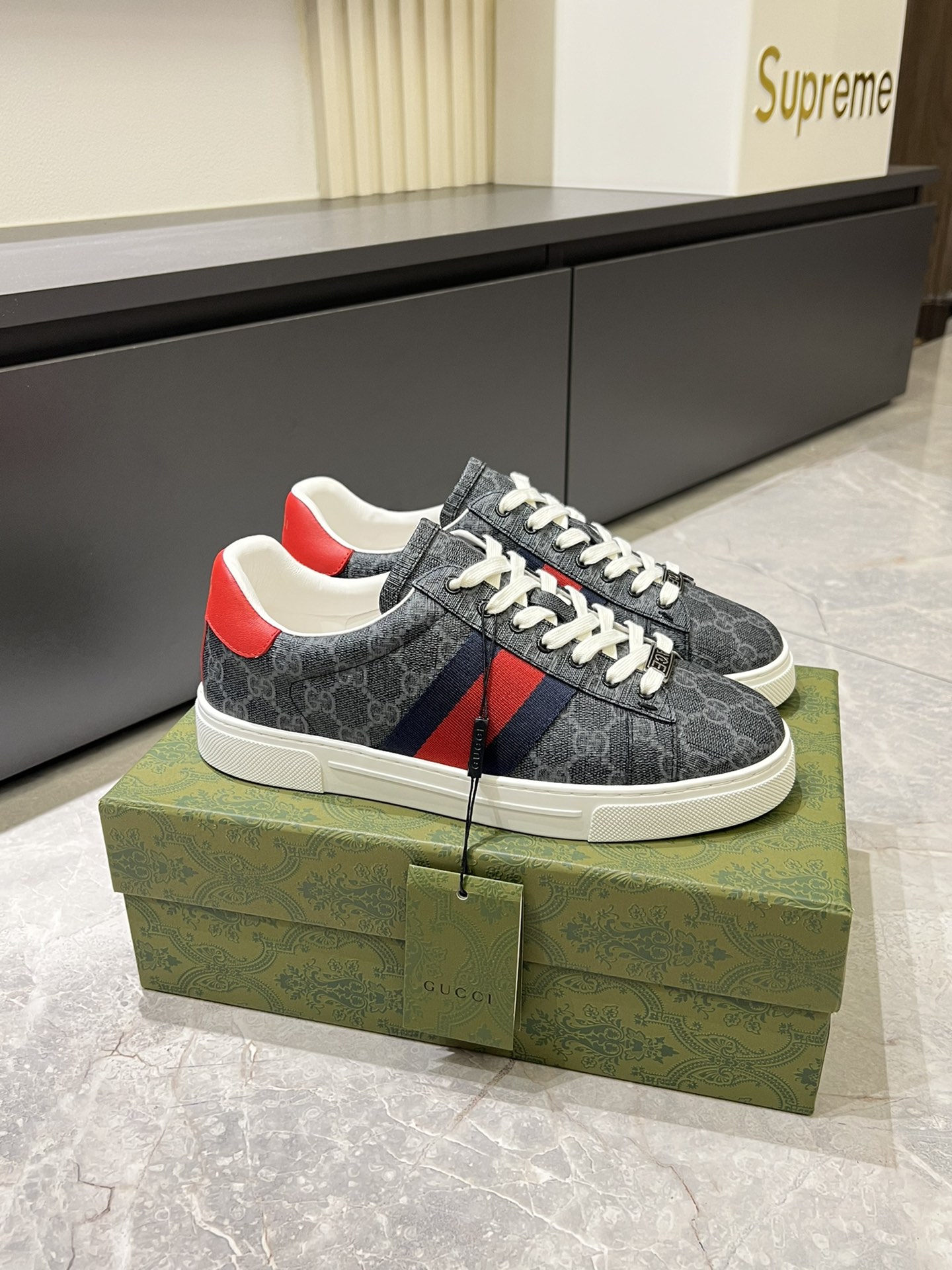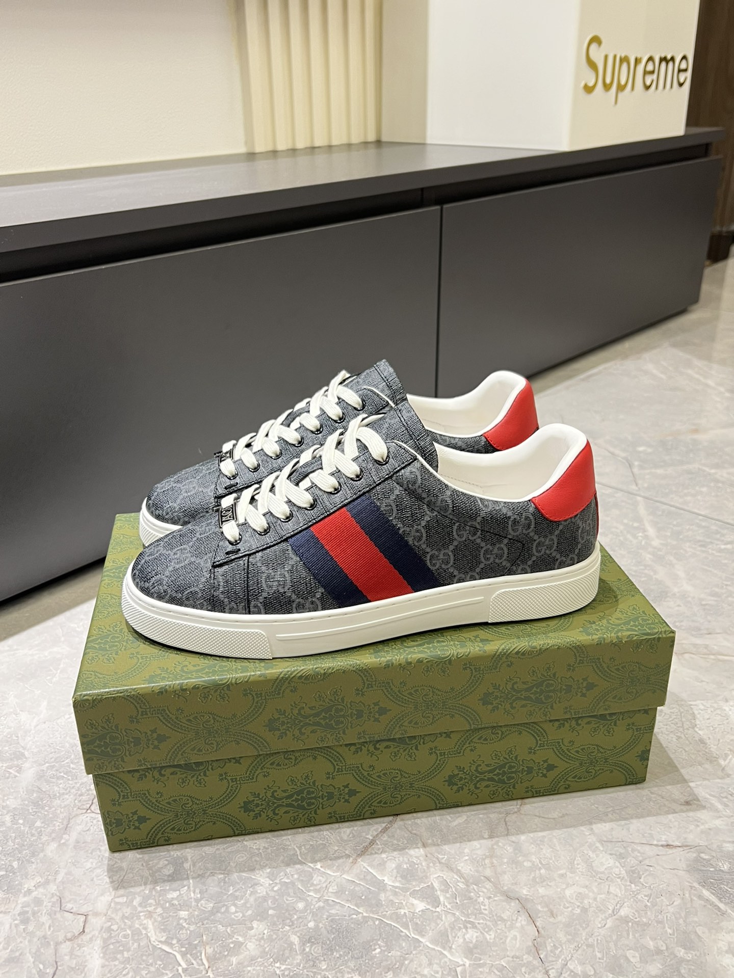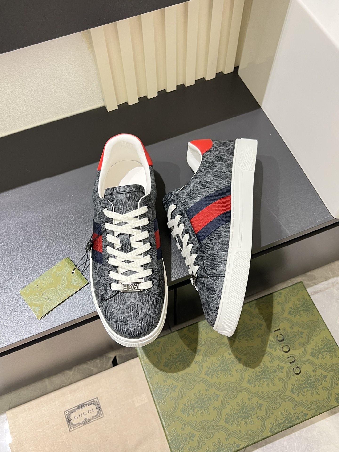 这款鞋子是AAAAA 1:1 质量 (非常棒). 使用了和原版一模一样的材料. 商标部分也保持了和古奇/Gucci一样. 图片拍摄是实物鞋子拍摄, 您所收到的实物保证和我们图片一模一样.