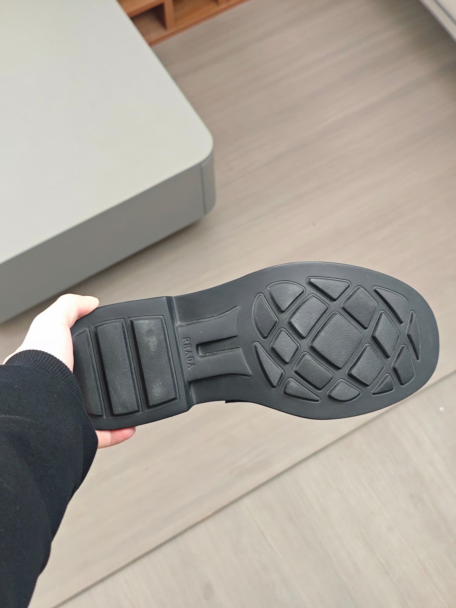 这款鞋子是AAAAA 1:1 质量 (非常棒). 使用了和原版一模一样的材料. 商标部分也保持了和普拉达/Prada一样. 图片拍摄是实物鞋子拍摄, 您所收到的实物保证和我们图片一模一样.