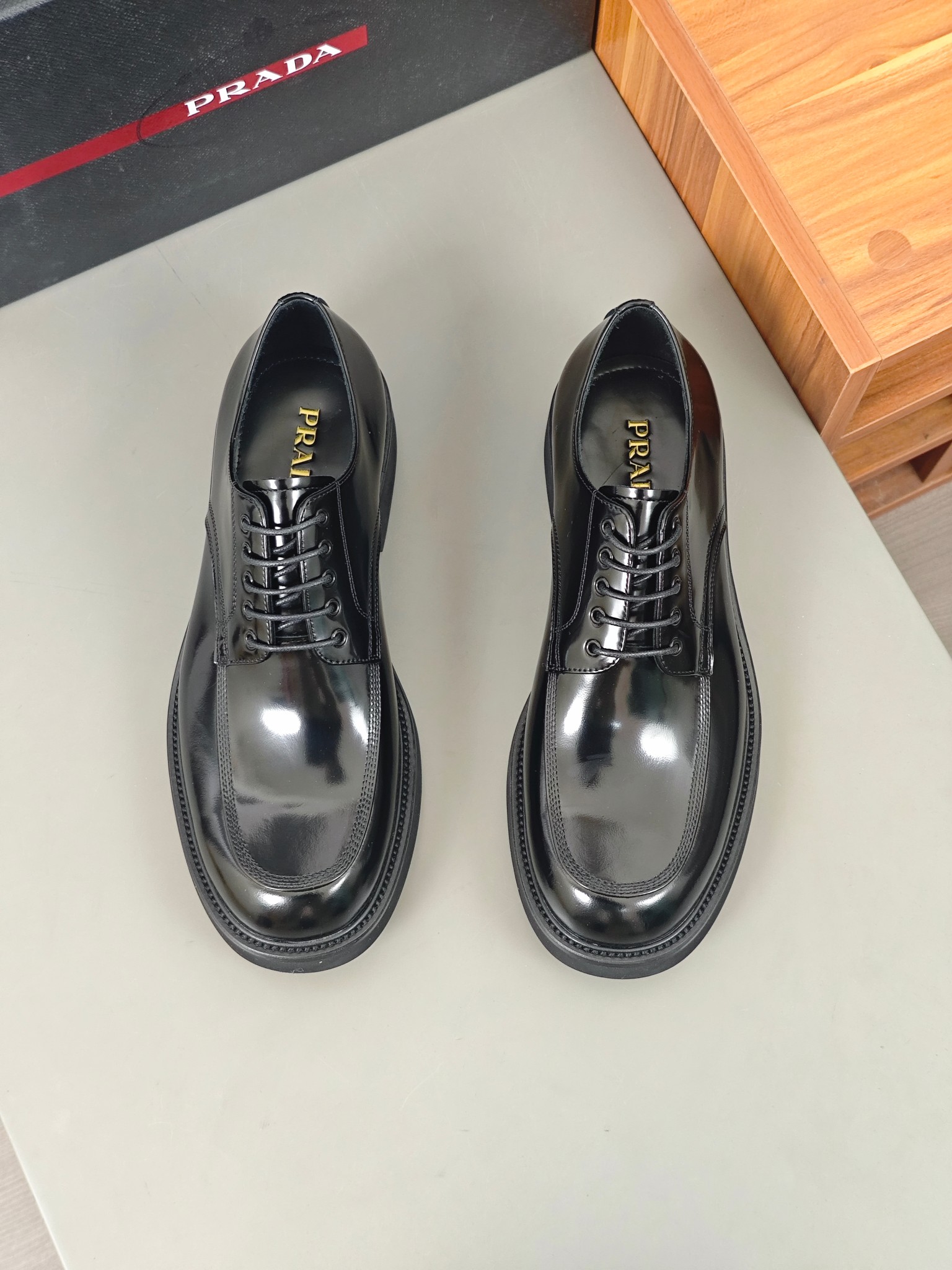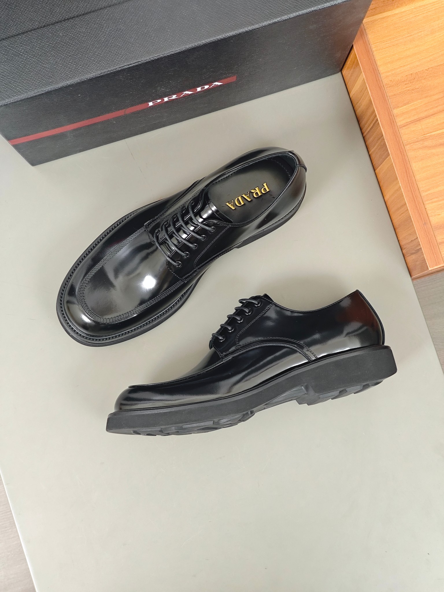 这款鞋子是AAAAA 1:1 质量 (非常棒). 使用了和原版一模一样的材料. 商标部分也保持了和普拉达/Prada一样. 图片拍摄是实物鞋子拍摄, 您所收到的实物保证和我们图片一模一样.