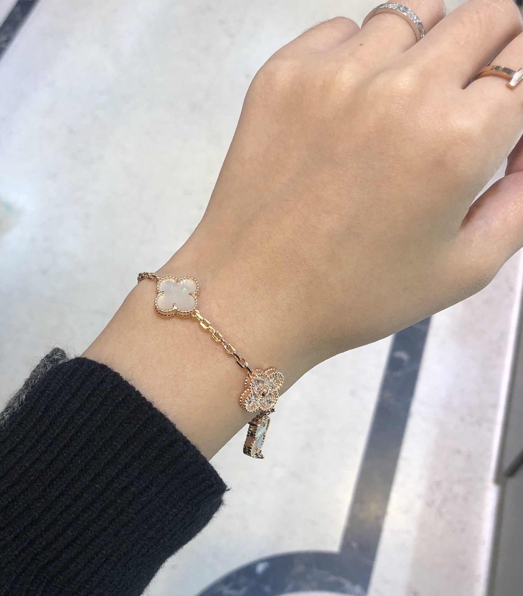这款首饰是AAAAA 1:1 质量 (非常棒). 使用了和原版一模一样的材料. 商标部分也保持了和梵克雅宝/Van Cleef & Arpels一样. 图片拍摄是实物首饰拍摄, 您所收到的实物保证和我们图片一模一样.