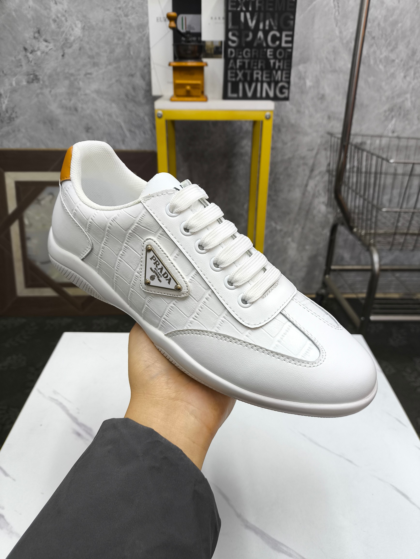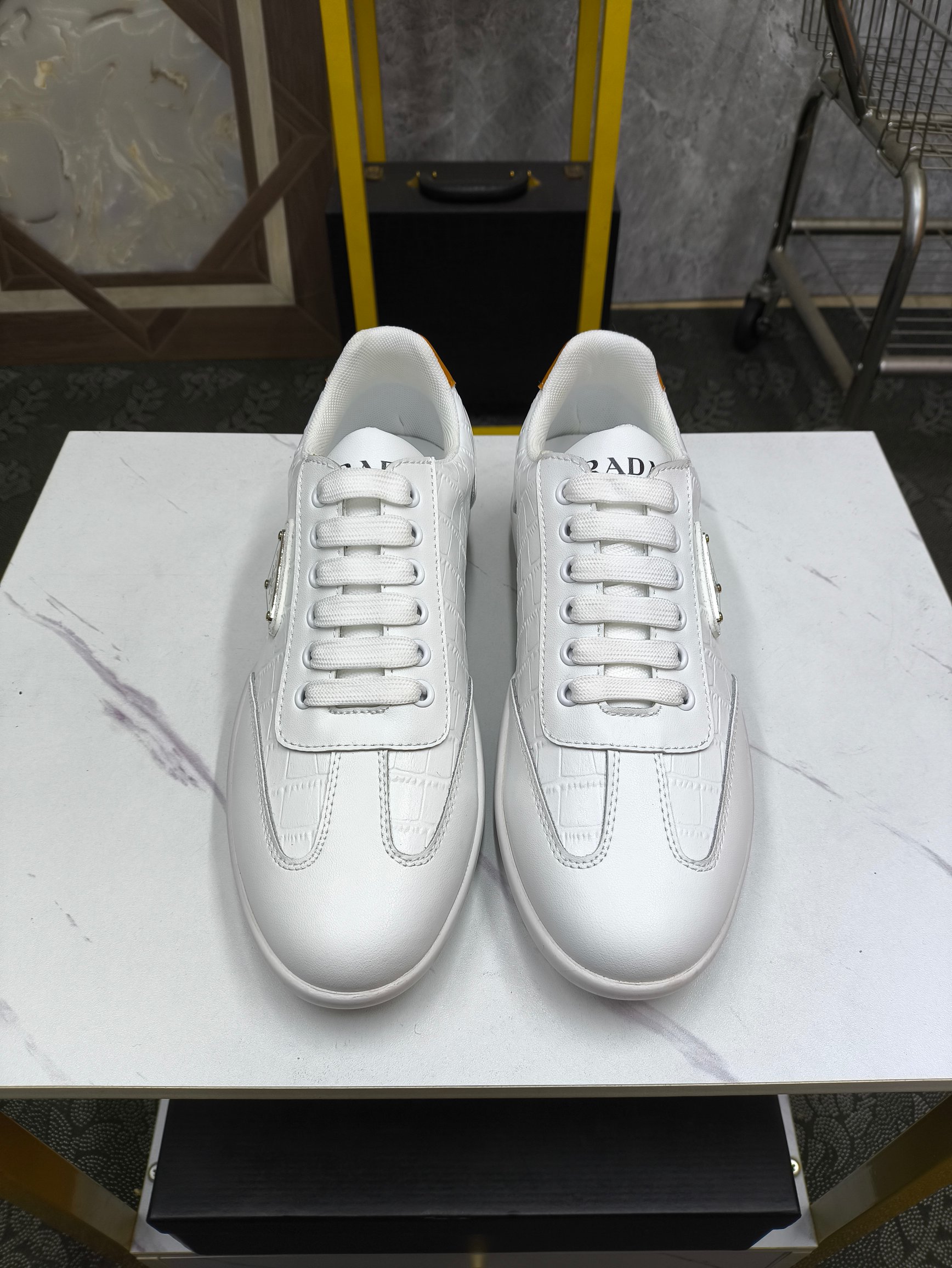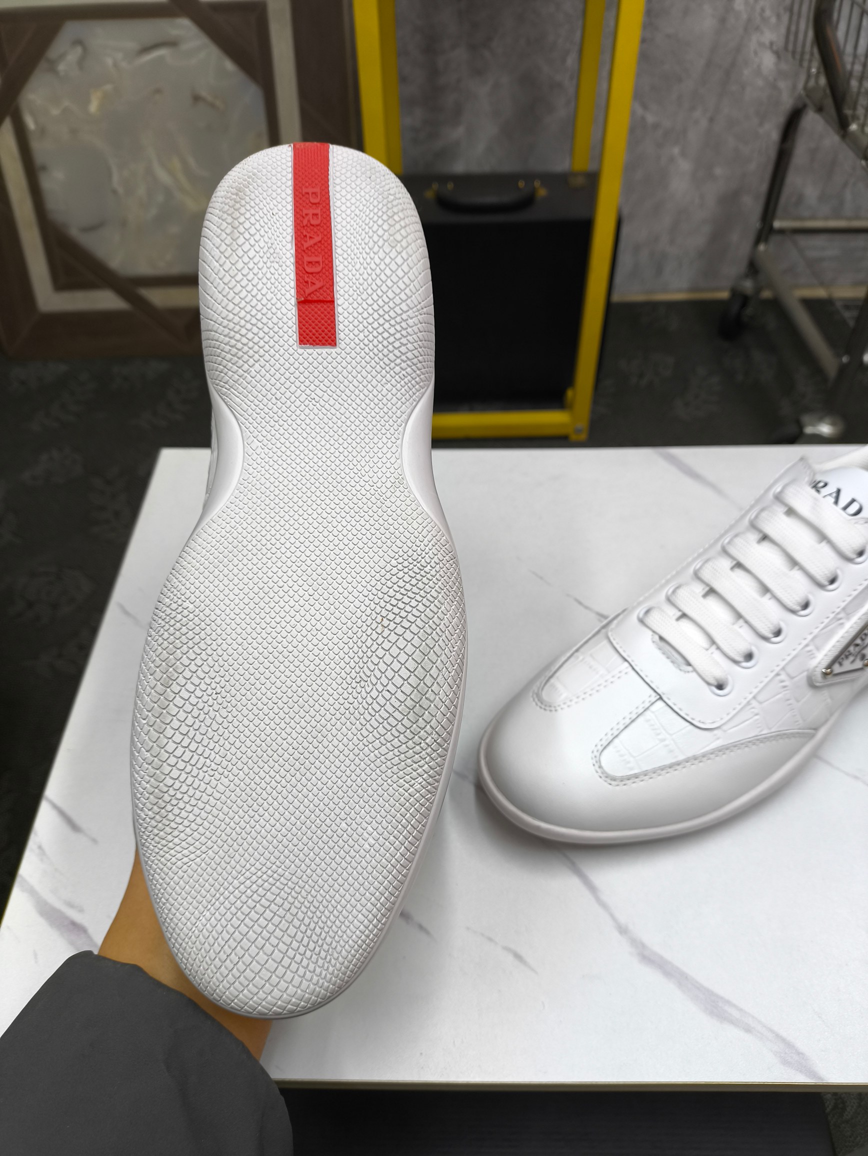 这款鞋子是AAAAA 1:1 质量 (非常棒). 使用了和原版一模一样的材料. 商标部分也保持了和普拉达/Prada一样. 图片拍摄是实物鞋子拍摄, 您所收到的实物保证和我们图片一模一样.