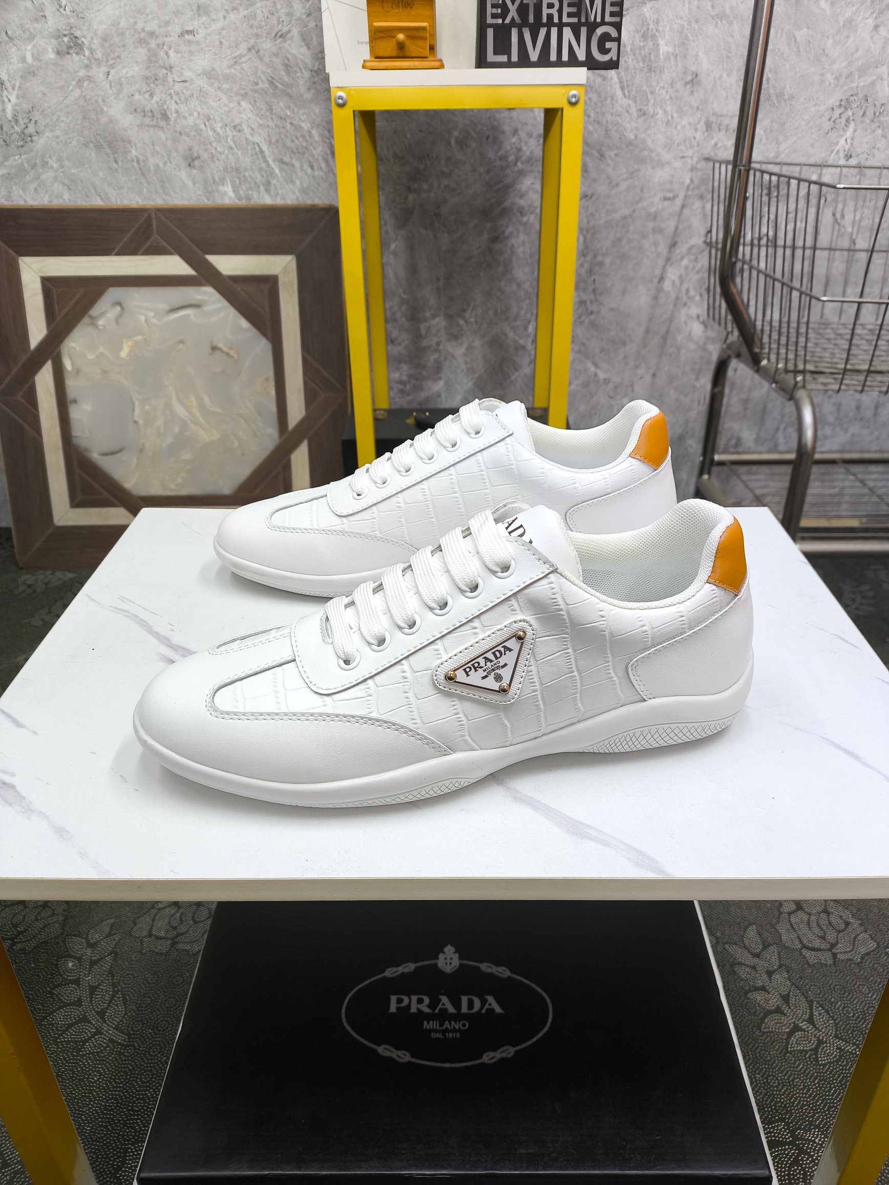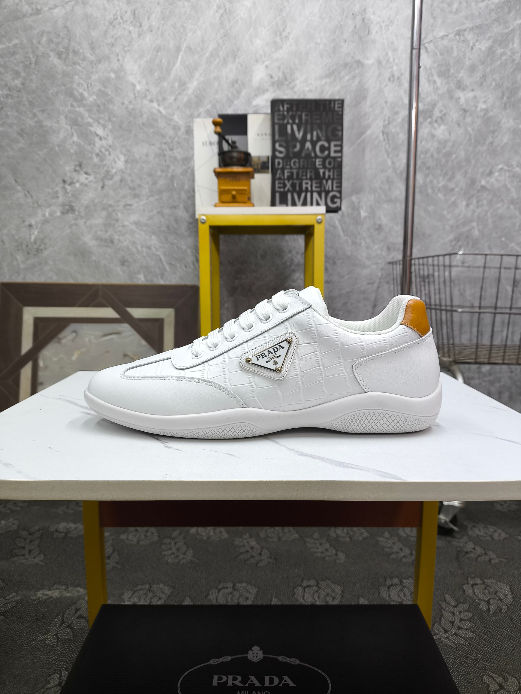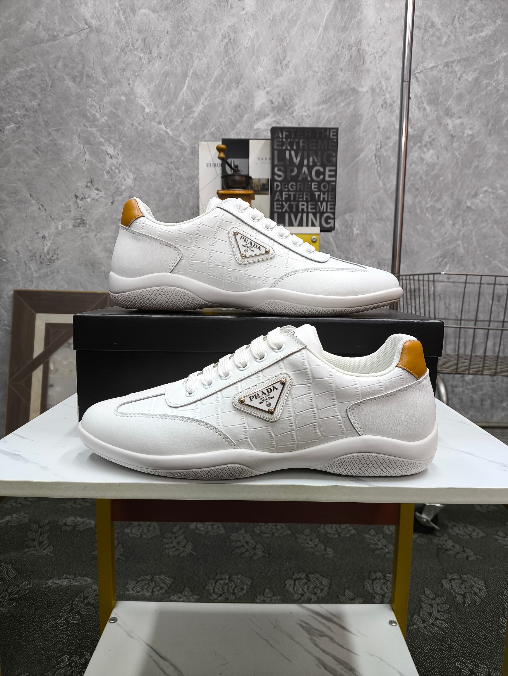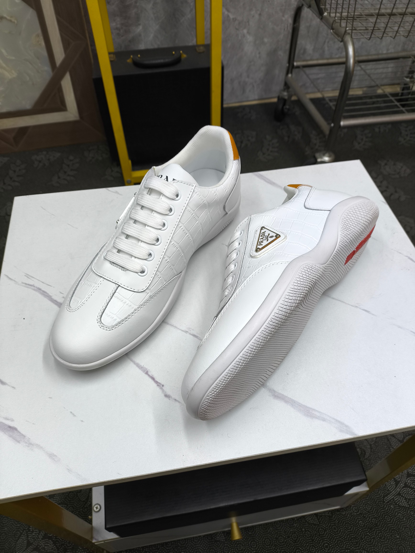 这款鞋子是AAAAA 1:1 质量 (非常棒). 使用了和原版一模一样的材料. 商标部分也保持了和普拉达/Prada一样. 图片拍摄是实物鞋子拍摄, 您所收到的实物保证和我们图片一模一样.