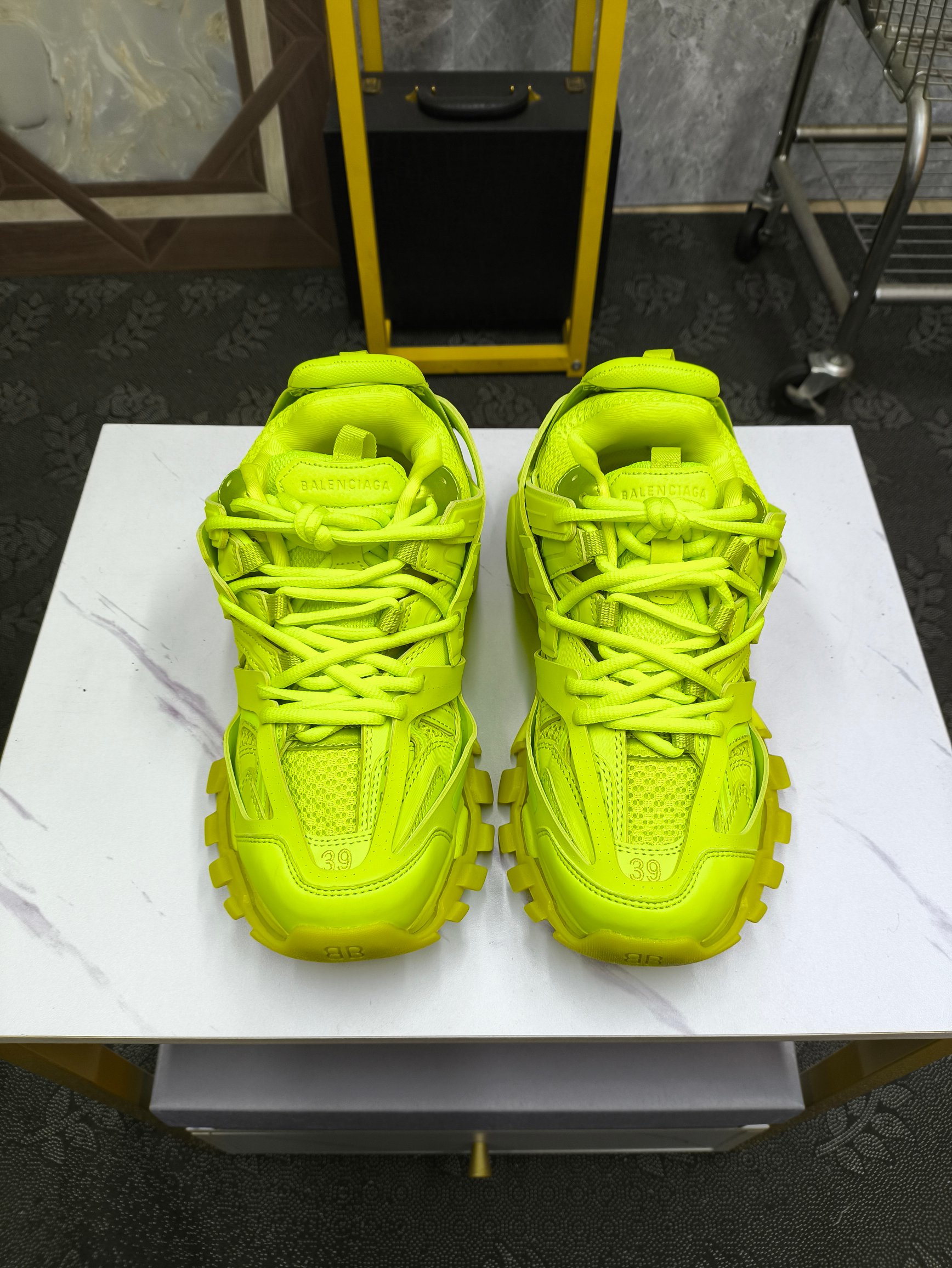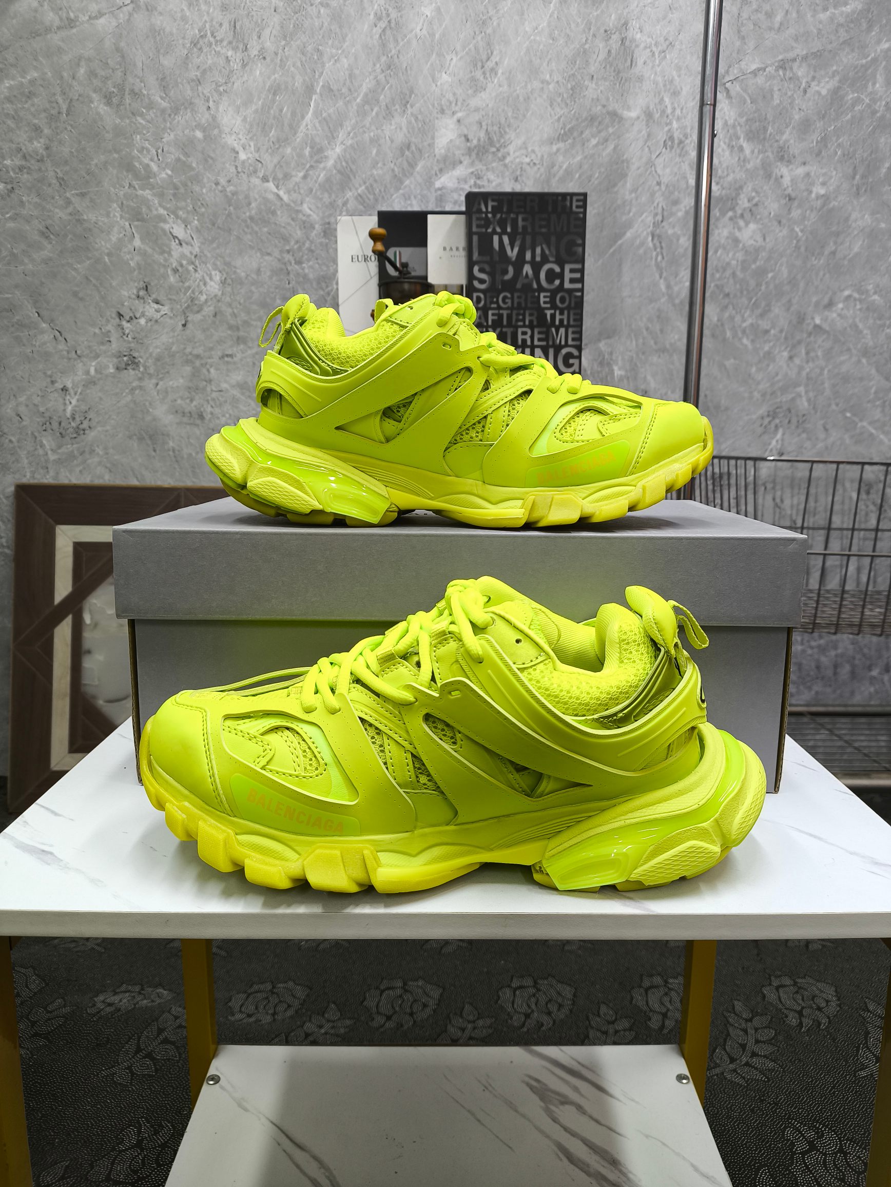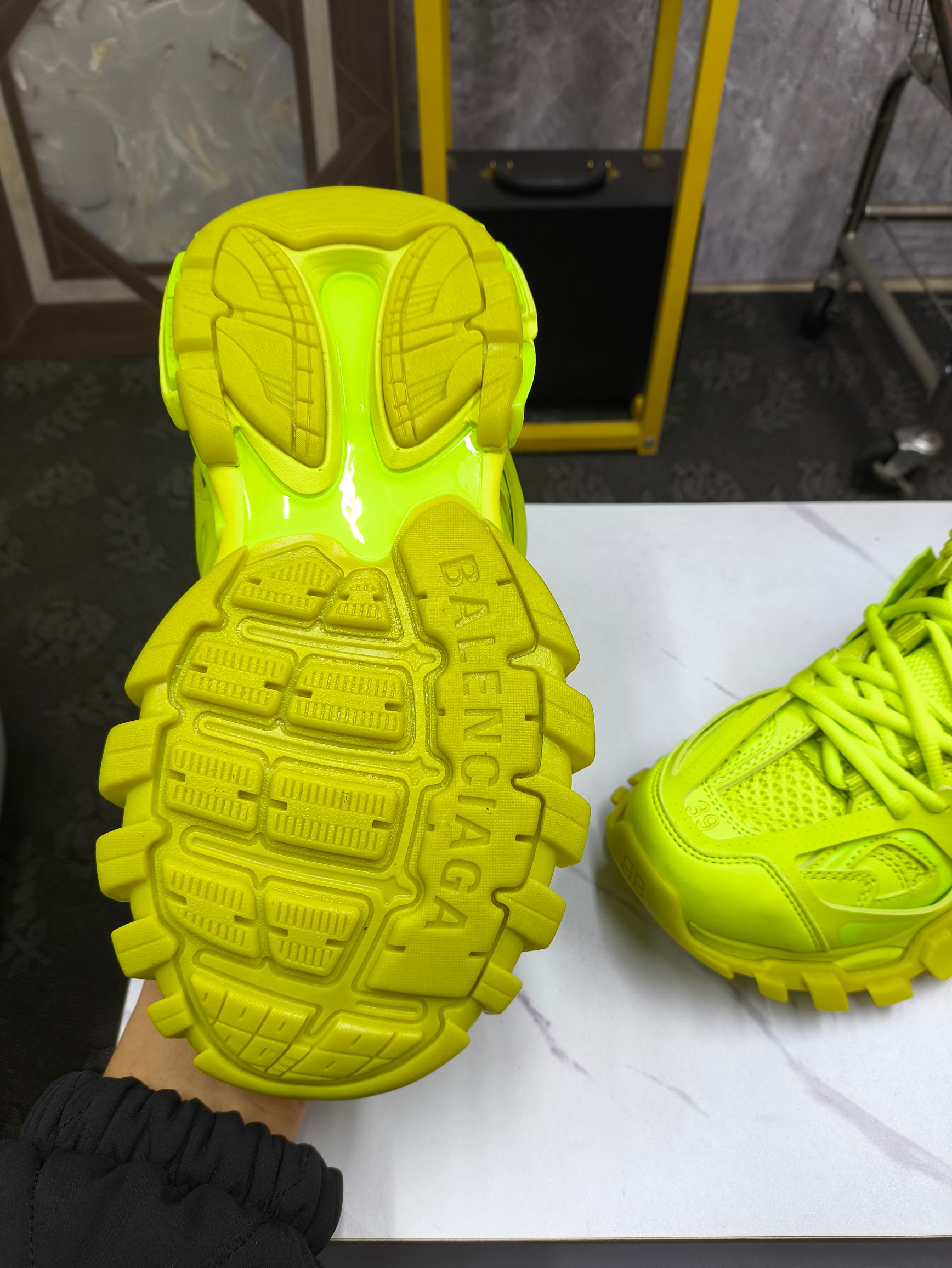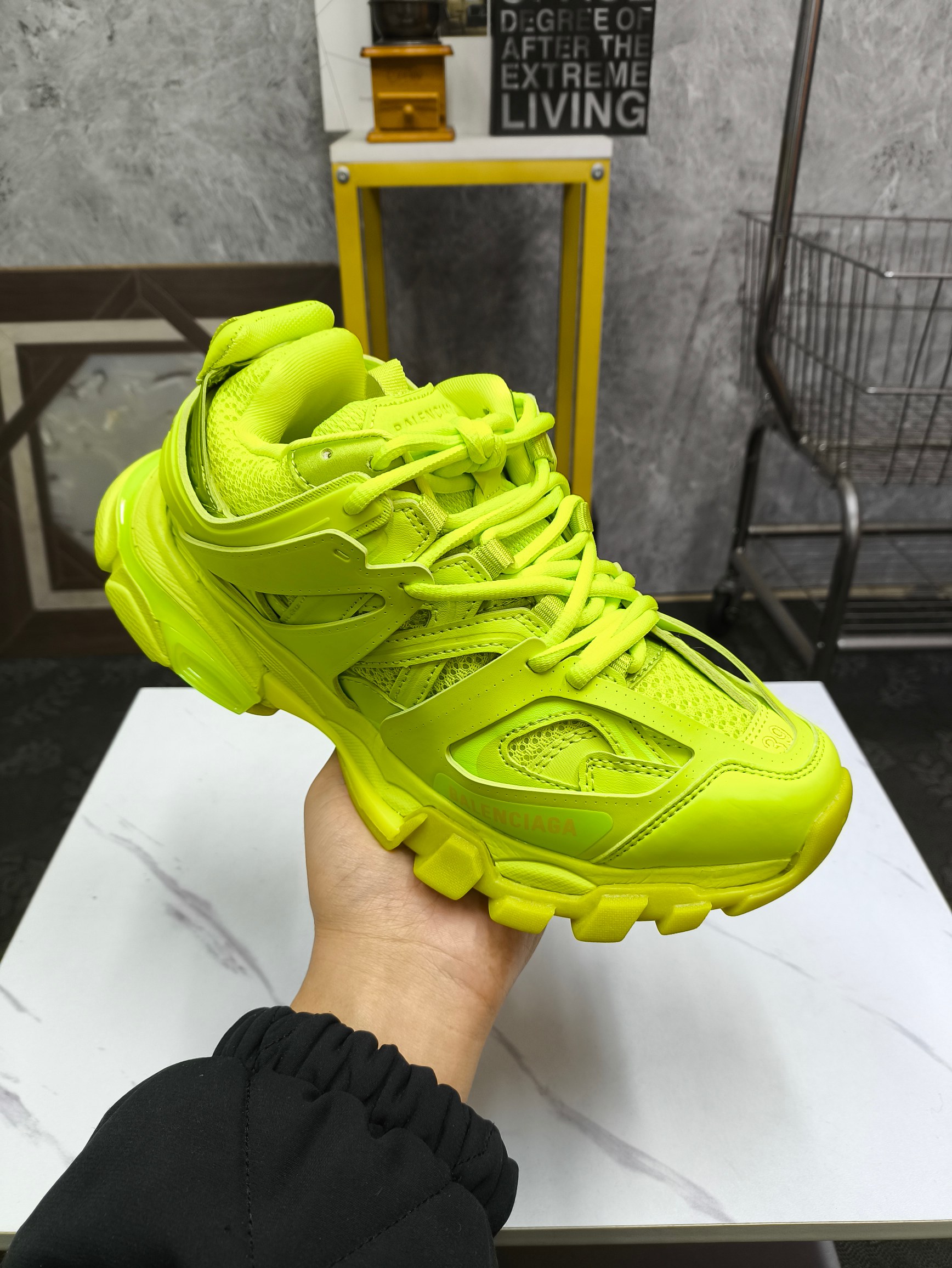 这款鞋子是AAAAA 1:1 质量 (非常棒). 使用了和原版一模一样的材料. 商标部分也保持了和巴黎世家/Balenciaga一样. 图片拍摄是实物鞋子拍摄, 您所收到的实物保证和我们图片一模一样.