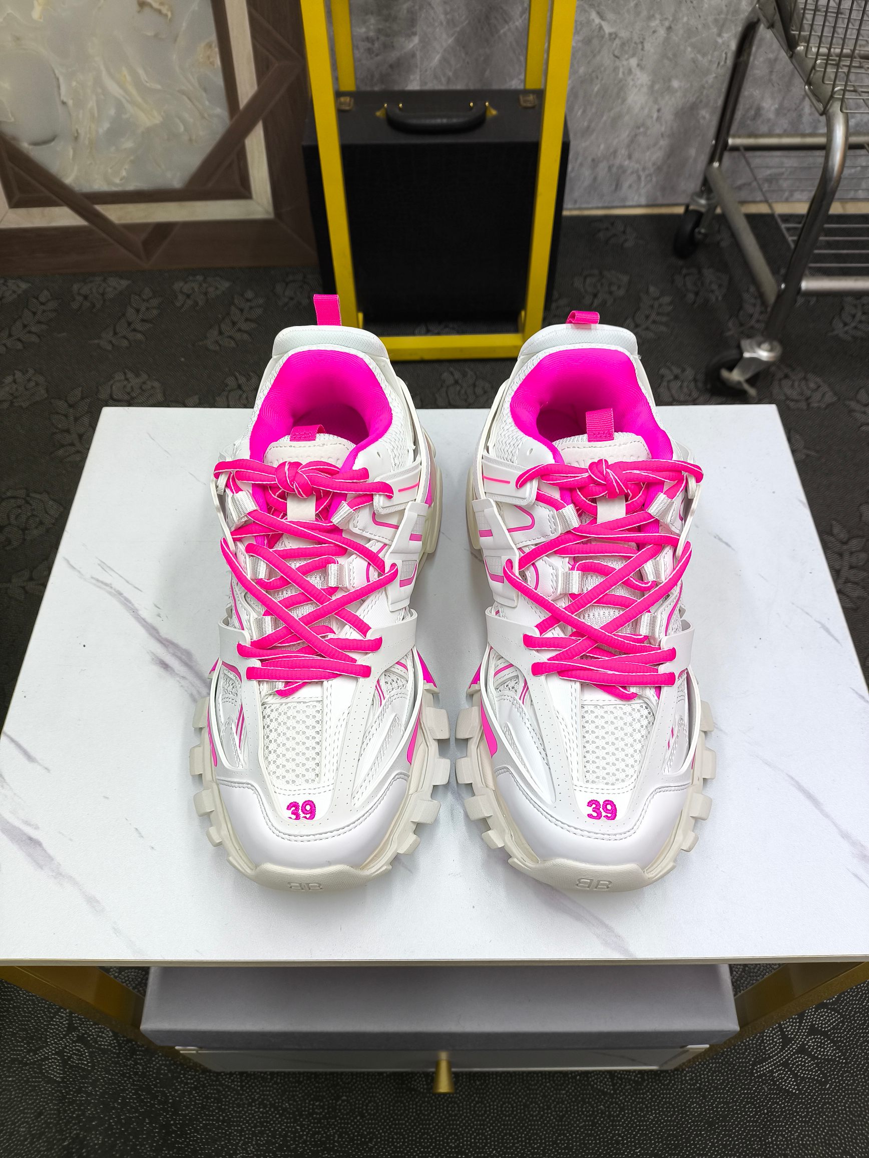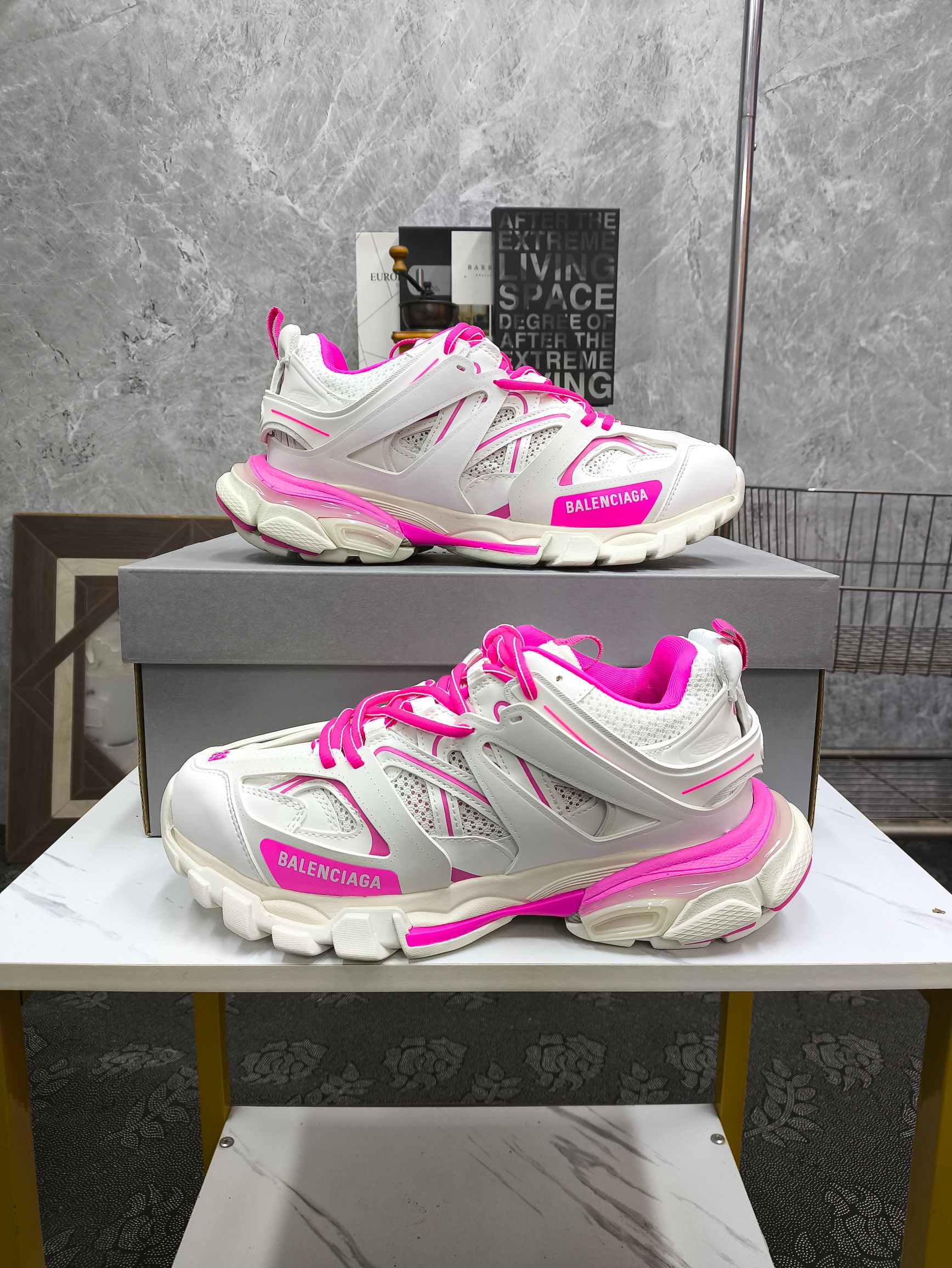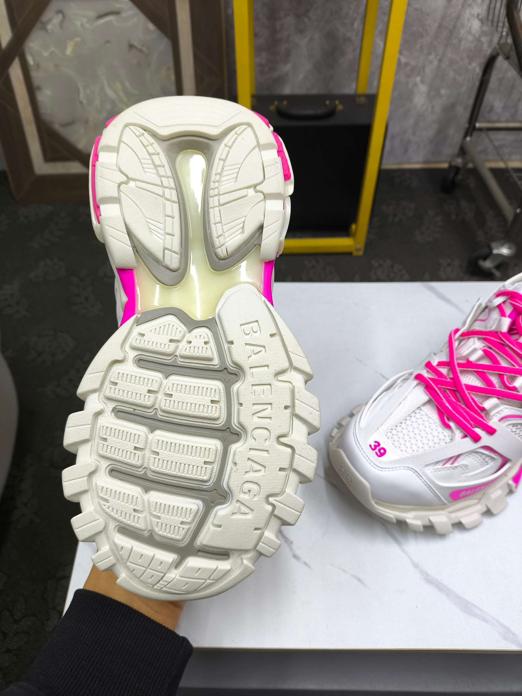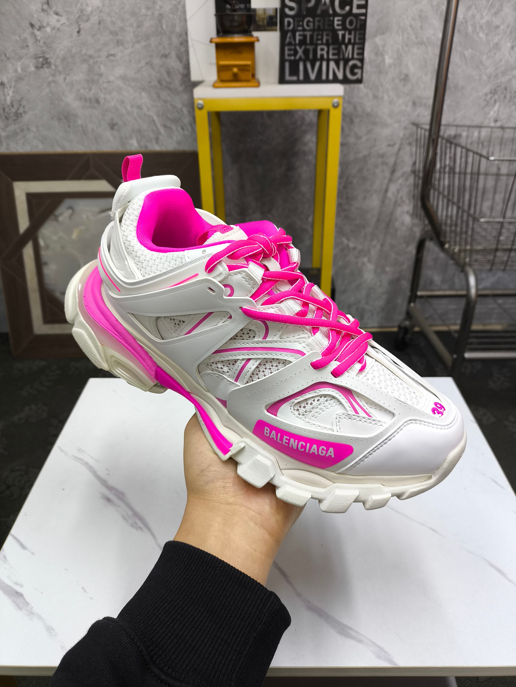这款鞋子是AAAAA 1:1 质量 (非常棒). 使用了和原版一模一样的材料. 商标部分也保持了和巴黎世家/Balenciaga一样. 图片拍摄是实物鞋子拍摄, 您所收到的实物保证和我们图片一模一样.