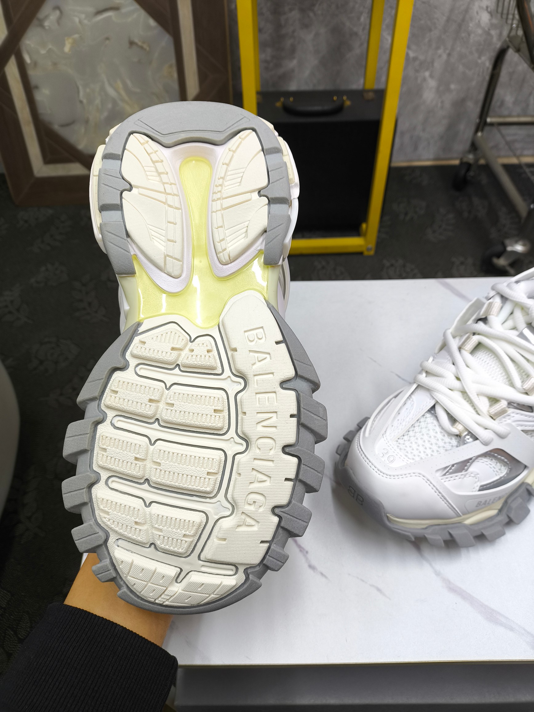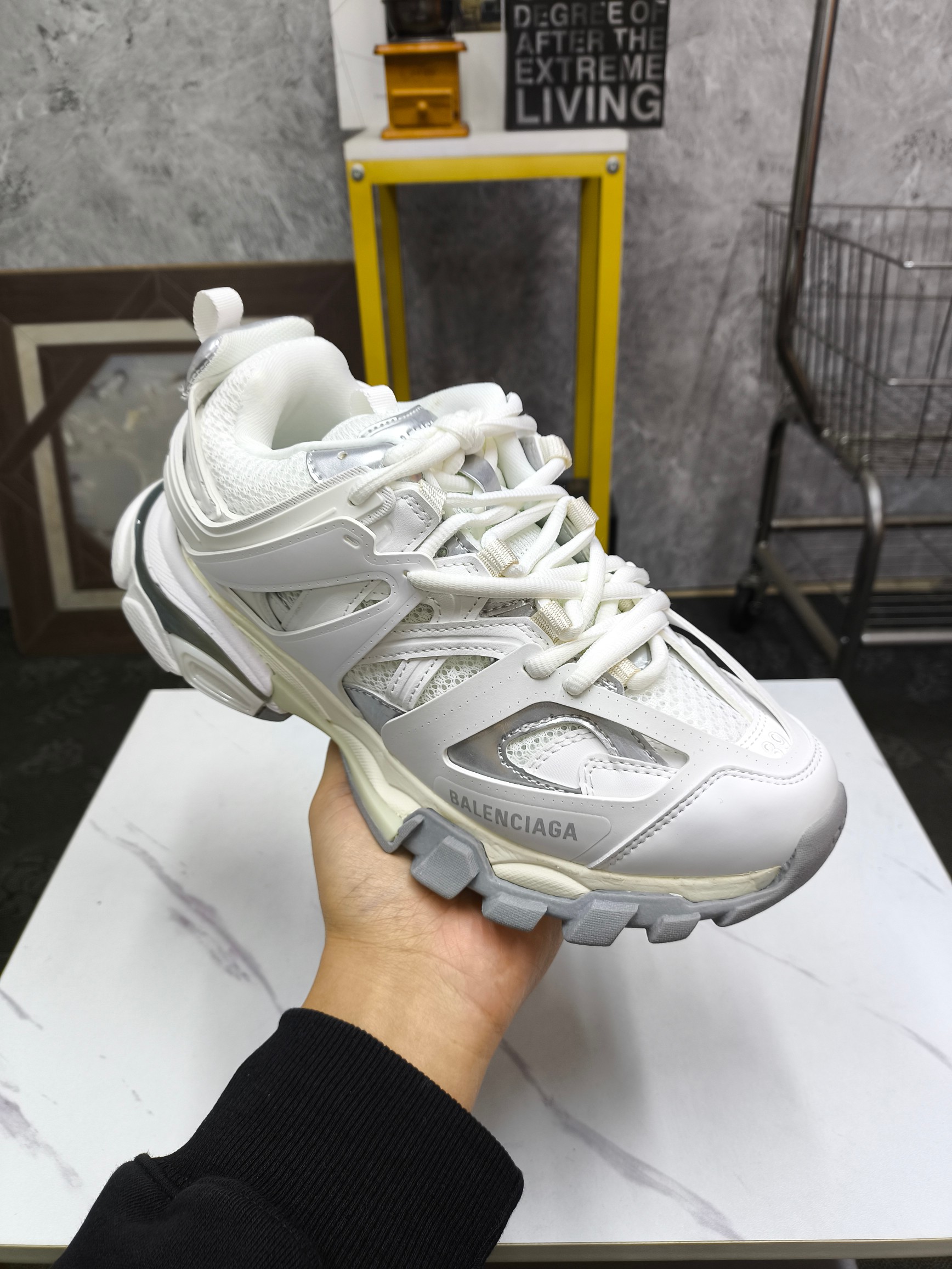 这款鞋子是AAAAA 1:1 质量 (非常棒). 使用了和原版一模一样的材料. 商标部分也保持了和巴黎世家/Balenciaga一样. 图片拍摄是实物鞋子拍摄, 您所收到的实物保证和我们图片一模一样.