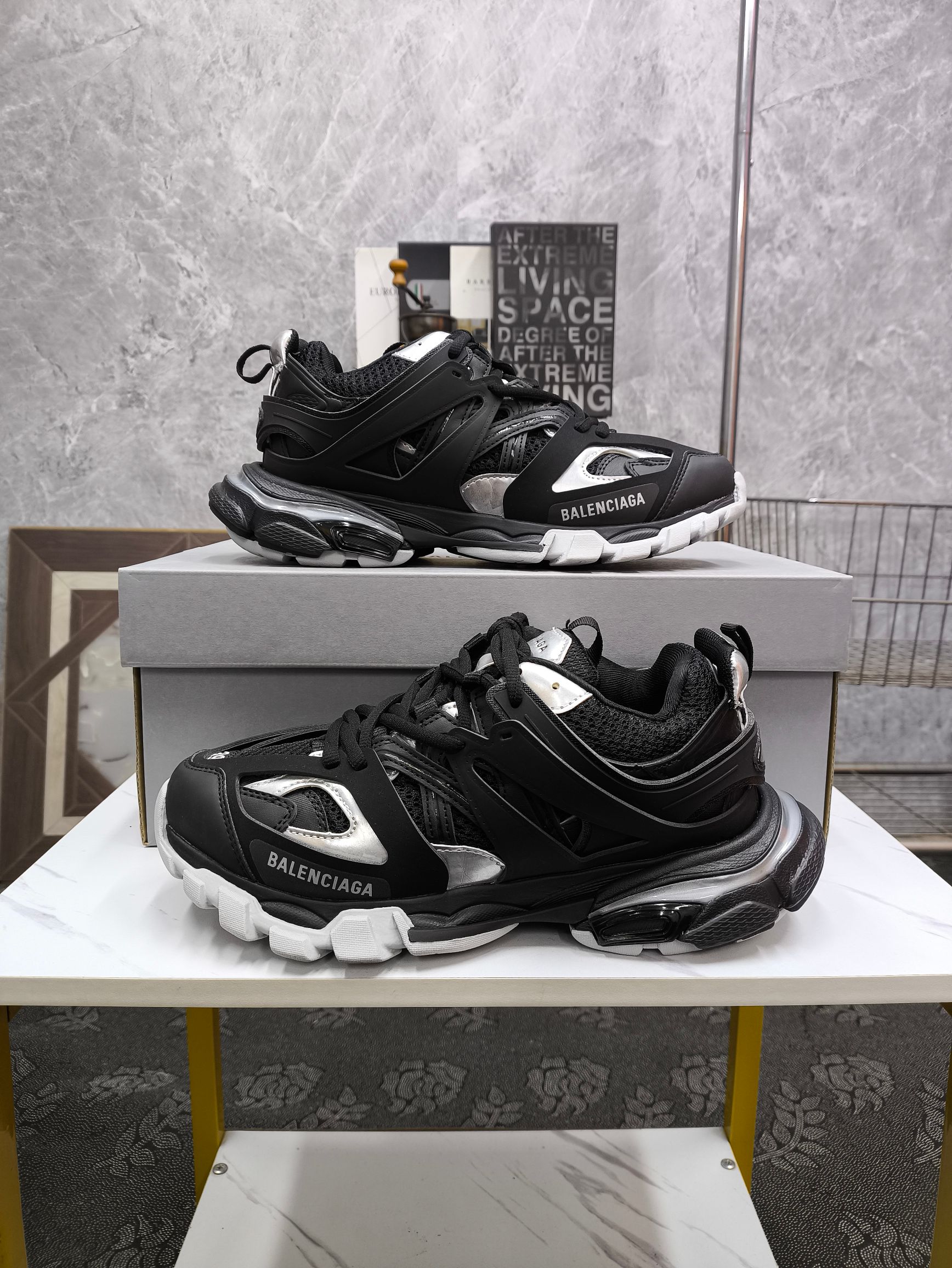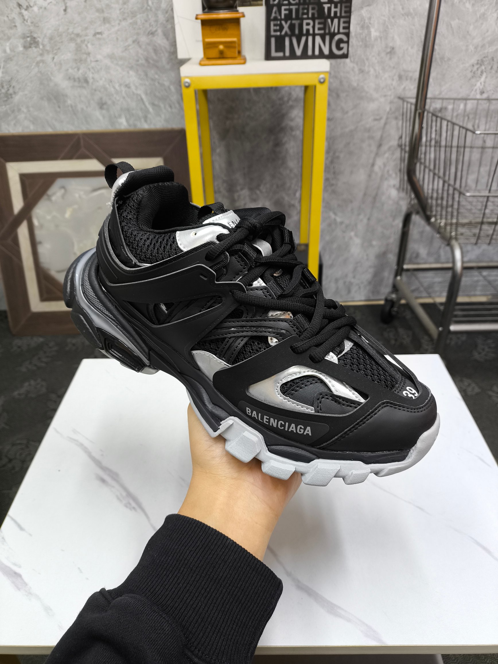 这款鞋子是AAAAA 1:1 质量 (非常棒). 使用了和原版一模一样的材料. 商标部分也保持了和巴黎世家/Balenciaga一样. 图片拍摄是实物鞋子拍摄, 您所收到的实物保证和我们图片一模一样.