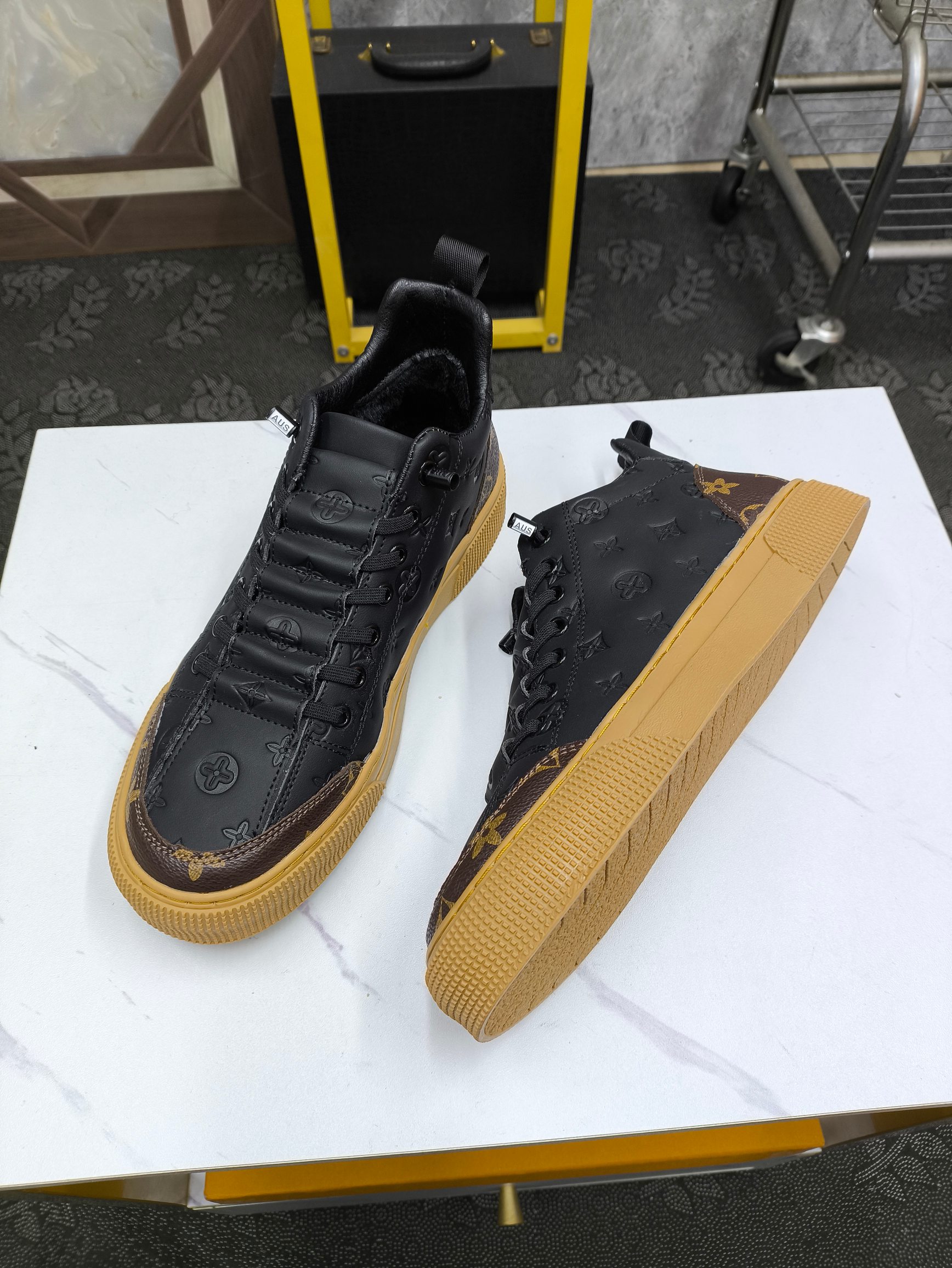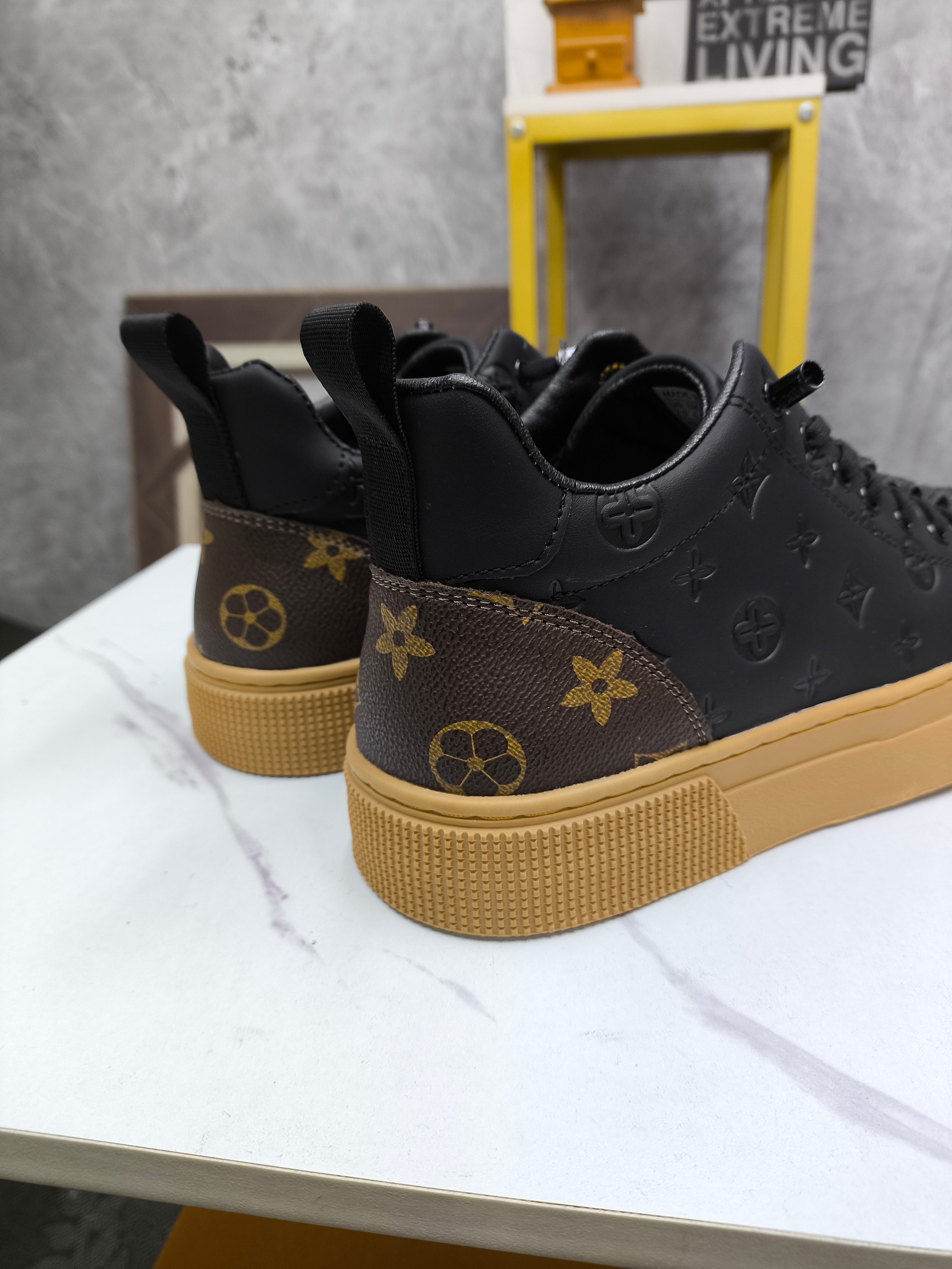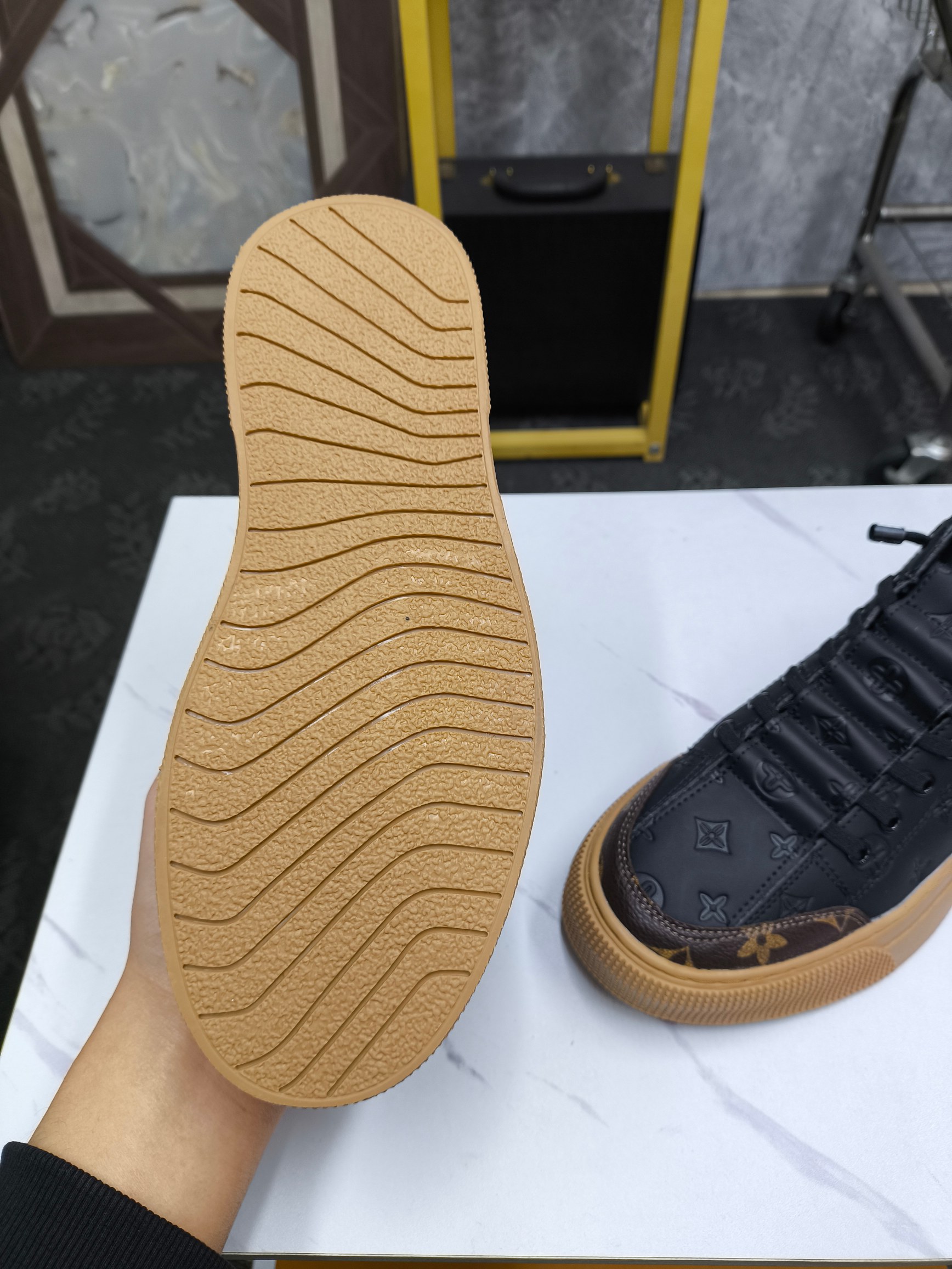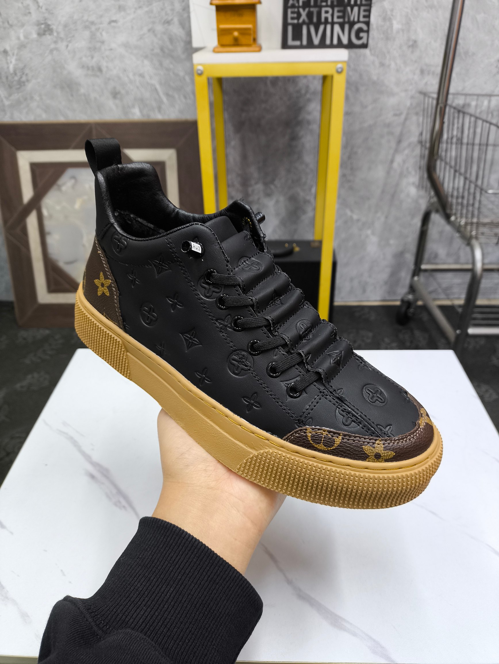 这款鞋子是AAAAA 1:1 质量 (非常棒). 使用了和原版一模一样的材料. 商标部分也保持了和路易威登/Louis Vuitton一样. 图片拍摄是实物鞋子拍摄, 您所收到的实物保证和我们图片一模一样.