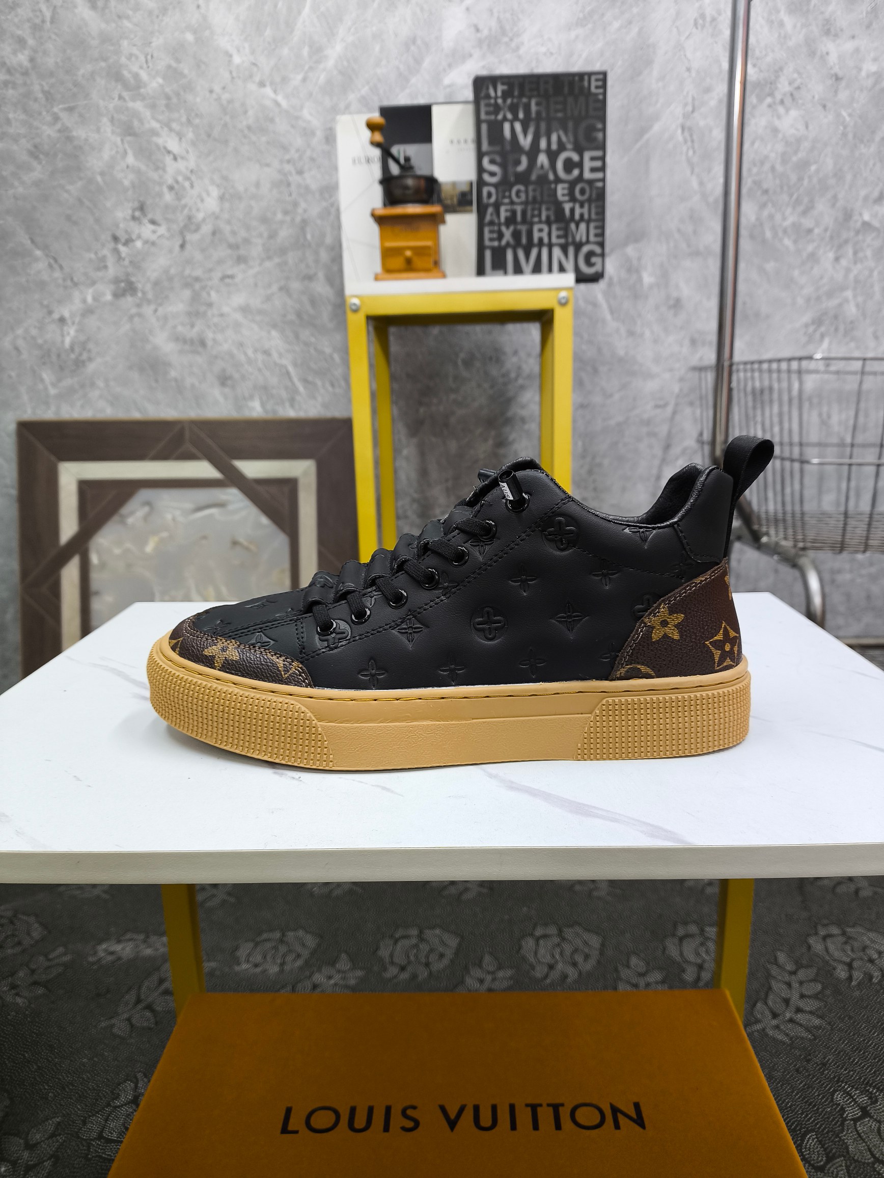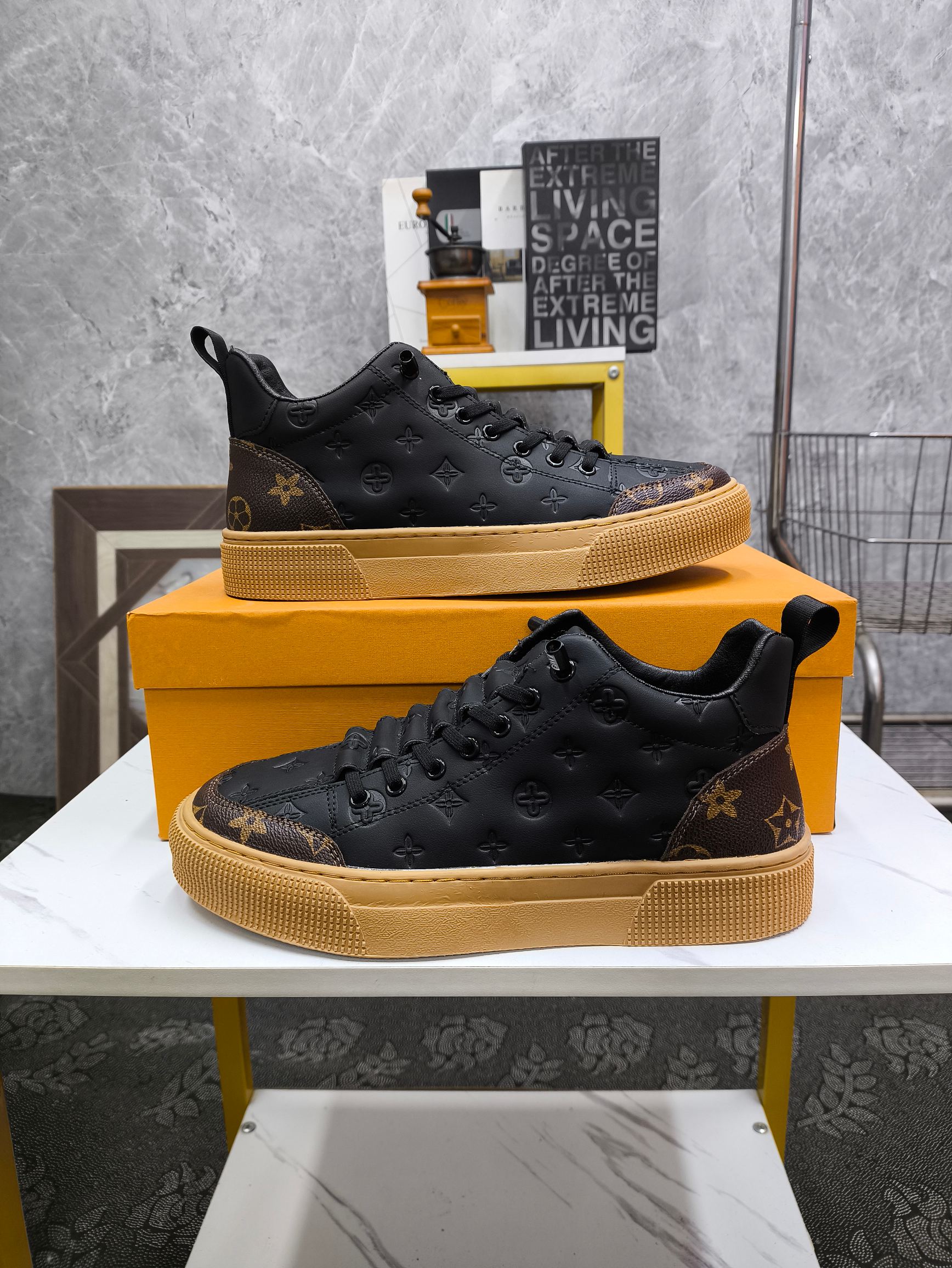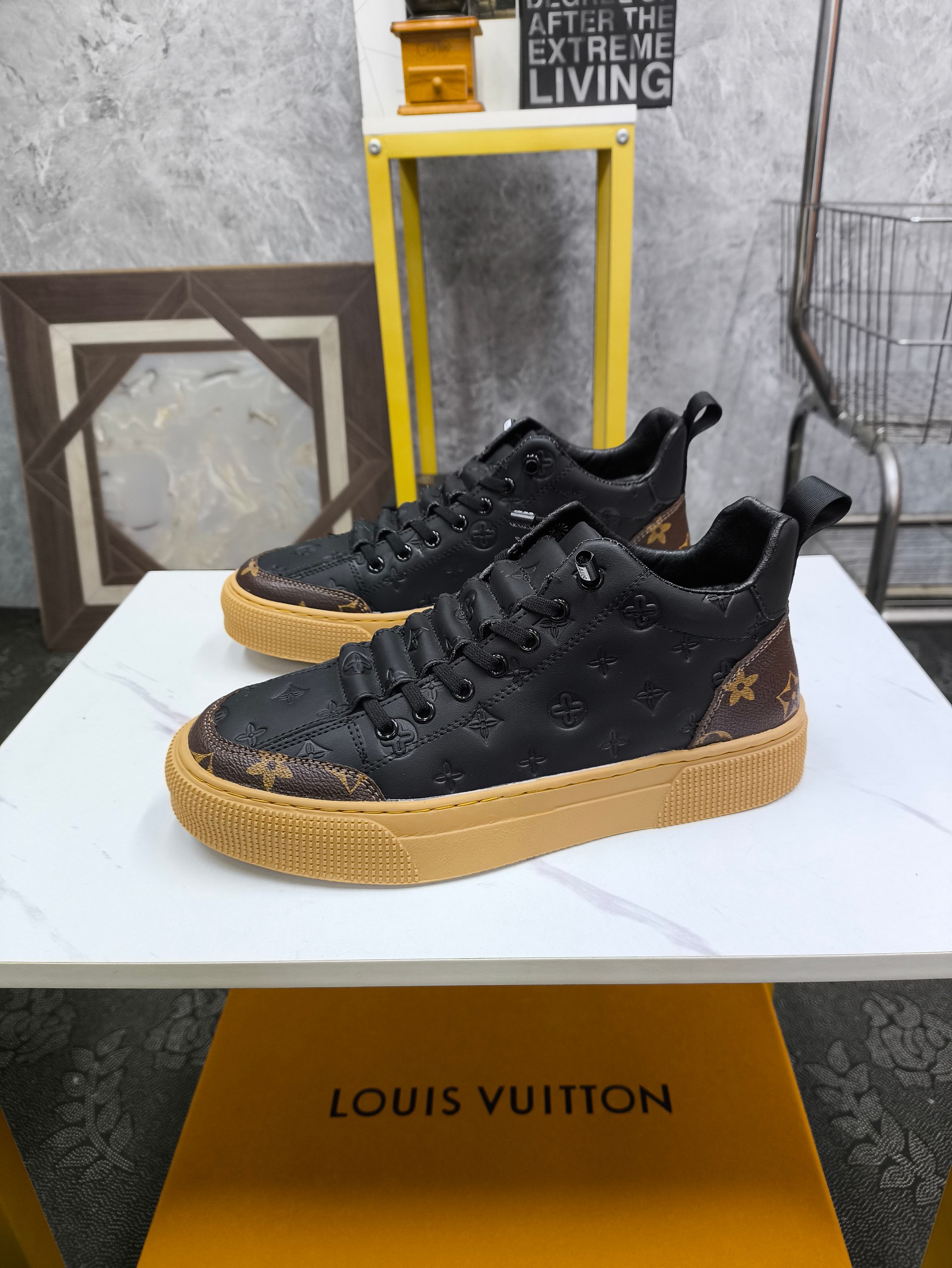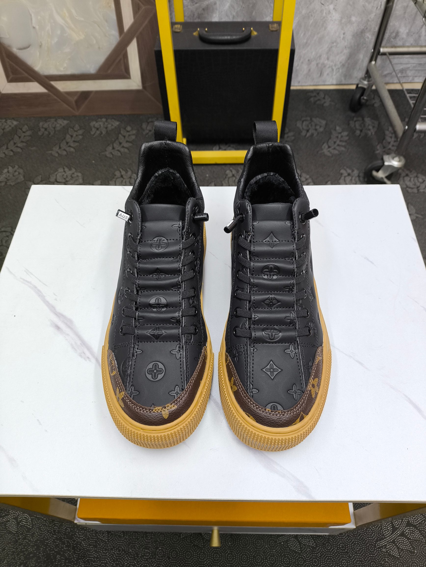 这款鞋子是AAAAA 1:1 质量 (非常棒). 使用了和原版一模一样的材料. 商标部分也保持了和路易威登/Louis Vuitton一样. 图片拍摄是实物鞋子拍摄, 您所收到的实物保证和我们图片一模一样.